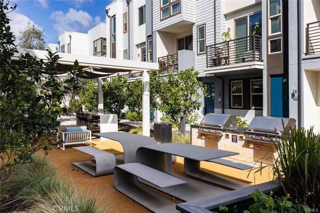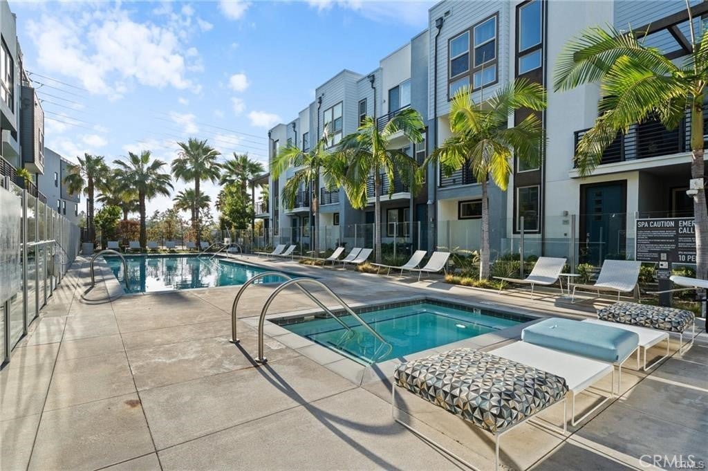 WELCOME TO THE PRIVATELY GATED AND RESORT-STYLE AMENITY RICH COMMUNITY OF MODERN DESIGNED LIVING (MDL). Step inside and immediately notice the open and airy living spaces, highlighted by a multitude of large windows for exceptional natural light. With contemporary style and luxurious finish quality, the entire home has been thoughtfully considered. The entry level offers an open den with a built-in desk/shelves, perfect for a home office, or can be used as another bedroom, and 1 full bathroom with access to the attached two-car garage. The perfect open-concept second floor features plenty of modern touches such as recessed lighting, vinyl wood flooring, and an upgraded, chef-inspired kitchen that overlooks the living area and private balcony, perfect when entertaining guests. The kitchen features a beautiful island, sleek countertops, professional-grade stainless steel appliances, and an abundance of modern cabinetry with a walk-in pantry. The third floor has a well-appointed primary bedroom, bathroom with a spacious walk-in closet, a washer and dryer conveniently tucked away in a separate closet and the 2nd bedroom and full bathroom. Enjoy a central courtyard with a resort-style pool, spa, cabanas, outdoor fireplace, seating areas, BBQs dining terrace, clubhouse, and more. Conveniently located near many restaurants, markets, shopping centers, and retail such as Diamond/Jamboree, Fashion Island Newport Beach, South Coast Plaza, UC, Irvine, John Wayne Airport, and easy access to the 405 and 55 freeways.