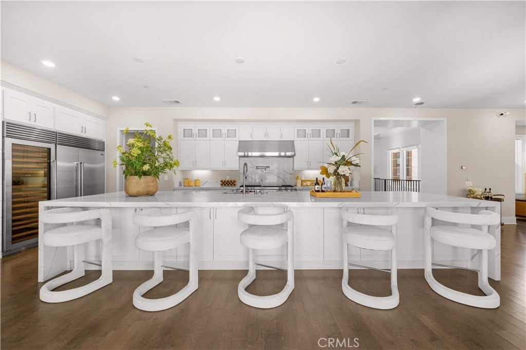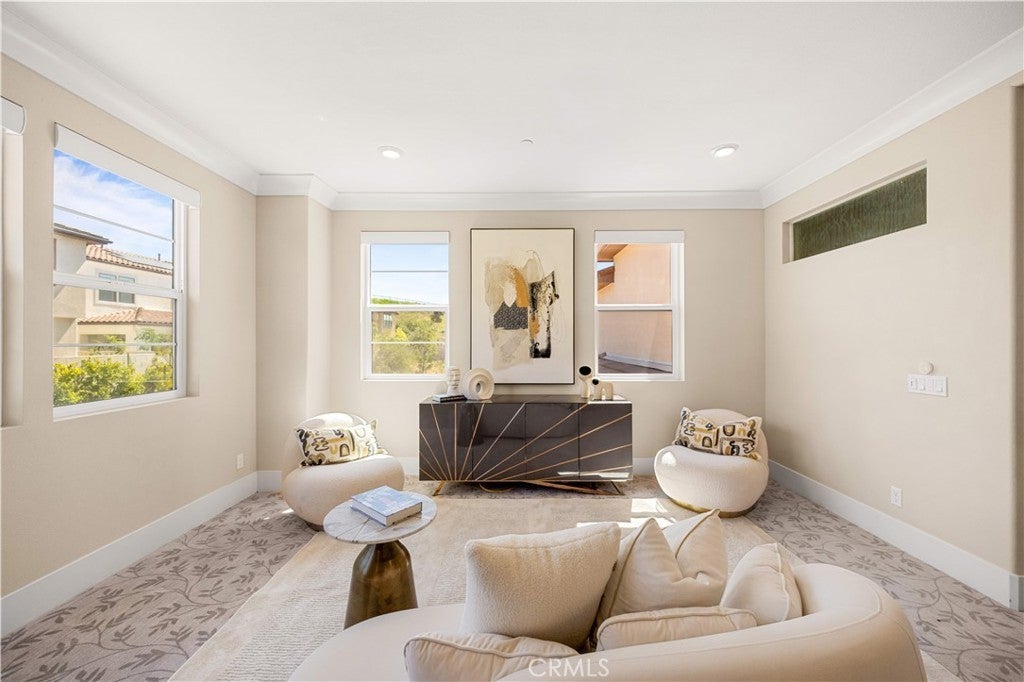 Located in the prestigious guard-gated Altair community of Irvine, this luxury estate offers resort-style living, top-rated schools, and exceptional privacy. Welcome to Lumiere Residence Plan 4X, an extraordinary modern estate offering approximately 6,860 square feet of living space with 6 bedrooms and 7 bathrooms, including a private mother-in-law suite with its own kitchenette. The home features a grand open floor plan with a spacious great room and gourmet kitchen equipped with top-of-the-line stainless steel appliances, soft-close white cabinetry, and an enormous quartz center island. The open-concept living area seamlessly connects the kitchen, dining area, and living room into one large entertaining space. Large sliding glass doors open to a covered outdoor patio, perfect for indoor-outdoor living and entertaining. Upstairs features a luxurious primary suite with a spa-like bathroom and large walk-in closet, along with a huge second-floor deck featuring a fireplace. This rare floor plan also includes a basement level with a lounge, wet bar, bedrooms, study room, entertainment room, and a private courtyard. The home includes over $500,000 in interior and exterior upgrades, including a modern luxury Savaria Vuelift round glass elevator, second kitchen, Hunter Douglas PowerView motorized window treatments, custom landscaping with outdoor kitchen, large waterfall fountain, fire pit seating area, crown molding, baseboards, hardwood flooring, and recessed lighting throughout. This rare luxury home with basement and NextGen suite with private gate access offers an exceptional opportunity to experience luxury living in one of Irvine’s most exclusive communities. Residents of Altair enjoy world-class community amenities including a clubhouse, 3 pools, 3 Spa, BBQ Area, Tennis Courts, Pickball Field, Trails and Parks. Stop Searching... Altair Irvine- A Luxury Living Awaits You!