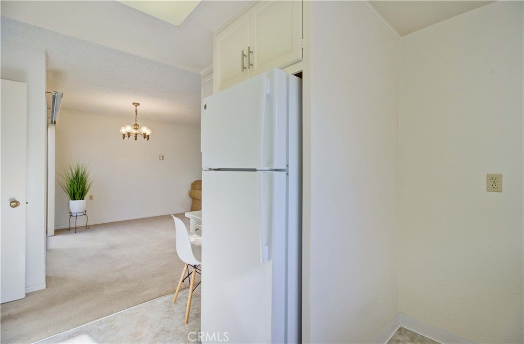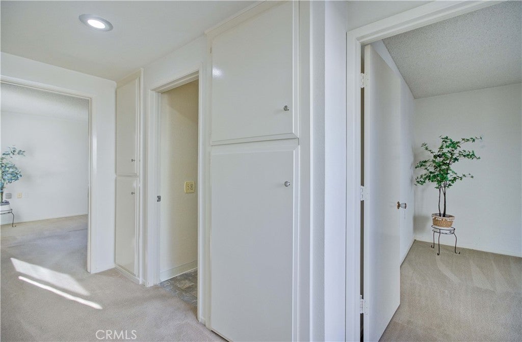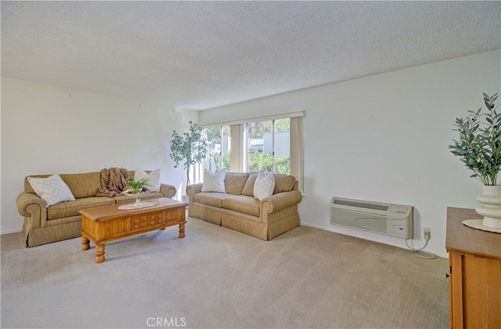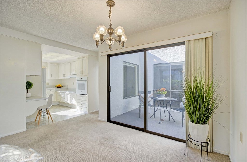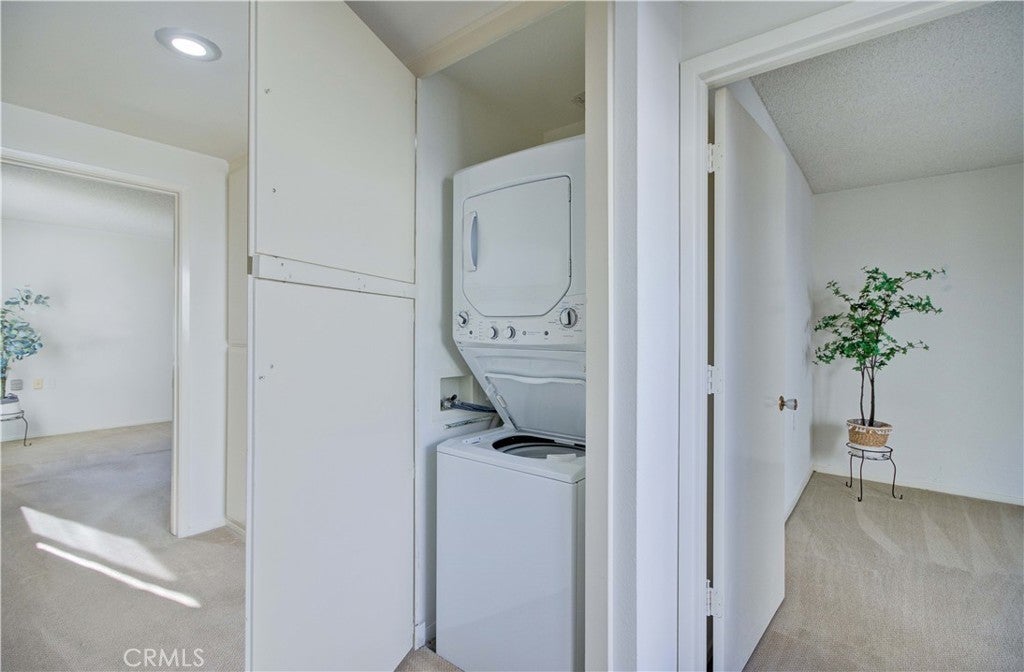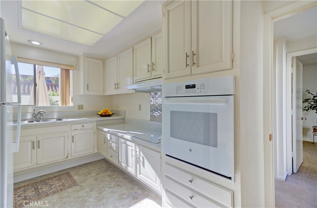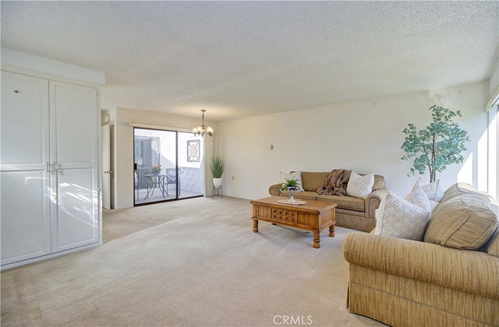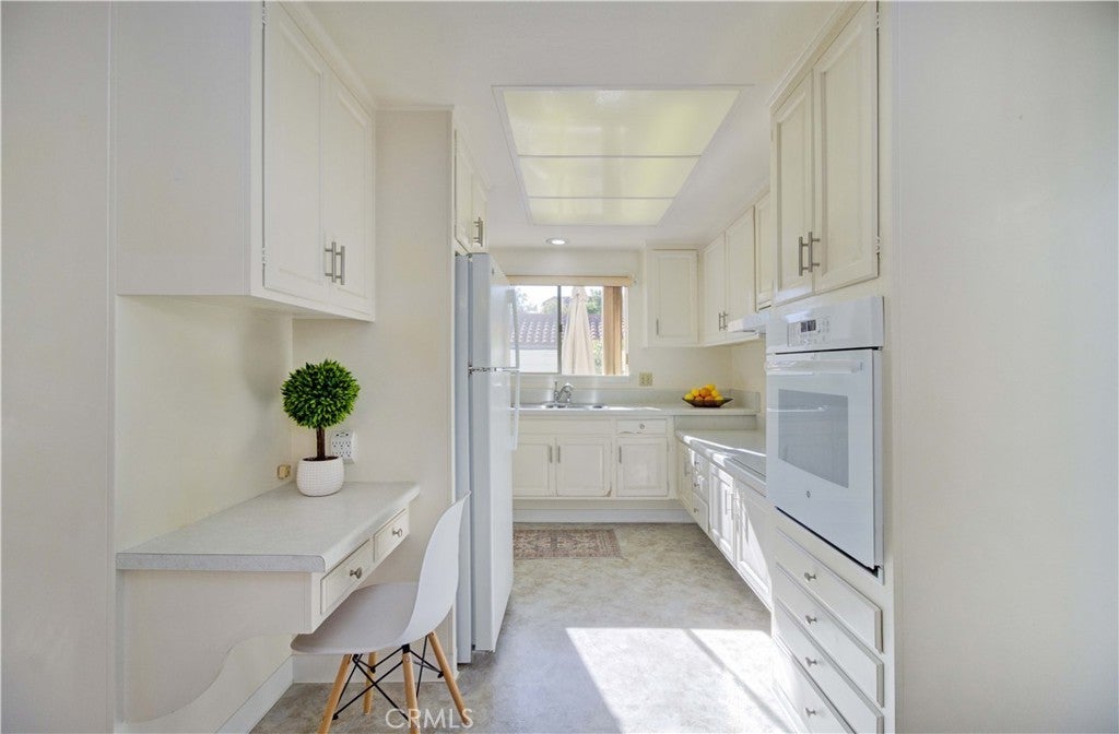Bright and sunny southwest facing "Valencia" cottage - no steps, no one above or below. This popular patio home features a large, private front patio area with 2 spacious storage closets and adobe style beams over the front door. Upgraded double door entry with half moon windows provides extra light. Inside, you'll find a mostly original co-op recently upgraded by the HOA with countertops, fixtures and flooring in both kitchen and bathroom. Spacious living room area has wall heat pump and large south facing window. Adjacent is the dining area and atrium, the atrium supplies morning light and air flow for 3 areas - dining, hallway and guest bedroom. Kitchen features white appliances maintained by the HOA and window over the sink looking out to the front patio. Both bedrooms enjoy ample closet space and windows looking into private patio areas - no sidewalks. Large bathroom houses dual sink vanity, tub/shower combo + additional walk-in shower. STACK WASHER/DRYER in hallway closet! Carport is close, easy access to gates and shopping and Clubhouse 4 - the arts and crafts center for Laguna Woods with workshops and classes to enjoy plus lap swimming pool. Residents enjoy access to an unparalleled array of amenities, including championship and executive golf courses, multiple swimming pools, fitness centers, pickleball and tennis courts, lawn bowling, equestrian facilities, gardening centers, art studios, computer labs, classes, and over 200 clubs and social organizations. HOA LANDSCAPING IN PROCESS