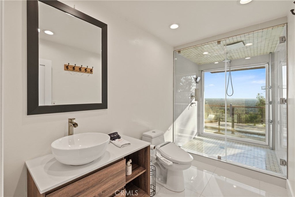 Breathtaking panoramic views from every room. Enjoy sweeping city light views with Catalina Island, Fashion Island, and Palos Verdes visible on clear days — and equally stunning views at night. This 5-bedroom, 3.5-bath home is perched in the hills of North Tustin on an expansive 27,260 sq ft lot, offering 3,612 sq ft of living space and a rare combination of privacy, space, and views. From the moment you enter, you’re greeted with walls of glass and natural light that showcase the views throughout the entire home. Nearly every space — including all bedrooms, the living room, family room, dining area, and kitchen — captures the surrounding scenery. The home features two primary suites. The main primary suite offers a wraparound balcony, creating the perfect setting to take in the views from sunrise to sunset — imagine waking up to this every day. It also includes dual walk-in closets, including one oversized closet, along with a spacious shower and soaking tub. The secondary primary suite is equally impressive, featuring a large bedroom and an expansive walk-in shower. The kitchen has been recently remodeled and opens seamlessly to the main living areas, ideal for both everyday living and entertaining. Wood flooring runs throughout most of the home, with tile/marble finishes in the primary suites. The backyard is designed for entertaining and relaxation, complete with a pool, spa, deck, built-in BBQ, and a large side yard with turf. The setting offers both privacy and functionality, making it perfect for hosting or enjoying quiet evenings with a view. Located on a quiet street surrounded by custom multi-million dollar homes, and within close proximity to award-winning Arroyo Elementary, Hewes Middle School, and Foothill High School.