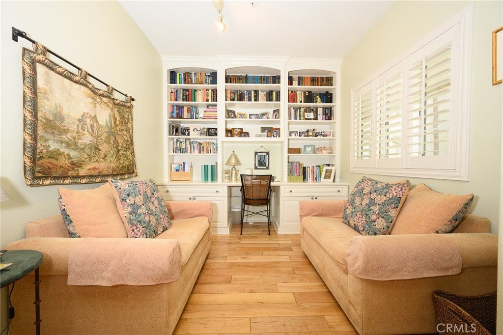 Resort style living at The Metropolitan. Very large one bedroom plus den that can be used as an office or second bedroom. Very good location. Beautiful hardwood flooring in living room. Office/den/second bedroom features expansive wall to wall custom built bookcase and desk. Kitchen features custom cabinetry, tile countertops, electric oven and range, dishwasher, washer, dryer and refrigerator all included in sale. 9-foot ceilings throughout. Bathroom features dual vanity with tile countertops and custom cabinets with lots of storage, private toilet & walk in shower adjacent to large tile cased soaking bathtub. Bedroom has spacious walk-in closet and very large custom built floor to ceiling wardrobe. Patio is very large with lush tropical landscape and greenbelt views. Close to South Coast Plaza & Fashion Island/ Newport Beach, all the best Orange County has to offer is at your doorstep. Within a few minutes of JW Airport & 3 major freeways this ideal location is for the most cosmopolitan of residents. Features pool, spa, gym & guarded gate. Water, hot water trash and gas are all included in HOA dues. Great opportunity here! Hurry!