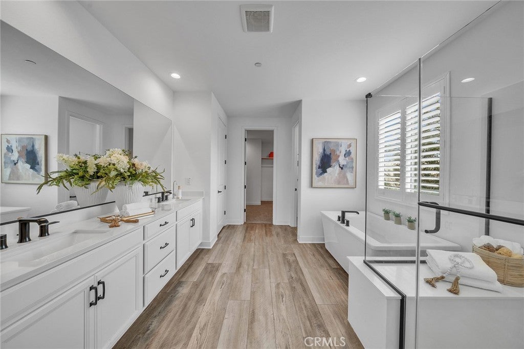 1. 8 Minutes Walking to Irvine Portola High School, 14 Minutes walking to Middle School and Elementary School. 2. Amazing 2 private and 9 public parking spaces around. 3. Nestled in a quiet SOUTH-WEST corner location with whole day bright sunning. 4. ONE BEDROOM in first floor towards south with all day sunshining coming in. 5. More Far distance with Neighbors keep good privacy and perfect VIEW. The house offers an exceptional opportunity to own a spacious and light-filled residence in a prime setting. This beautifully designed home features 4 bedrooms, 4 bathrooms, and approximately 2,669 square feet of thoughtfully planned living space. Positioned on a premium corner lot, the property boasts two private yard areas, ideal for outdoor entertaining, gardening, or simply enjoying Southern California’s year-round sunshine. Expansive windows throughout the home invite abundant natural light, keeping the interior bright and welcoming all day long. The first floor presents a highly functional and sought-after layout, including a generously sized bedroom and full bathroom—perfect for guests, extended family, or a home office. The main living areas are also conveniently located on the first level, where the spacious living room flows seamlessly into the dining area and gourmet kitchen. Designed with an open-concept floor plan, this central gathering space is ideal for both everyday living and entertaining. The kitchen features ample cabinetry, generous counter space, and a large center island that provides additional seating and preparation space while anchoring the heart of the home. Upstairs, the expansive primary suite serves as a private retreat, complete with a walk-in closet and a well-appointed en-suite bathroom featuring dual vanities and a separate shower. Two additional secondary bedrooms are comfortably sized and complemented by well-designed bathrooms for added privacy and convenience. Surrounded by numerous parks and green spaces, and located near a major new shopping plaza scheduled for completion in 2026, this home combines tranquility with future convenience. With its bright interiors, dual yard spaces, and prime corner location, 446 Chorus truly embodies the best of Irvine living.