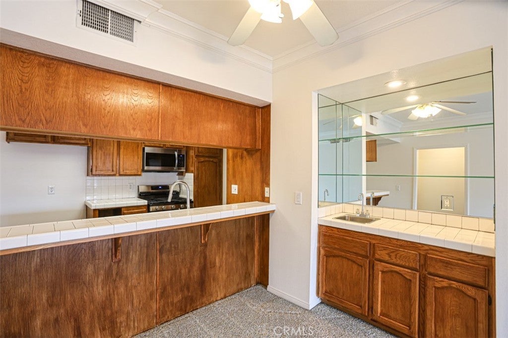 This highly sought-after Los Cab residence in Fountain Valley offers a rare blend of privacy, convenience, and thoughtful upgrades. Ideally positioned as a desirable third floor end unit next to the elevator, the home features additional windows —enhancing natural light and promoting refreshing cross-ventilation throughout and minimal traffic noise and reduced foot traffic. Discover 1,030 sq. ft. of bright, open living space featuring soaring 9-foot ceilings and a thoughtfully designed and preferred 2 bed / 2 bath split-bedroom floor plan that offers both comfort and privacy. This slightly larger floor plan—approximately 50 sq. ft. more than most units—provides added space and comfort. Perfectly situated away from Warner Avenue and not near the pool or spa entrance. The well-appointed kitchen boasts stainless steel appliances (just 1 year old) and generous cabinet storage. The spacious living and dining areas create a warm, inviting atmosphere, complete with a cozy gas fireplace, breakfast bar, and wet bar. This property features in-unit laundry, central A/C and ceiling fans. The HVAC system has been professionally serviced annually with updated components and runs like new. Lovingly maintained by the same owner for over 22 years, this home reflects true pride of ownership. A brand-new front bathroom adds to the property’s move-in-ready appeal. Enjoy resort-style living in this beautifully maintained gated community, offering amenities such as a sparkling pool and spa, BBQ area, serene pond with waterfall, and lush landscaped grounds. Ideally located just minutes from Mile Square Park, shopping, dining, and major freeways—with Los Cab Sports Club just steps away—this home delivers exceptional convenience. Whether you're a first-time buyer or an investor, this property offers the perfect combination of style, comfort, and location.