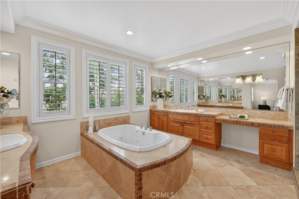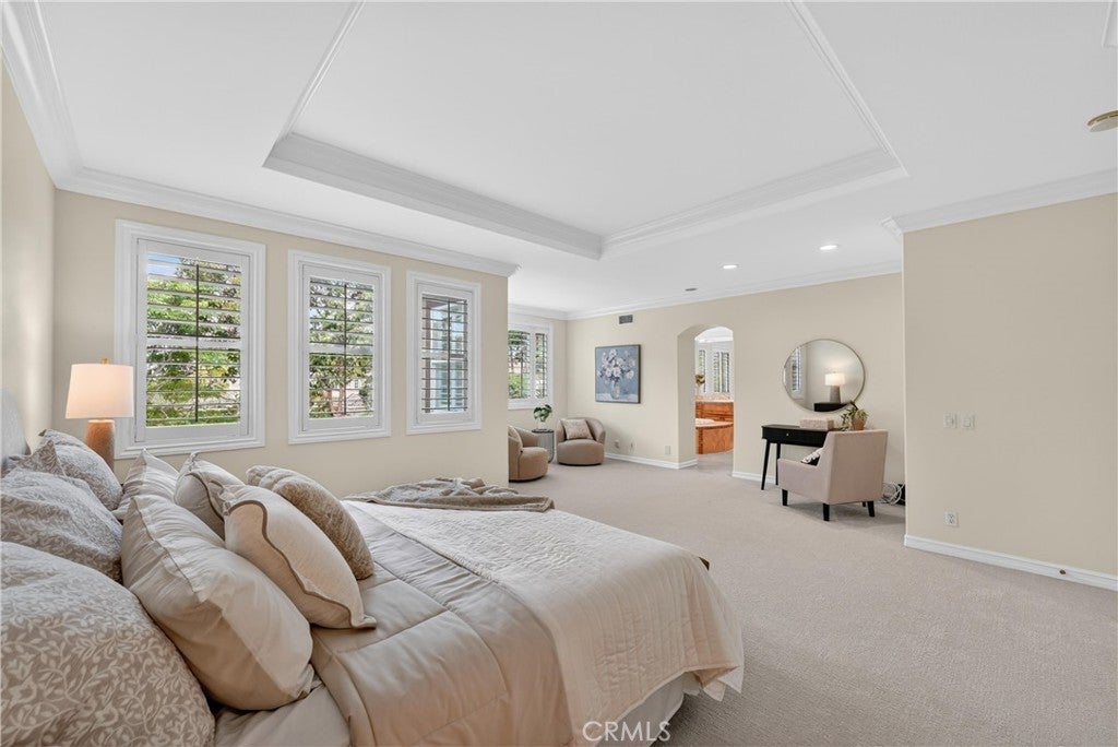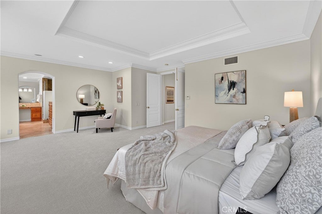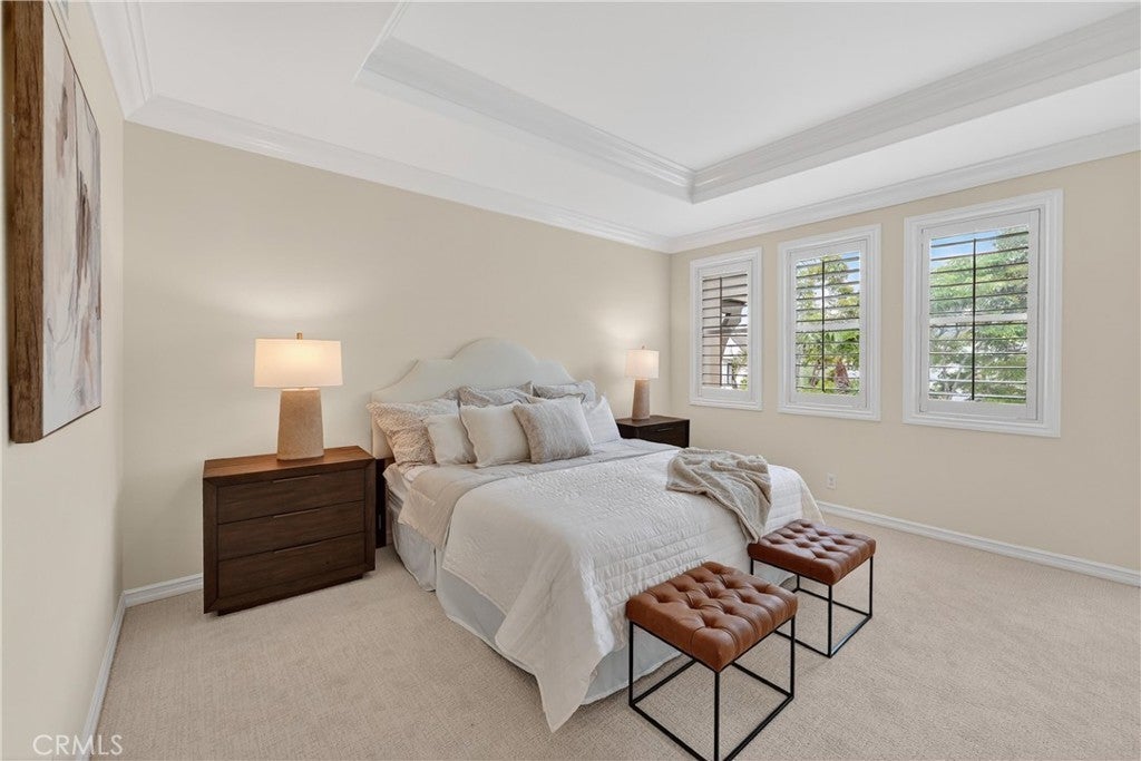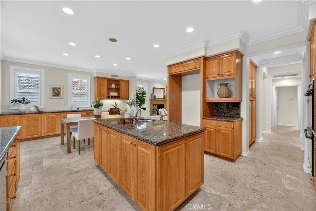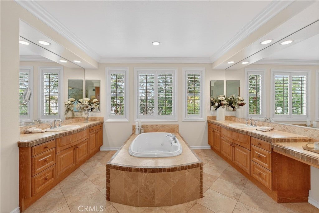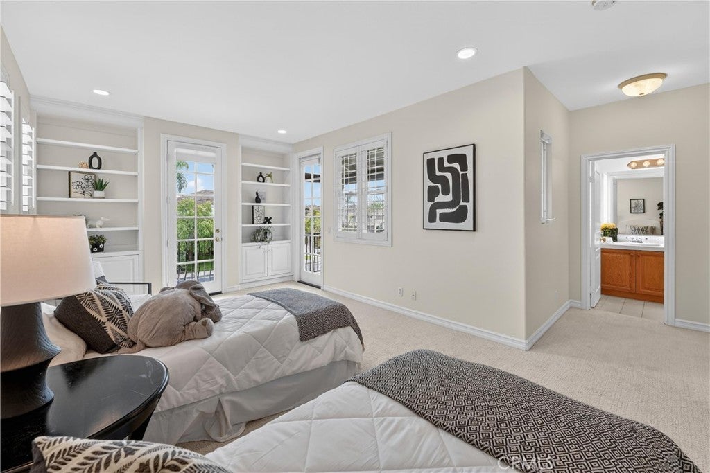 Welcome to an exceptional residence in the prestigious guard-gated community of The Peninsula at Huntington Seacliff, where refined coastal living meets timeless elegance. Ideally situated on a quiet cul-de-sac this expansive 4-bedroom, 4.5-bathroom home offers almost 3,700 square feet of thoughtfully designed living space. Designed for both comfort and sophistication, the home features a highly desirable main-level bedroom with a full en-suite bath—perfect for guests or multi-generational living. PLUS, there is still a separate powder bath for guests. Each of the four bedrooms boasts its own private bathroom, offering ultimate privacy and convenience. One of the secondary bedrooms even features a walk in closet, built in bookcases and a private balcony. The formal living room welcomes you with soaring volume ceilings and an abundance of natural light streaming through stunning windows that frame picturesque views of the backyard. Two inviting fireplaces—located in both the living room and family room—create warm, elegant gathering spaces throughout the home. The well-appointed interior includes all new LED lighting throughout, shutters, crown molding, new carpet, a large kitchen with a center island and generous storage, spacious laundry room with sink and laundry chute from upstairs, central vacuum system, a newer air conditioning system with 2 condensers for year-round comfort. Energy-efficient solar panels with a backup battery further enhance the home’s modern appeal. Step outside to a beautifully designed backyard retreat that is very private as there's no house behind you. The yard includes a covered patio with recessed lighting and built-in barbecue—ideal for entertaining or enjoying relaxed coastal evenings. Additional highlights include a three-car garage with built in cabinets and gated front courtyard welcoming your guests and your packages! Recently painted inside and out, this Turnberry home (the largest tract in The Peninsula) is a rare opportunity to own a luxurious home in one of Huntington Beach’s most sought-after communities. This unbeatable location just minutes from the renowned Huntington Club, the stunning beaches of Huntington Beach and within walking distance to Seacliff Elementary School, a National Blue Ribbon school repeatedly ranking one of the top elementary schools in California. Furthermore, residents have easy access to parks, gyms, grocery stores, Starbucks, restaurants and more all within walking or biking distance!