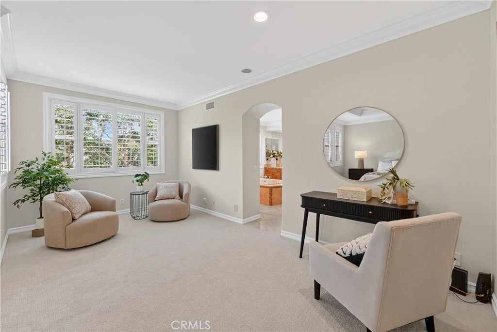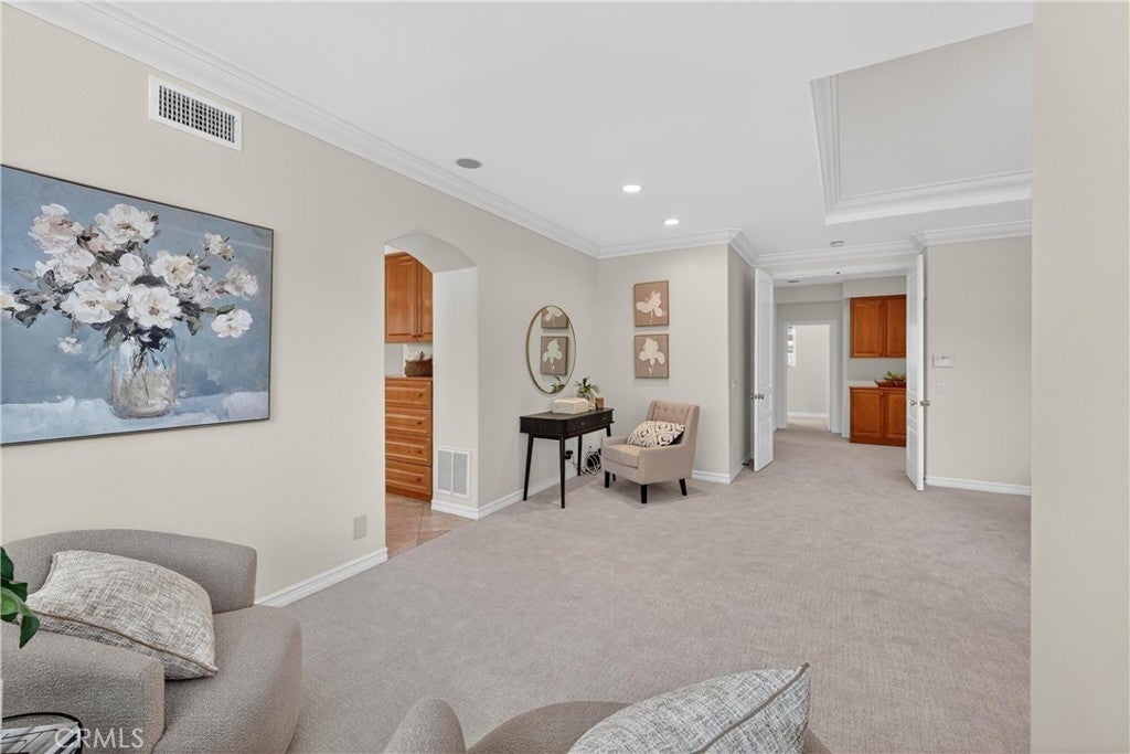 Balcony, Breakfast Area, Crown Molding, Central Vacuum, Separate/Formal Dining Room, Granite Counters, Recessed Lighting, Bedroom on Main Level, Entrance Foyer, Primary Suite, Walk-In Closet(s)