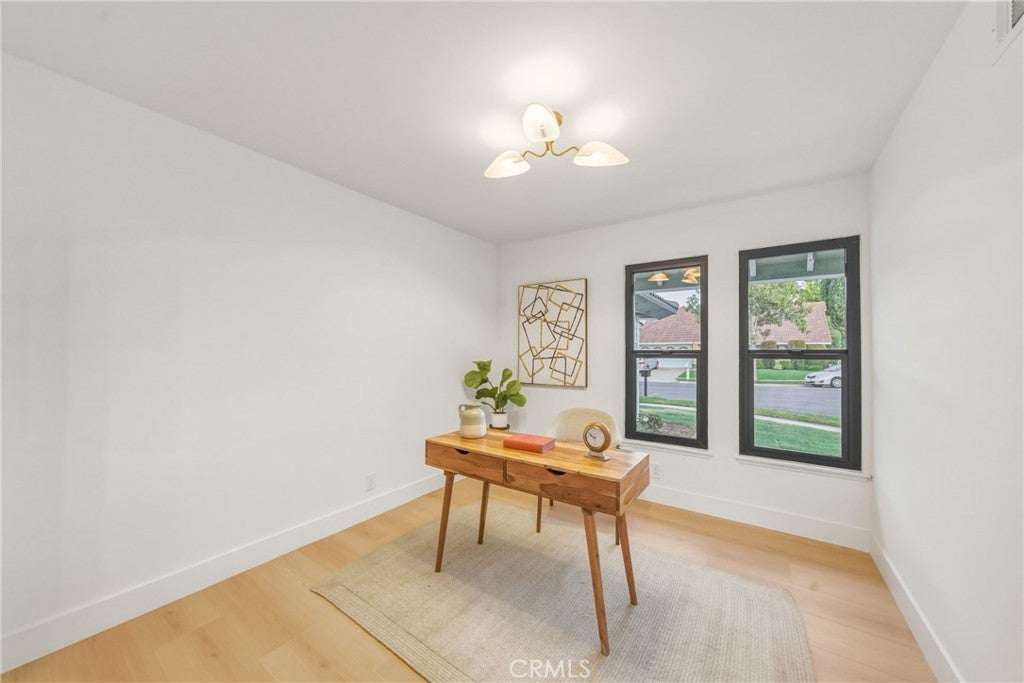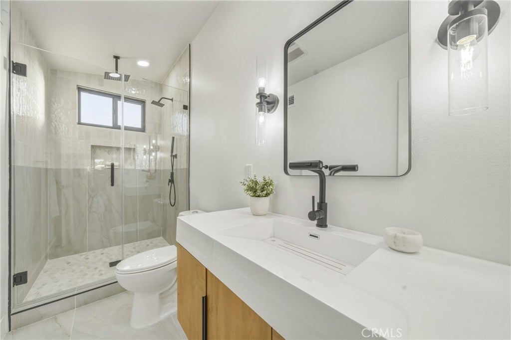 Experience the pinnacle of sophisticated living in this masterfully reimagined residence, nestled within a prestigious and highly sought-after The Ranch Community in Irvine. This home has undergone a comprehensive, top-to-bottom remodel, evolving into a contemporary masterpiece that balances timeless elegance with modern functionality. Every detail has been meticulously curated, from the gourmet kitchen, now a culinary showpiece with views out to the expansive yard, to the generously sized living spaces that flow seamlessly, offering an unparalleled environment for both living your every life and occasionally entertaining on a grand scale. Enter through double doors into a warm and bright formal living room that has great light from a large window and a sliding door out to the enviable yard space. Adjacent are the family room and dining room which have great space and light and the dining room features a warm fireplace and opens to the kitchen. Situated in the back corner of the home the fully redone chef’s kitchen is open to both the formal living room and the sliding door out to the yard allowing for seamless indoor/outdoor living and to the dining and family rooms so the chef is always part of the action. With quartz counters, including quartz “waterfall” edges at each open end, all new cabinets, lighting, fixtures and hardware, chef’s grade stainless steel appliances including a statement piece induction cooktop, a convenient undermount microwave and a dishwasher the kitchen has it all. A large butler’s pantry joins the kitchen to the living room creating an abundance of prep and storage space. Imagine the possibilities in these highly refined spaces. Two guest bedrooms, a fully renovated guest bath, a second full bath and garage access complete the lower level. Upstairs the primary suite features room for multiple seating areas and a spa-like ensuite with all new everything including a dual sink vanity and a walk-in shower. Three additional bedrooms and a fully renovated guest bath complete the upper level. The Ranch residents enjoy lush green spaces, scenic walking trails, and direct access to multiple parks. Strategically situated between the 405 and 5 freeways, the community offers effortless commutes while remaining a peaceful oasis. The home is just minutes away from premier shopping and dining and from highly regarded schools. This is more than a home, it is a gateway to the refined, safe, and vibrant lifestyle that defines Irvine. Welcome home.