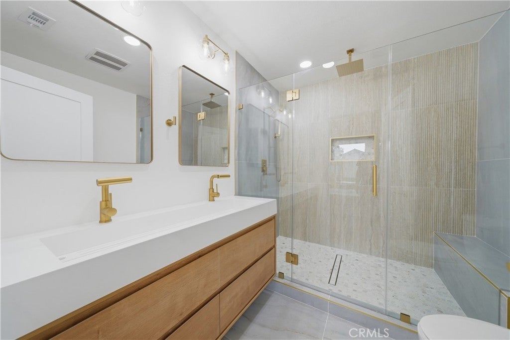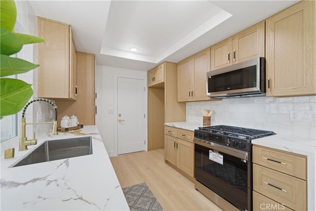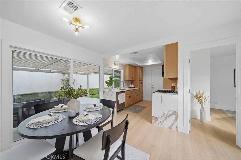 This fully renovated, sophisticated residence, nestled within the prestigious Laurelwood Community, represents a complete reimagining of modern suburban living. Extensively remodeled to blend timeless architecture with contemporary luxury, this gem showcases a meticulously curated space designed for those with discerning taste. The home’s transformation begins the moment you step into the light-drenched living room, where natural light and a floor to ceiling designer finished fireplace set the tone. The heart of the home, the chef’s kitchen, has been elevated with premium quartz countertops including quartz “waterfall” finishing at the open ends of the all-new cabinetry, recessed lighting, updated fixtures and hardware and stainless-steel appliances ensuring every meal is prepared in an environment of absolute refinement. Off of the adjacent dining room, middle open sliding doors lead out to an interior alcove which bathes multiple surrounding rooms in warm and inviting natural light. With 3 total bedrooms, including a fully renovated primary bedroom with a spa-like ensuite and great light from the central alcove, and a completely renovated guest bath, this home is fully ready for its’ next chapter. Off the kitchen is a large sliding door which leads out to an enviable private yard space which features a covered patio, a large grass area and mature planter beds. The perfect place to play or entertain in privacy and security and, together with the kitchen, allows for true indoor/outdoor living. An attached direct access two car garage with dedicated laundry hook ups completes the residence. Situated on a quiet, neighbors only tree lined street in Tustin, which is known to have an unparalleled lifestyle, residents enjoy a perfect balance of historic charm and modern convenience. Located just moments from the vibrant Old Town Tustin, high-end retail at The District, top-tier Orange County dining and great local schools. For those seeking an active lifestyle, the community offers lush parks and easy access to major commuting corridors, making it a premier hub for both work and play. This is more than a home, it is a meticulously upgraded sanctuary. Welcome Home!