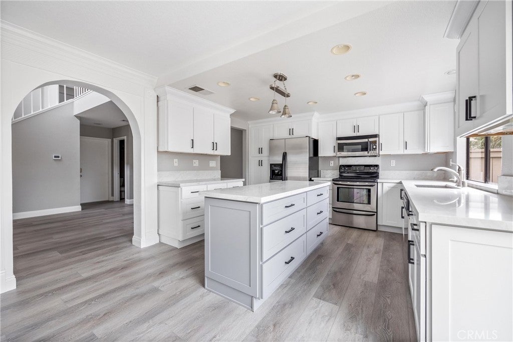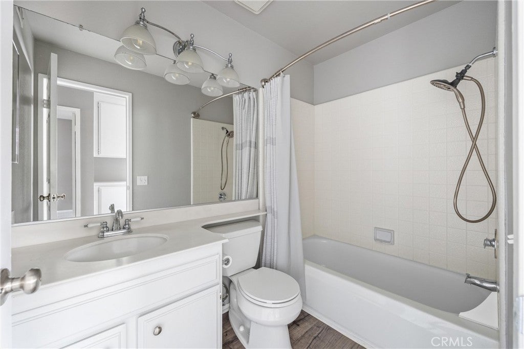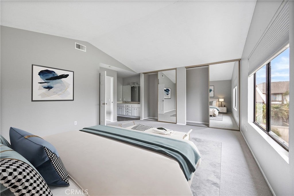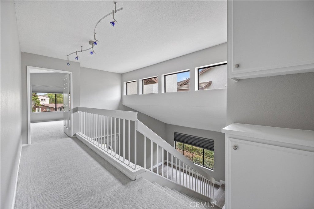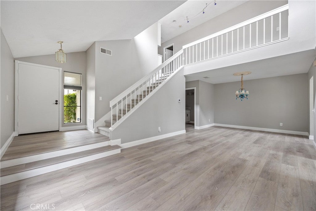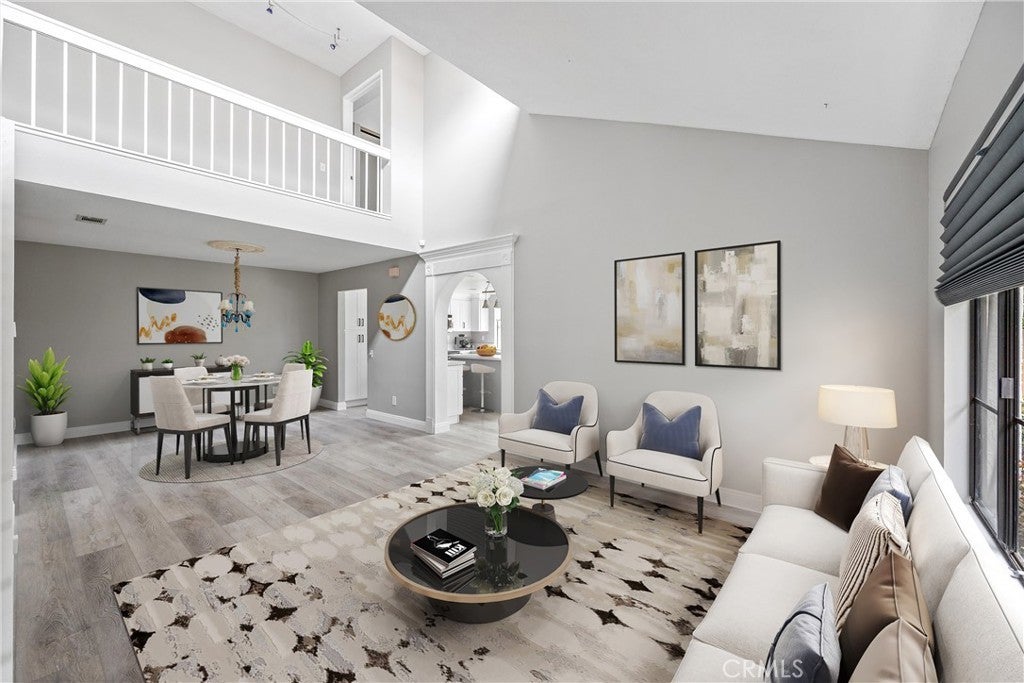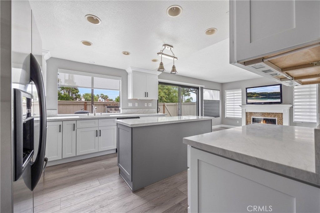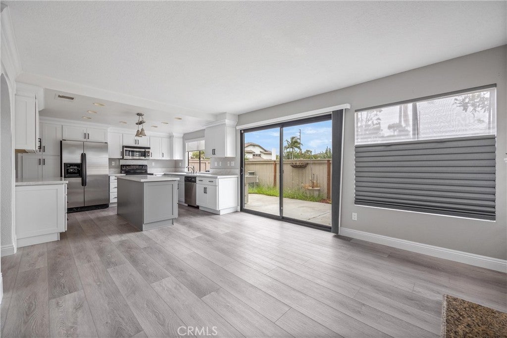 Welcome to this stunning end-unit townhome in the highly sought-after Shadow Lane community, quality-built by Fieldstone Homes and ideally located less than 4 miles from the beach within a top-ranked school zone (Courreges, Fulton, and FVHS). This light-filled, beautifully upgraded 3-bedroom, 2.5-bath home offers approximately 1,639 square feet of open, flowing living space, an oversized 2-car garage, and central A/C. Step down the private walkway and into a grand foyer that opens to an elegant living room and formal dining area with soaring cathedral ceilings, creating an impressive sense of space and natural light. The home features brand new carpet, fresh interior paint, high ceilings, and expansive windows that enhance the bright, airy feel throughout. An arched passage leads to the fully renovated chef’s kitchen, complete with a center island, quartz countertops, custom white shaker soft-closing cabinetry, deep drawers, pantry with pull-outs, stainless steel appliances, and a farmhouse sink. The kitchen flows seamlessly into the inviting family room with a cozy fireplace, making it the perfect space for everyday living and entertaining. Sliding doors open to a private outdoor space with views of the surrounding neighborhood—ideal for relaxing or hosting gatherings. Upstairs, an impressive landing with a “catwalk” design and transom windows adds architectural character while bringing in even more natural light. The spacious primary suite features high ceilings, generous closet space, and a well-appointed en-suite bath, while two additional bedrooms provide flexibility for family, guests, or a home office. Additional highlights include premium Tri-Light automated banded sheer and honeycomb window treatments with smart-home functionality and blackout-to-sheer options, along with thoughtful upgrades throughout. Residents of Shadow Lane enjoy access to a well-maintained community with a pool and spa, all within close proximity to shopping, dining, and the coast. This is a rare opportunity to own a turnkey home in one of Fountain Valley’s most desirable communities.