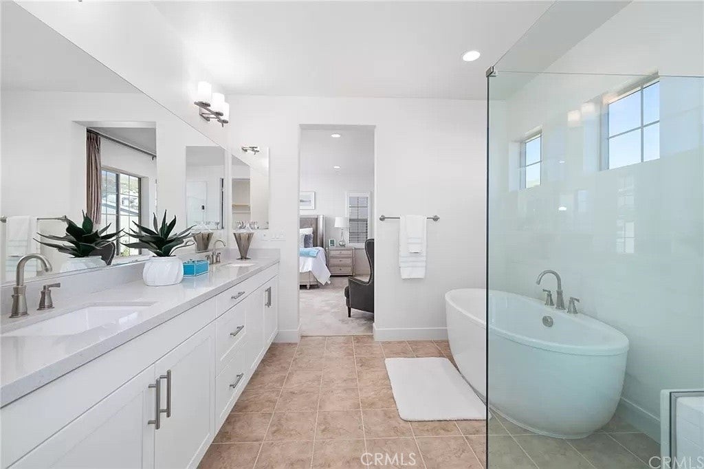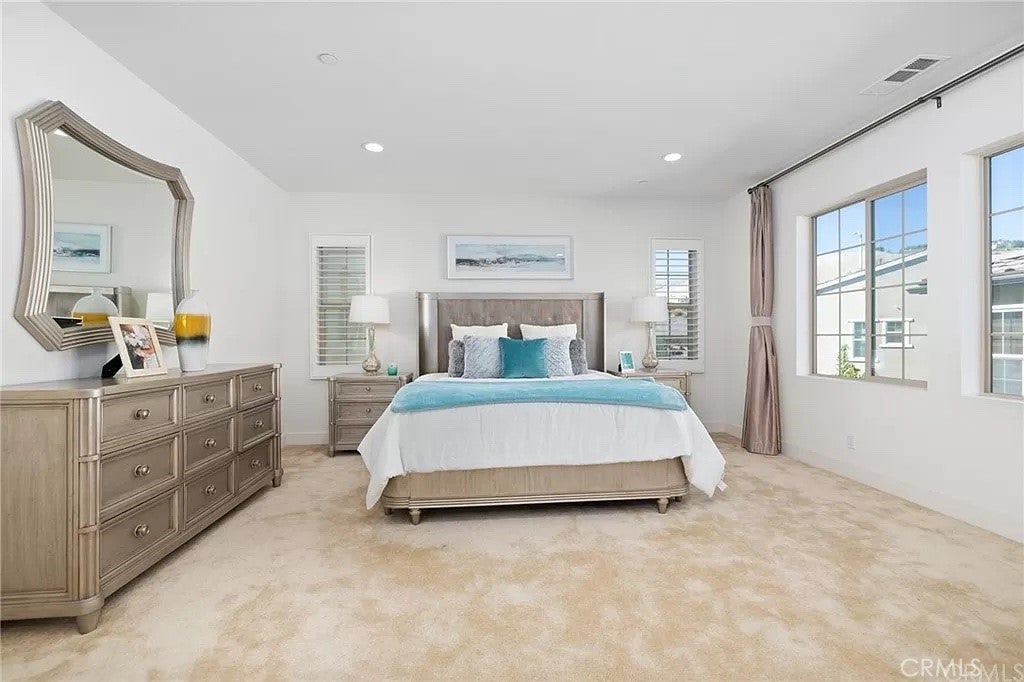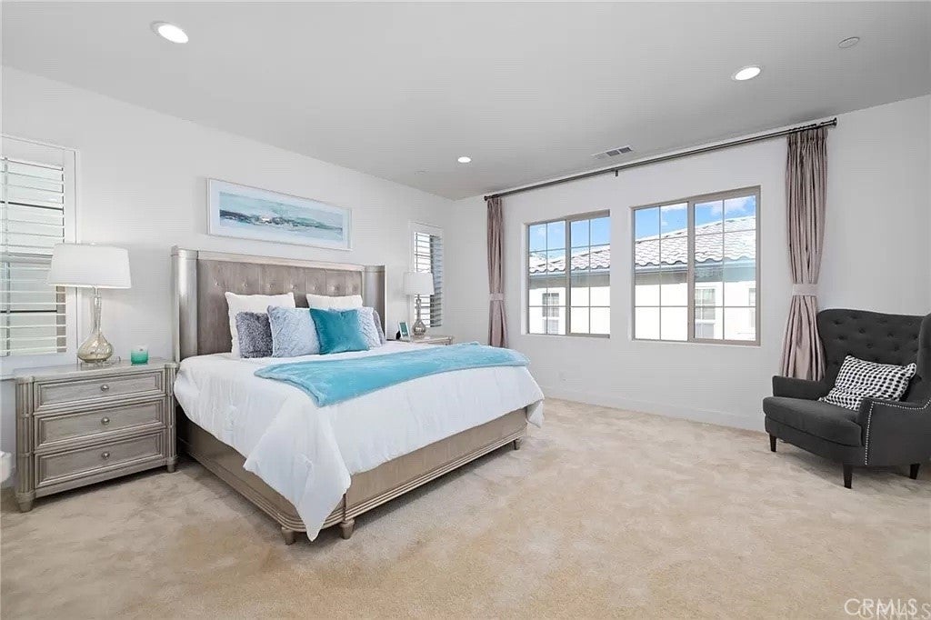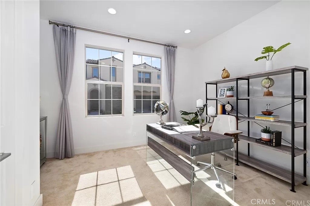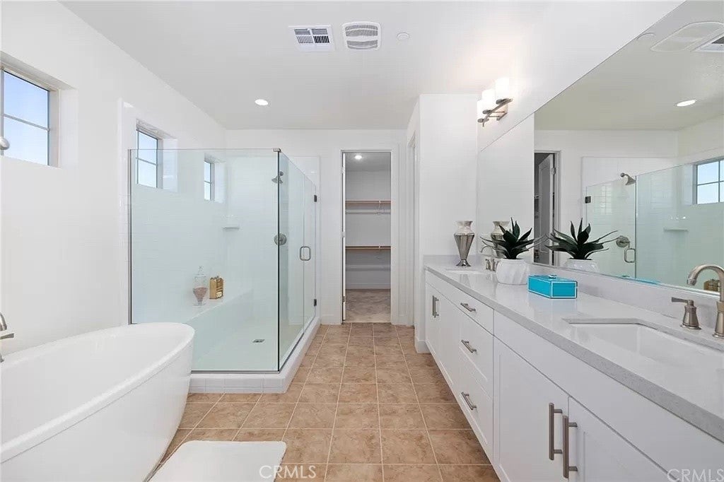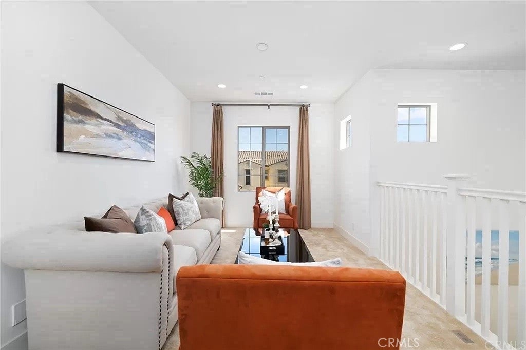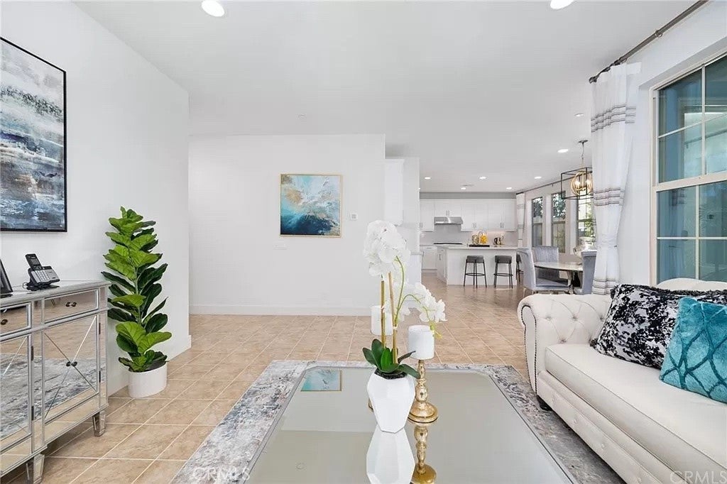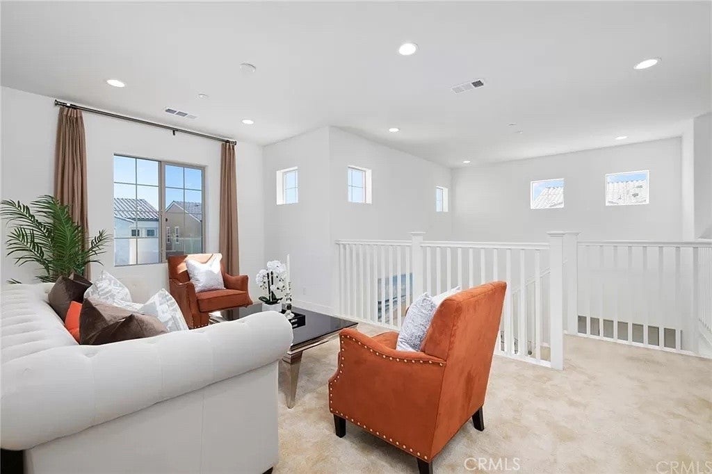 Beautifully upgraded home in the gated community of Ironridge. Home features include soaring ceilings and open-concept living/dining areas that flow into a chef's kitchen with a large island and ample storage. Sliding doors lead to a California room and a landscaped backyard perfect for indoor-outdoor living. A downstairs bedroom with a nearby full bath offers flexibility for guests or a home office. Upstairs includes a spacious loft, ideal for a second living area. The primary suite is a private retreat with a spa-like bath and large walk-in closet. Two additional bedrooms are thoughtfully positioned for added privacy. A generous laundry room adds convenience. Residents enjoy resort inspired amenities including a pool, spa, bbq areas, dog park, and scenic trails all conveniently located near premier dining, shopping, and freeway access.