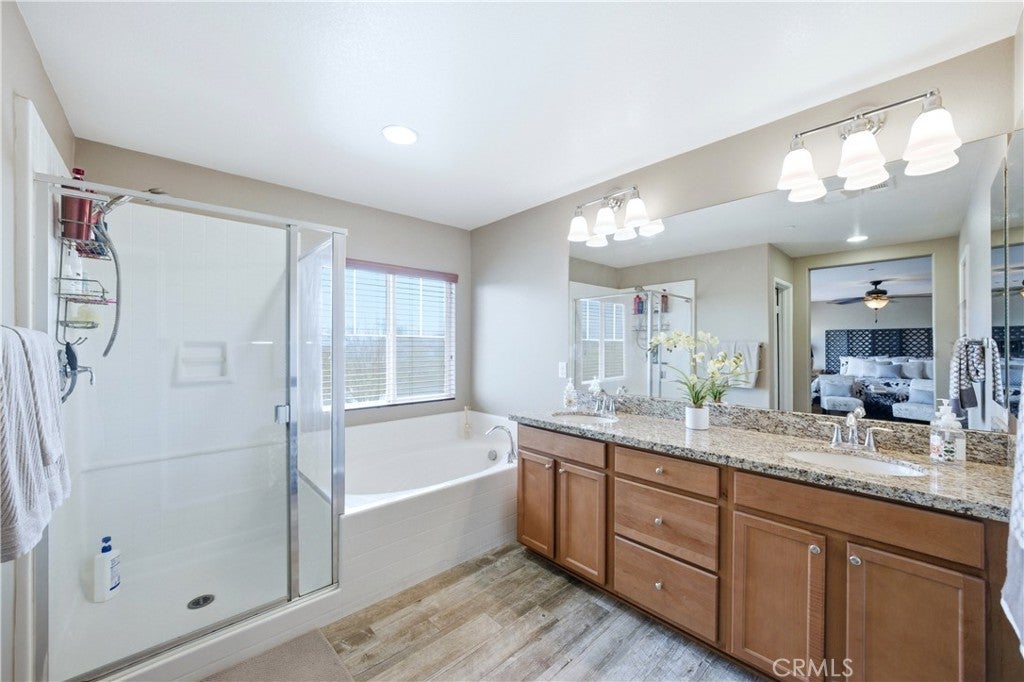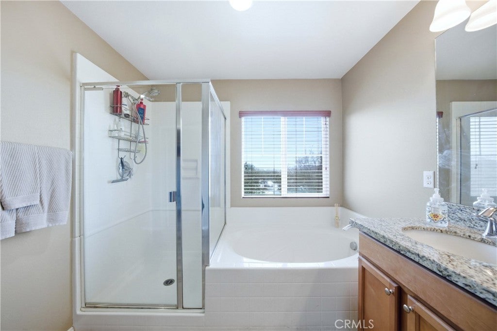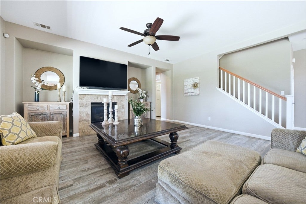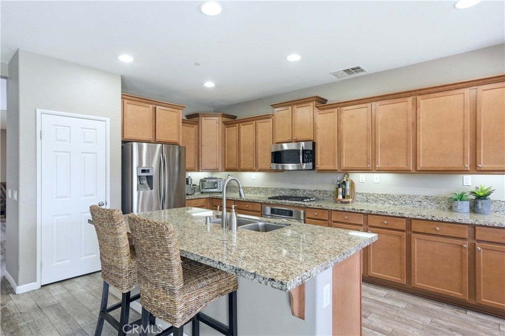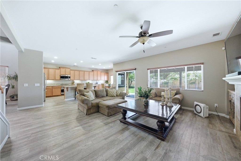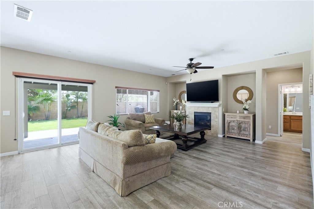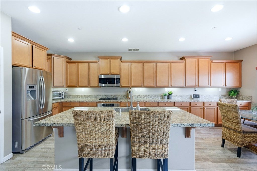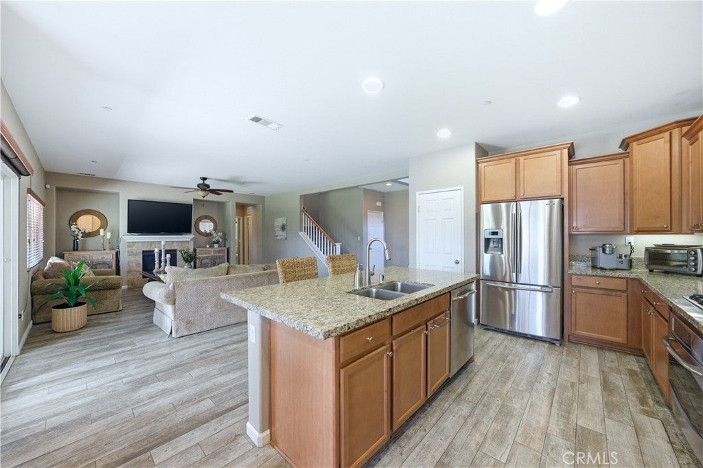 Beautifully Maintained Residence with a Stunning Built-out Kitchen. This impeccably cared-for two-story home reflects true pride of ownership, offering 4 bedrooms and 3 bathrooms + a large loft, within a thoughtfully designed and exceptionally well-kept interior. From the moment you enter, soaring ceilings and abundant natural light highlight the home’s condition and inviting, open-concept layout. At the heart of the home is a beautifully expanded kitchen, designed for both everyday living and elevated entertaining. Featuring rich granite countertops, extended cabinetry, quality finishes, and a seamless flow into the expansive family room. Large windows opening up to the backyard and a cozy fireplace create a warm, connected for gatherings or relaxed evenings at home. The primary suite offers a peaceful retreat with an en-suite bathroom and a generous walk-in closet. A main-level bedroom and full bath provide flexibility for guests or multigenerational living, while the upstairs loft offers additional space for a home office, media room, or creative studio. This loft can also be separated for a 5th bedroom. The backyard has a covered patio and is well-sized and versatile—perfect for entertaining, unwinding, or designing your own outdoor vision, with ample room for a future ADU. Ideally located near parks, shopping, and well-rated schools with convenient freeway access, this home delivers a rare combination of meticulous care, refined style, and everyday livability.