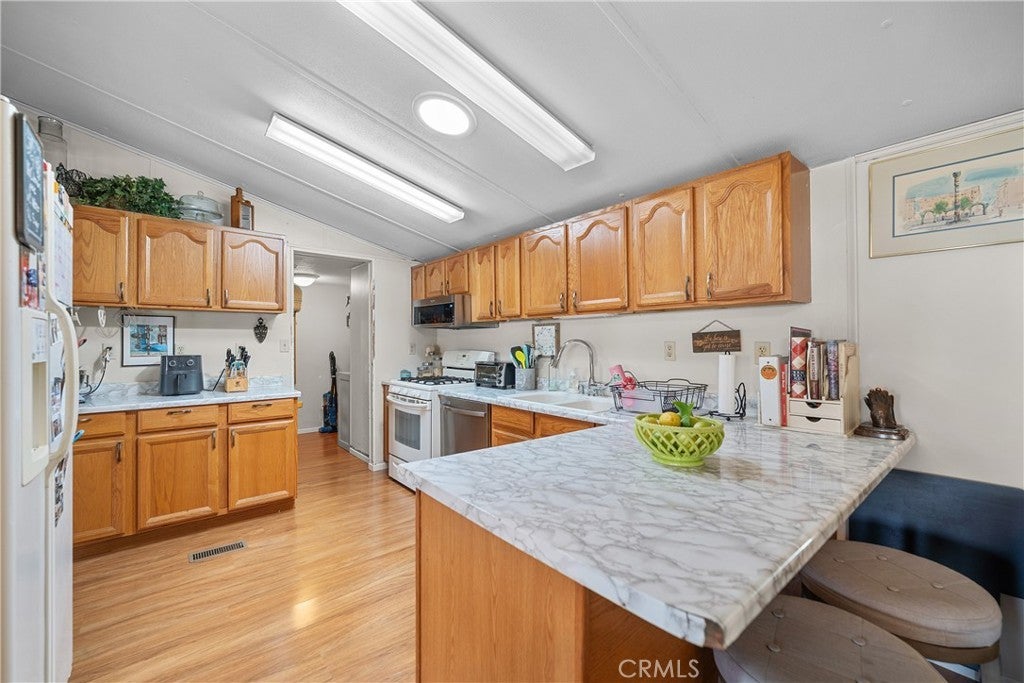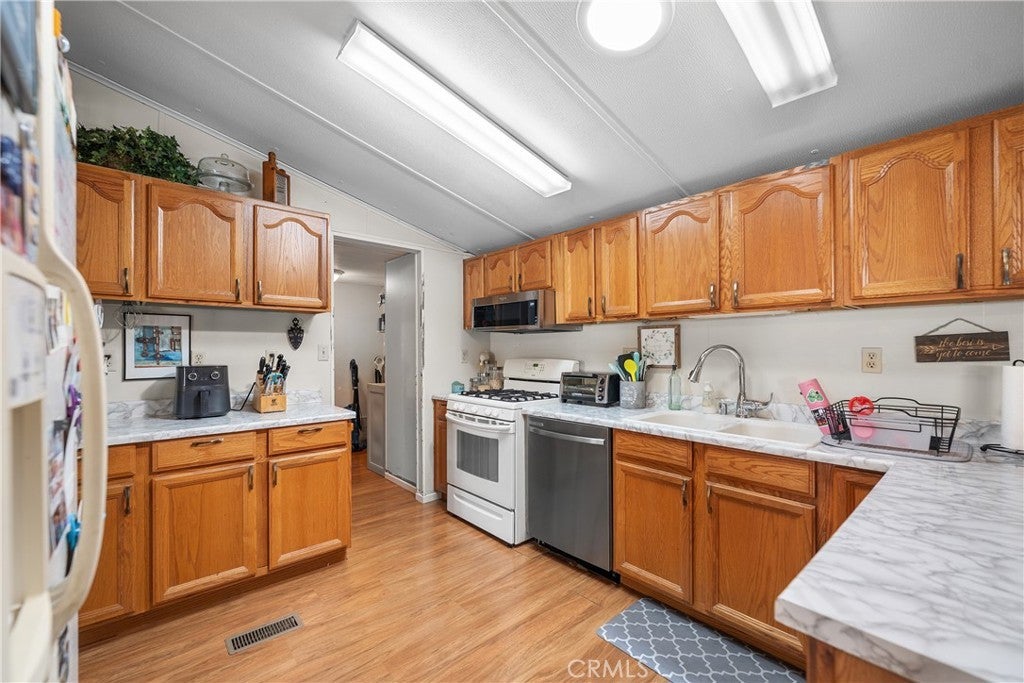 Villa Corona Mobile Home Community: what a great place to live! On offer is a spacious double-wide mobile home unit consisting of 1,248 sq. ft. of comfort that features 3 Bedrooms and 2 recently upgraded full Bathrooms. This gorgeous home comes with all appliances that include Stove, Microwave, Refrigerator, Dishwasher and Washer & Dryer. There are ceiling fans throughout, central air, a 2 car detached garage with storage and a private patio! The backyard also includes a Lemon tree for your enjoyment. Talk about amenities, the renovated clubhouse includes a lounge area with a fireplace, library, game room, card room, dinning hall with a full kitchen, laundry area, car wash area gym and of course the Pool & Spa! So why look any further? It is all here waiting for you to move in and enjoy!