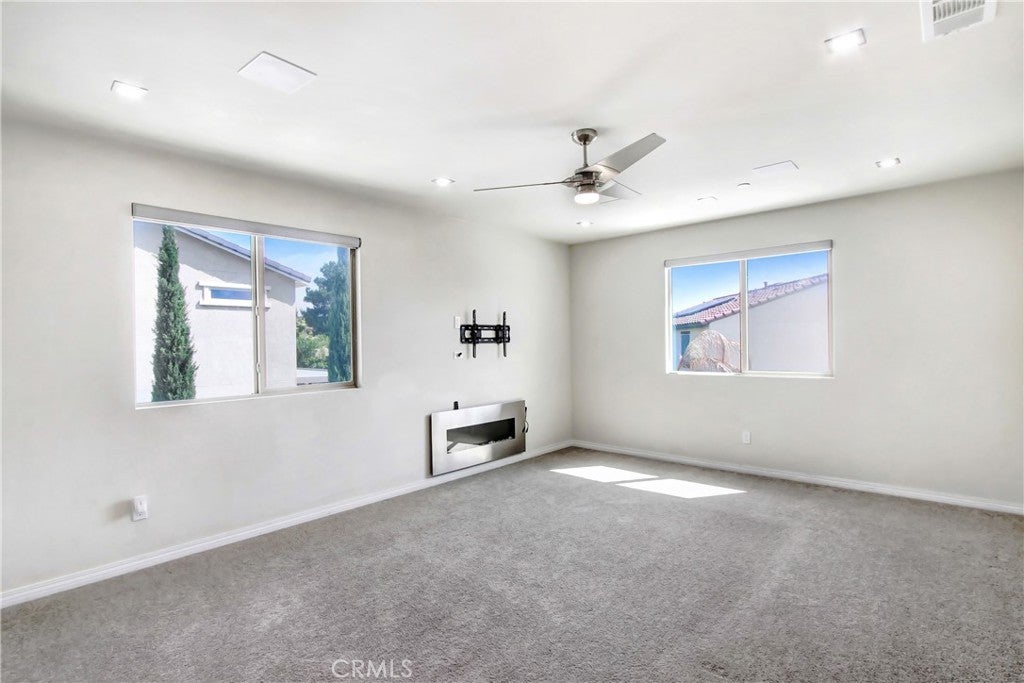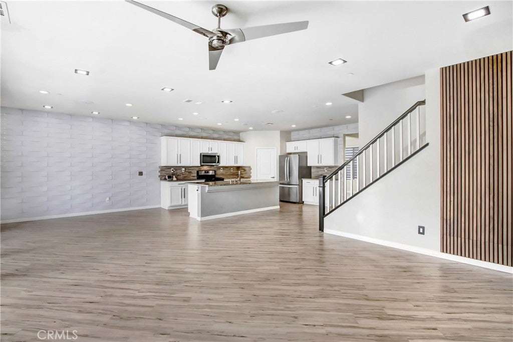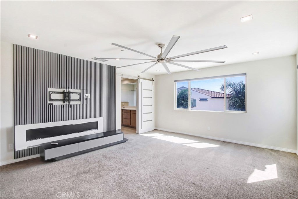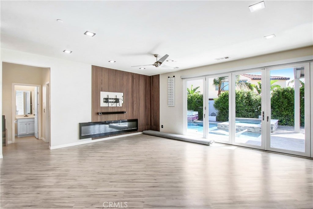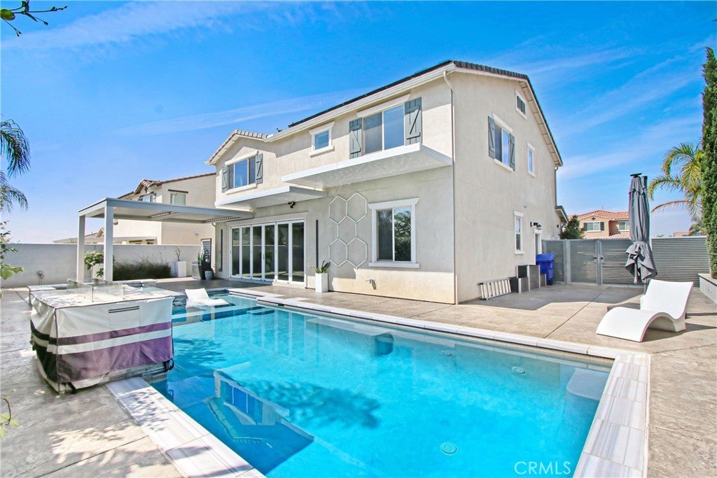 WELCOME HOME to one of North Fontana's most extraordinary homes! From the moment you arrive, the wide driveway, modern landscaping, and striking curb appeal signal this home is different. Step inside and it delivers on every promise. Spread across 2,824 square feet, this 4-bedroom, 3-bathroom home was designed for people who live fully and refuse to compromise. The open-concept main level anchors around a chef's kitchen with granite island, stainless steel appliances, custom tile backsplash, and direct sightlines to the backyard through dramatic bifold glass doors. The living room features a wood slat fireplace accent wall, recessed lighting, and wide-plank luxury flooring that flows through every corner of the main level. Three distinct living spaces give your family room to breathe, gather, and unwind. The primary suite is in a class of its own. A custom barn door opens to an expansive retreat anchored by an oversized statement ceiling fan, a designer black slat accent wall with built-in electric fireplace, and a walk-in closet with floor-to-ceiling mirrors and custom built-in shelving. The en suite bathroom features dual vanities, generous counter space, and a frameless glass walk-in shower. It feels less like a bedroom and more like a private escape. The Secondary bedrooms are bright, spacious, and finished with plush carpet and ceiling fans. A dedicated upstairs laundry room and three full bathrooms complete a thoughtful and functional floor plan designed for real life. Then there is the backyard. A sparkling pool with in-water chaise lounger, a stone-clad spa with spillover feature, a built-in stainless steel BBQ station, and a louvered aluminum patio cover create an outdoor living experience most people only encounter at five-star resorts. Italian cypress trees, mature palms, lush privacy hedging, and custom lotus wall art frame a space that is as peaceful as it is impressive. Summer weekends will never be the same...and I think you'll be hosting all the get-togethers from this point forward. This beautiful residence is minutes from Sierra Lakes Golf Club, Victoria Gardens, Ontario Mills, and the 210 and 15 freeways. Assigned schools are close by as well as endless amenities in the region. Come see this home before it is gone! This one will not last!
