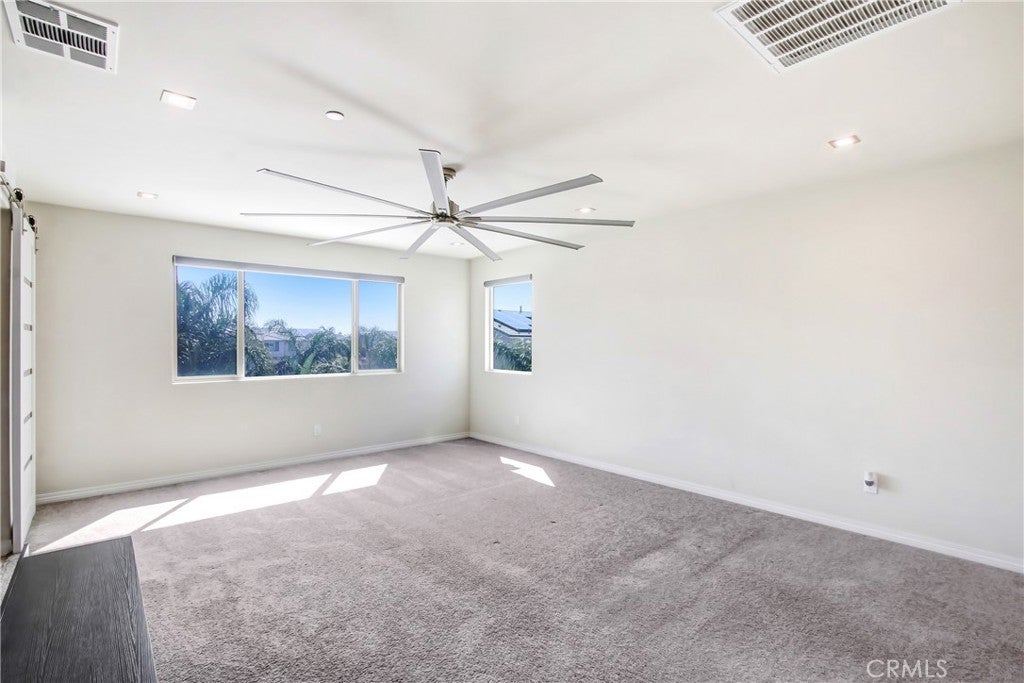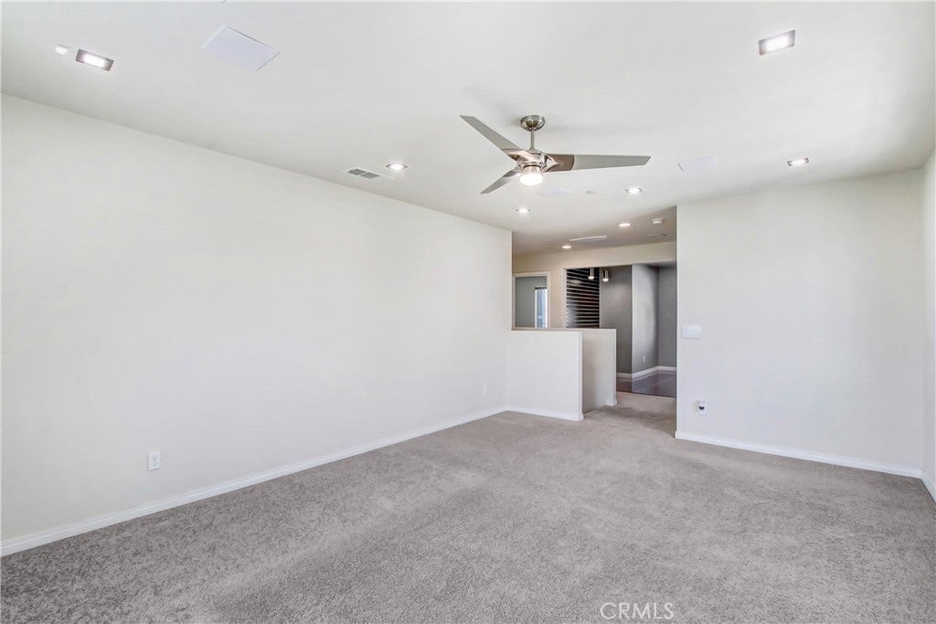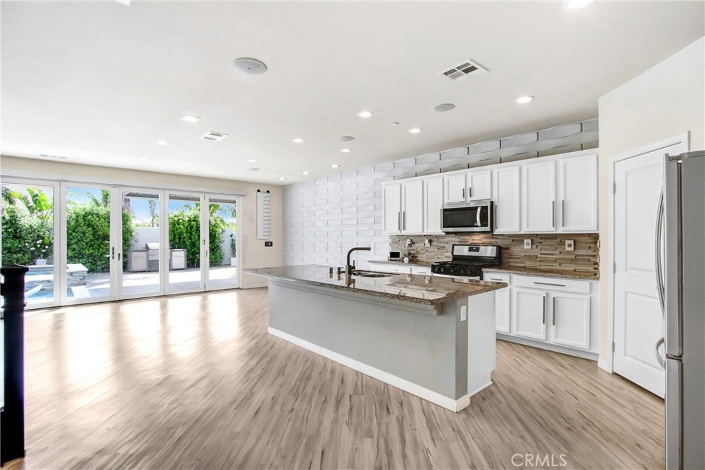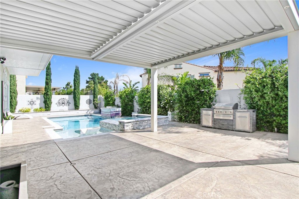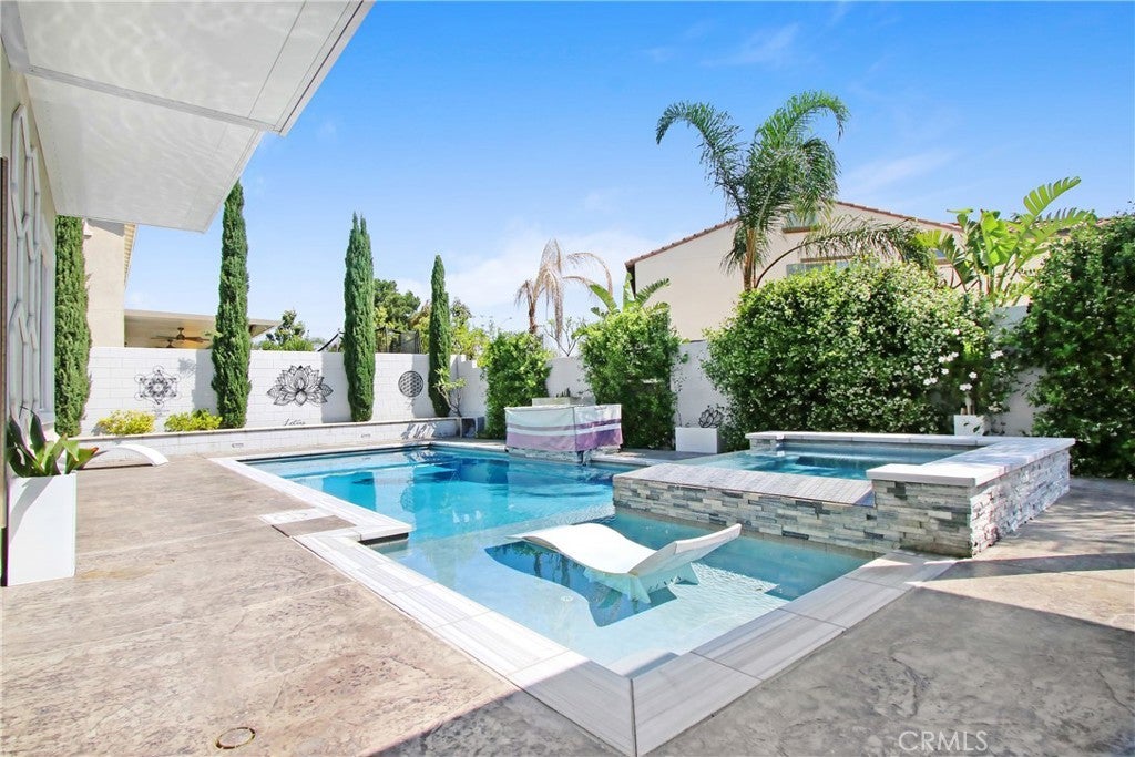 WELCOME HOME to one of North Fontana's most extraordinary homes! From the moment you arrive, the wide driveway, modern landscaping, and striking curb appeal signal this home is different. Step inside and it delivers on every promise. Spread across 2,824 square feet, this 4-bedroom, 3-bathroom home was designed for people who live fully and refuse to compromise. The open-concept main level anchors around a chef's kitchen with granite island, stainless steel appliances, custom tile backsplash, and direct sightlines to the backyard through dramatic bifold glass doors. The living room features a wood slat fireplace accent wall, recessed lighting, and wide-plank luxury flooring that flows through every corner of the main level. Three distinct living spaces give your family room to breathe, gather, and unwind. The primary suite is in a class of its own. A custom barn door opens to an expansive retreat anchored by an oversized statement ceiling fan, a designer black slat accent wall with built-in electric fireplace, and a walk-in closet with floor-to-ceiling mirrors and custom built-in shelving. The en suite bathroom features dual vanities, generous counter space, and a frameless glass walk-in shower. It feels less like a bedroom and more like a private escape. The Secondary bedrooms are bright, spacious, and finished with plush carpet and ceiling fans. A dedicated upstairs laundry room and three full bathrooms complete a thoughtful and functional floor plan designed for real life. Then there is the backyard. A sparkling pool with in-water chaise lounger, a stone-clad spa with spillover feature, a built-in stainless steel BBQ station, and a louvered aluminum patio cover create an outdoor living experience most people only encounter at five-star resorts. Italian cypress trees, mature palms, lush privacy hedging, and custom lotus wall art frame a space that is as peaceful as it is impressive. Summer weekends will never be the same...and I think you'll be hosting all the get-togethers from this point forward. This beautiful residence is minutes from Sierra Lakes Golf Club, Victoria Gardens, Ontario Mills, and the 210 and 15 freeways. Assigned schools are close by as well as endless amenities in the region. Come see this home before it is gone! This one will not last!