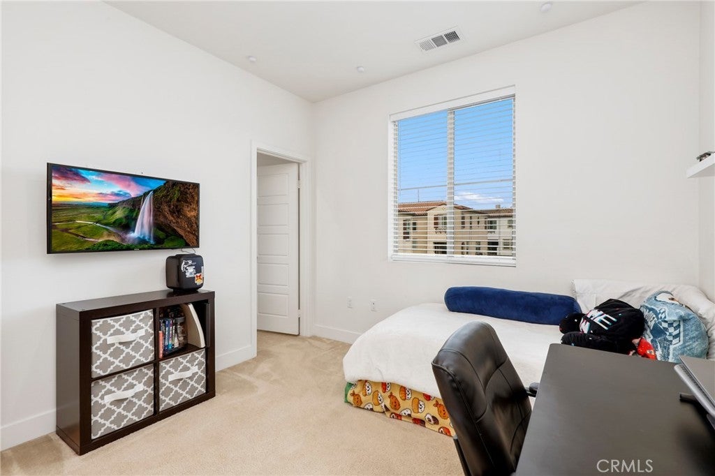 Welcome to the desirable Loma Vista community in Yorba Linda! One of only a few in the community that is falls under the moderate income housing so the Buyer will need to meet income requirements & be approved by the City of Yorba Linda, (Ask your Agent for supplements) This beautifully designed tri-level condo offers a functional and modern layout. The first level features direct access to a spacious two-car attached garage. The main living area on the second level is bright and open, showcasing a generous living room that flows seamlessly into the kitchen, complete with a large center island, white cabinetry, stainless steel appliances, and a cozy breakfast nook. Sliding glass doors lead to a private balcony—perfect for relaxing or entertaining. A convenient powder room is also located on this level. Upstairs on the third level, you’ll find a well-appointed primary suite with an ensuite bathroom featuring dual vanities, along with a secondary bedroom that also enjoys its own private ensuite bath—ideal for guests or roommates. Residents of Loma Vista enjoy access to resort-style amenities including a pool, spa, and playground, all within a beautifully maintained community.