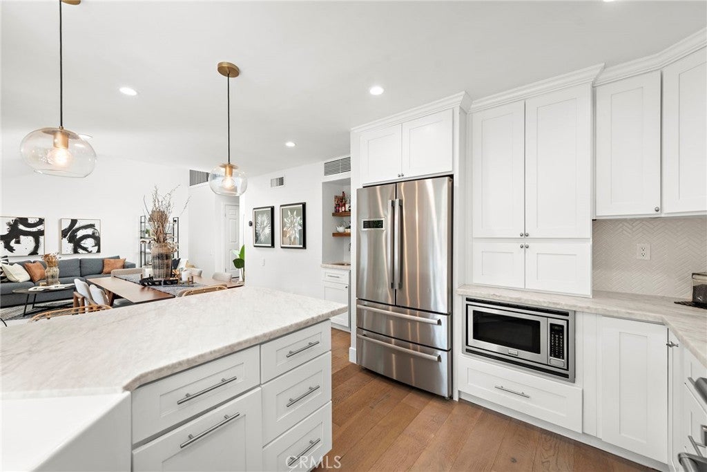 STYLISH LIVING AT ITS FINEST!!! Welcome to Newport Windsor Homes conveniently located near freeways, shopping, and restaurants. Magnificent upgrades throughout in this turnkey 2-bedroom 2.5 bath townhome. This serene residence offers remodeled living spaces with an open floor plan, flowing with ample natural light. Remodeled throughout with designer attention to detail and high-quality present-day finishes, hardwood floors and soaring ceilings. The gourmet kitchen with stainless steel appliances opens to the dining room and outdoor covered patio. The primary bedroom features remodeled ensuite bath and walk-in closet. The spacious guest bedroom could also serve as a home office. Direct access to the 2-car garage with overhead storage and EV Tesla charging station plus ample guest parking nearby. Just adjacent to the community pocket park. Perfectly situated near Schools, exciting Restaurants 7Grams - Ruby's - Rock & Brews and many more great places… walk to Trader Joe's, easy access to major Freeways (5 Fwy-55 Fwy) and Shopping Centers. LOVE WHERE YOU LIVE!