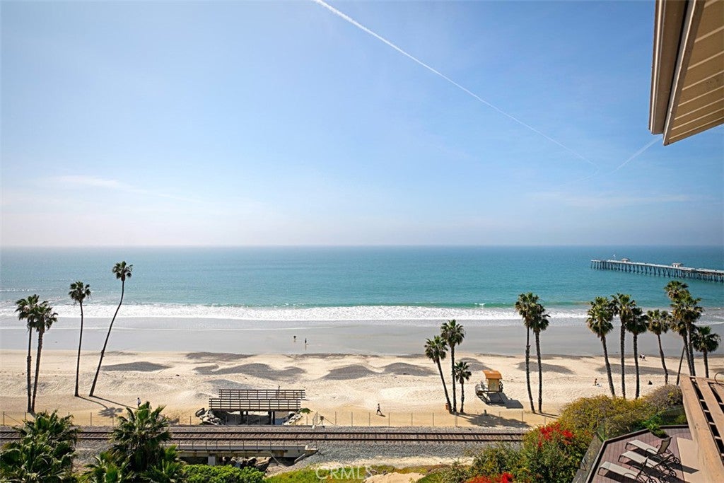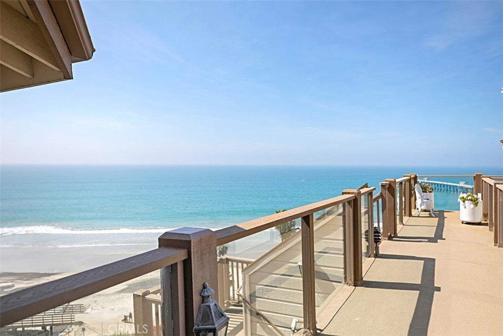 Nothing compares to this property above T-Street beach. Exclusive gated community of 15 homes in Driftwood Bluffs. Amazing White Water views as you approach the front door. Entering you see the Blue Pacific from all angles, South to La Jolla, North to the Pier and Dana Point. View sit down Catalina sunset views as well as Seal Rock and San Clemente Island. Spacious top floor condo with your own exclusive elevator. The outdoor deck is very large for outdoor entertaining, while watching surfing, the beach trail, and the San Clemente Pier. The absolute best spot for watching the 4th of July Fireworks! Fantastic location in the heart of San Clemente where you can stroll, bike or golf cart to the downtown Village, for fine dining with many restaurants and entertainment to choose from. Local gatherings and events as well as shopping make San Clemente the place to be. Easy access to all of San Clemente beaches. Come and live the San Clemente laid-back life style!