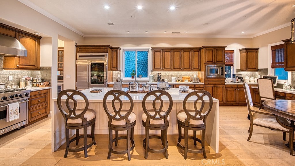 Set within the prestigious guard-gated enclave of Coto de Caza, 17 Long View presents a rare opportunity to own an exceptional residence that elevates everyday living into something truly extraordinary. Boasting 42 panels of owned solar and remodeled in 2023, this home makes a striking impression with its commanding presence, refined architectural details, and an ambiance of timeless sophistication. Light-filled interiors, soaring ceilings, and beautifully curated finishes create a sense of scale and elegance rarely found at this level. The thoughtfully designed floor plan flows seamlessly through expansive living and entertaining spaces, anchored by a chef-inspired kitchen that opens effortlessly to the family room—perfectly suited for both grand entertaining and intimate gatherings. A main level office and beautiful game room provide a fantastic place to work or play. Each bedroom is generously sized, while the primary suite offers a private sanctuary with spa-like comforts including a soaking dual shower and an enclosed steam room. Outdoors, you'll find an entertainer's paradise perfect for hosting sunset soirées, enjoying quiet mornings, or simply taking in the tranquil surroundings. Retreat from the lanai doors to the backyard where you'll find a sparkling pool, spa, and two stunning covered patios - one featuring a stone fireplace and dining area, and the other featuring an outdoor kitchenette, bar and BBQ grill! Located in one of Orange County’s most coveted communities, residents enjoy the unmatched lifestyle of Coto de Caza—featuring miles of scenic trails, optional country club amenities of Coto de Caza Golf & Racquet Club, equestrian facilities, and numerous parks—all just moments from top-rated schools, shopping, dining, and the coast. This is not just a home, but a statement of lifestyle and distinction.