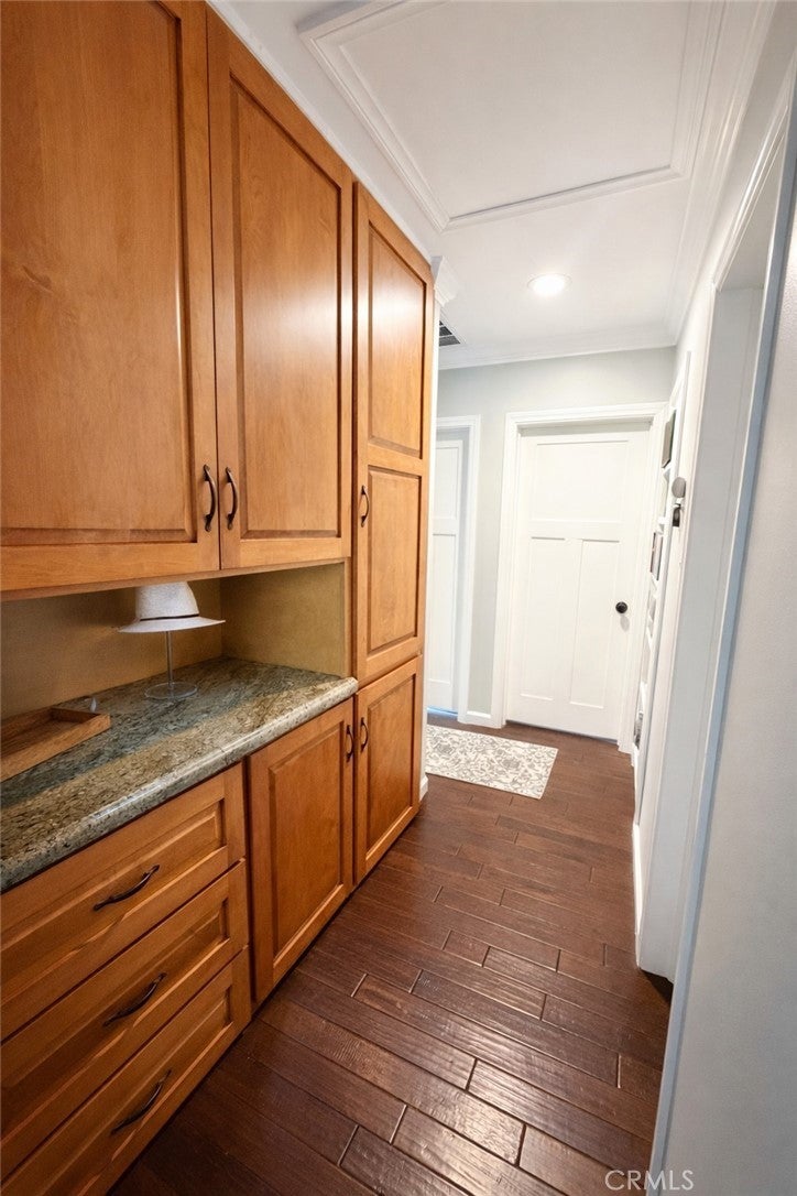 Breakfast Bar, Built-in Features, Breakfast Area, Ceiling Fan(s), Crown Molding, Cathedral Ceiling(s), Separate/Formal Dining Room, Granite Counters, Open Floorplan, Pantry, Stone Counters, Recessed Lighting, Wired for Sound, All Bedrooms Down, Bedroom on Main Level, Attic, Coffered Ceiling(s), Pull Down Attic Stairs