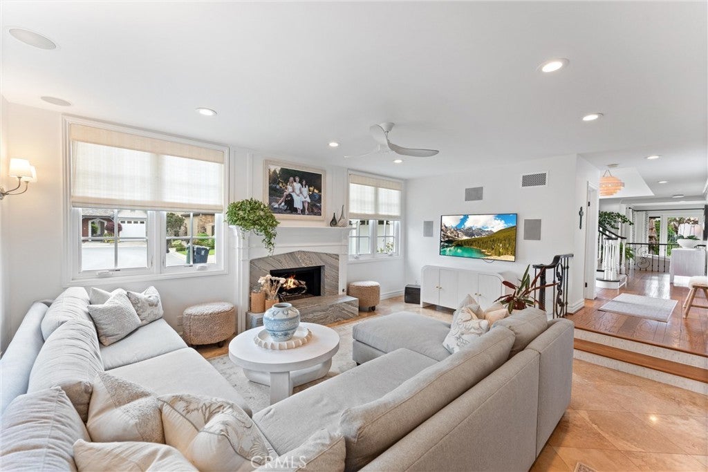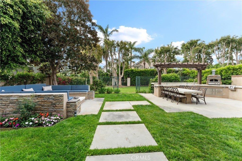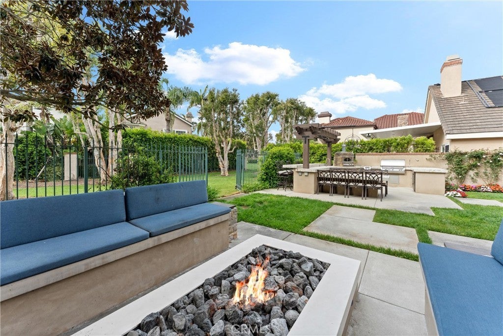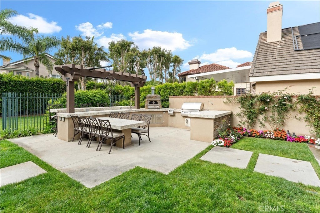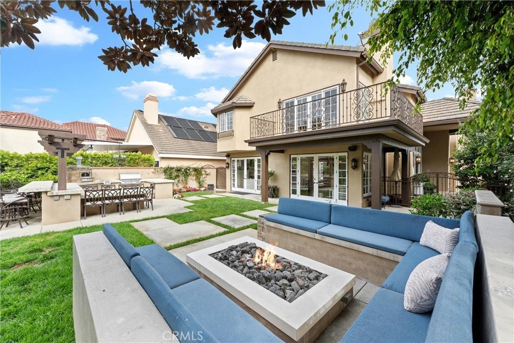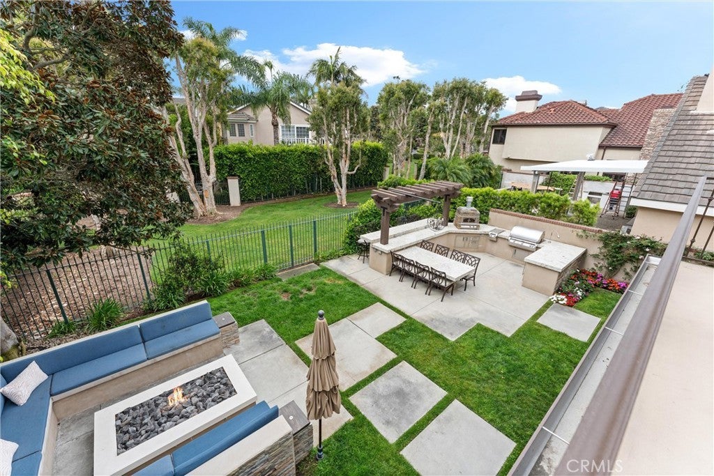 Located in the prestigious guard-gated community of Seacliff on the Greens in Huntington Beach, this exceptional residence with almost 4,000 sq ft offers the perfect blend of luxury, comfort, and coastal living. Situated on a desirable corner lot of over 7,000 sq ft, the home features 4 bedrooms, 3.5 bathrooms, a dedicated office, and a spacious 3-car garage. Designed for both everyday living and entertaining, the resort-style backyard opens to a lush greenbelt and is truly one-of-a-kind—complete with a built-in BBQ, burner, outdoor pizza oven, refrigerator, bar with dining area, expansive fire pit with built-in coolers, and a tranquil water fountain. The chef’s kitchen has been impeccably remodeled with granite countertops, a 48” Wolf range, built-in Sub-Zero refrigerator, dual dishwashers, and a charming bay window that fills the space with natural light. Throughout the home, you’ll find rich wood flooring, plantation shutters, custom drapery, designer pendant lighting and chandeliers, and a stunning double-door entry leading to a grand foyer with a statement staircase. Multiple fireplaces enhance the living room, family room, and primary suite, while French doors create seamless indoor-outdoor flow to the backyard and a serene central patio with a water feature. The sunken family room is an entertainer’s dream with surround sound and a built-in bar. Upstairs, a massive bonus room showcases a custom mural of the Huntington Beach Pier, offering the perfect space for recreation or relaxation. A rare opportunity to own a beautifully upgraded home in one of Huntington Beach’s most sought-after communities, just moments from world-class beaches, golf, shopping, dining and top-rated schools.