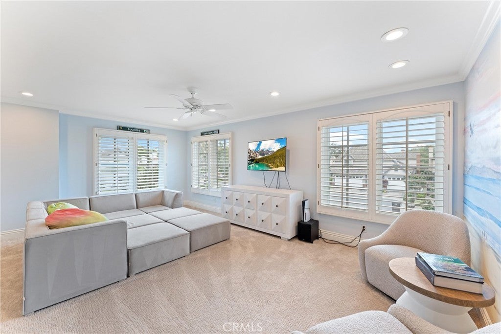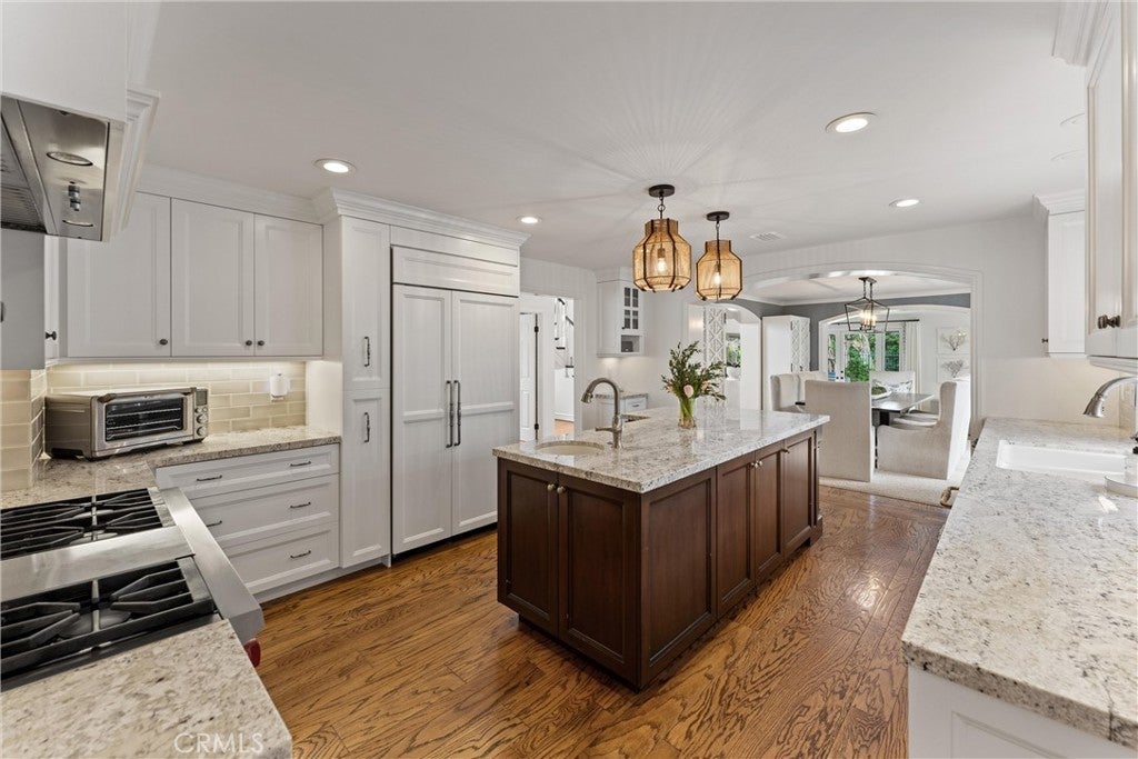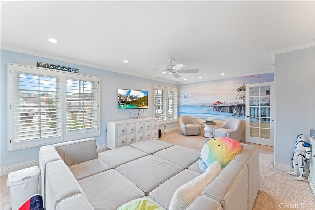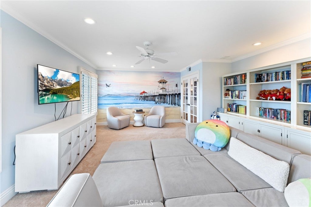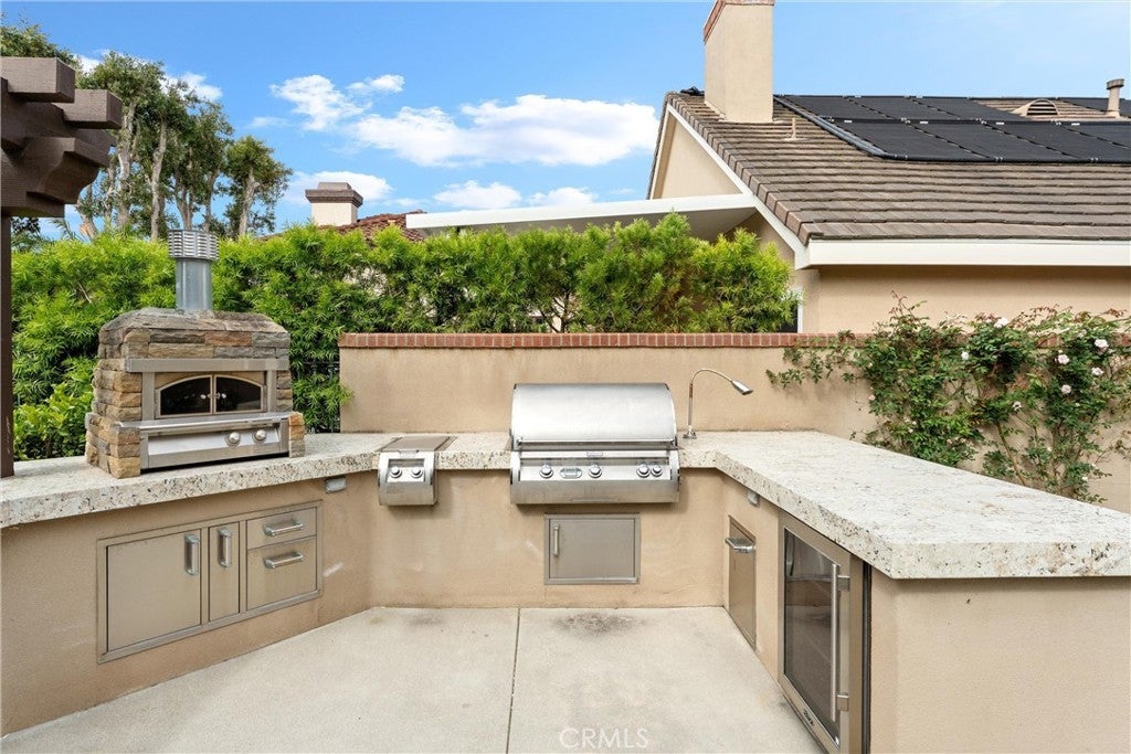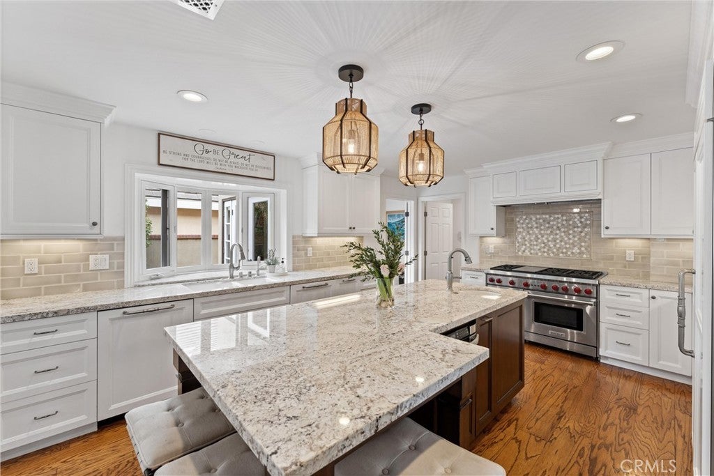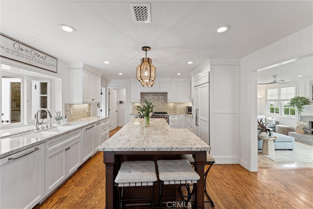 Located in the prestigious guard-gated community of Seacliff on the Greens in Huntington Beach, this exceptional residence with almost 4,000 sq ft offers the perfect blend of luxury, comfort, and coastal living. Situated on a desirable corner lot of over 7,000 sq ft, the home features 4 bedrooms, 3.5 bathrooms, a dedicated office, and a spacious 3-car garage. Designed for both everyday living and entertaining, the resort-style backyard opens to a lush greenbelt and is truly one-of-a-kind—complete with a built-in BBQ, burner, outdoor pizza oven, refrigerator, bar with dining area, expansive fire pit with built-in coolers, and a tranquil water fountain. The chef’s kitchen has been impeccably remodeled with granite countertops, a 48” Wolf range, built-in Sub-Zero refrigerator, dual dishwashers, and a charming bay window that fills the space with natural light. Throughout the home, you’ll find rich wood flooring, plantation shutters, custom drapery, designer pendant lighting and chandeliers, and a stunning double-door entry leading to a grand foyer with a statement staircase. Multiple fireplaces enhance the living room, family room, and primary suite, while French doors create seamless indoor-outdoor flow to the backyard and a serene central patio with a water feature. The sunken family room is an entertainer’s dream with surround sound and a built-in bar. Upstairs, a massive bonus room showcases a custom mural of the Huntington Beach Pier, offering the perfect space for recreation or relaxation. A rare opportunity to own a beautifully upgraded home in one of Huntington Beach’s most sought-after communities, just moments from world-class beaches, golf, shopping, dining and top-rated schools.