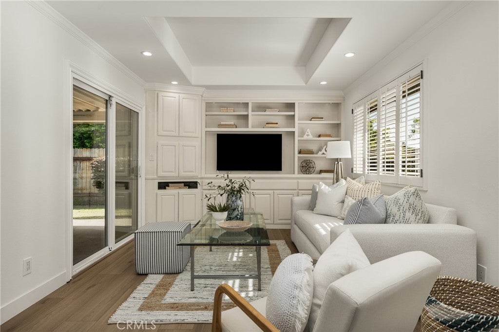 Welcome to a home that feels warm, comfortable, and easy to settle into. This 4-bedroom, 2.5-bath home offers a flexible layout with the option for two primary bedrooms or a private home office, including one on the main level. Updated flooring, new carpet, and fresh interior and exterior paint make it truly move-in ready. A formal dining room connects seamlessly to the main living area, while a light-filled lounge just off the kitchen creates the perfect spot for everyday living or relaxing. Set on a spacious lot, the backyard features two outdoor patio areas with plenty of space to unwind or entertain. Just minutes from Old Town Tustin, you’ll enjoy nearby dining, shopping, and year-round community events, along with close proximity to the Tustin Sports Complex. With no HOA, no Mello-Roos, placement within the Foothill High School boundary, and easy freeway access, this home offers a great blend of comfort and convenience.