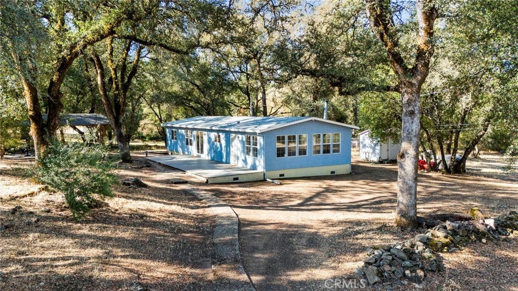 This fantastic property is back on the market! Discover a secluded gem in Northern California, rich in history and nature! This 23+ acre property has the special "Chinese Walls" built by 19th-century Chinese workers, along with an updated manufactured home on permanent foundation (making it lendable), seasonal pond + multiple creeks, detached 2-car garage with bonus room and power, second metal garage with rollup doors for storing equipment and recreational vehicles, and a covered patio for outdoor enjoyment. The home offers a fresh, airy feel with new paint inside and out, new waterproof laminate flooring, dual-pane windows + sliding glass doors, and composite decking on both the front and back of the house. The property is fenced and cross-fenced for livestock or horses, and comes with a tractor and two 1000-gallon water storage tanks. The washer and dryer, kitchen appliances, owned propane tank, and backup generator also stay with the property. Rest easy with the added security of the driveway gate, security screen door, great neighbors who look out for each other, a newly installed composite shingle roof, new gutters with covers, new skirting, and high-speed internet availability to stay connected in a rural area. Come make this turnkey, park-like property your own!