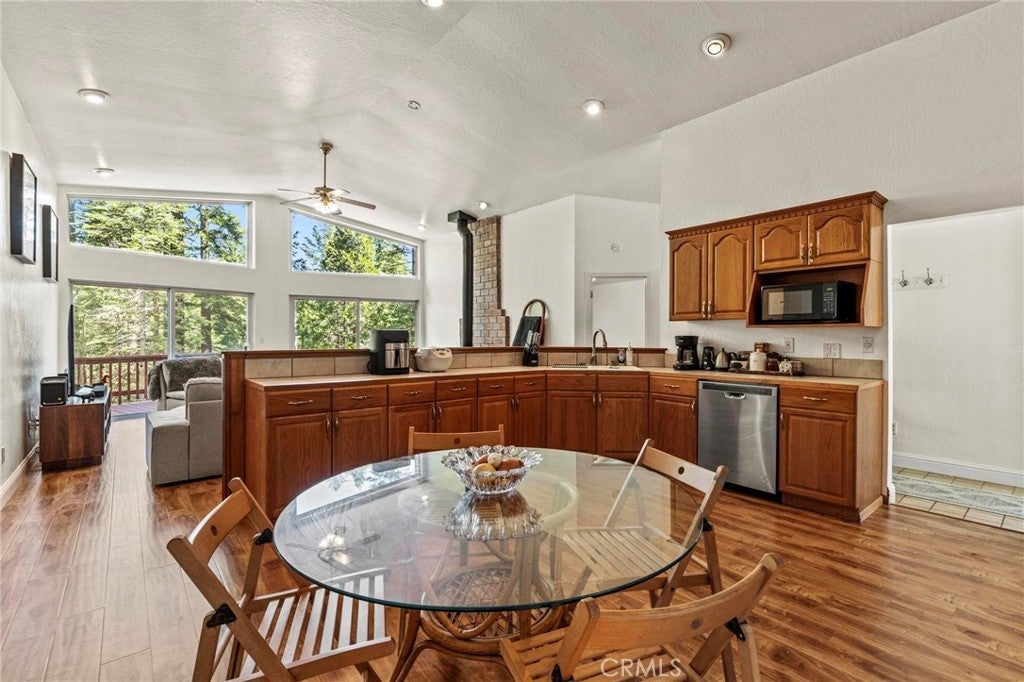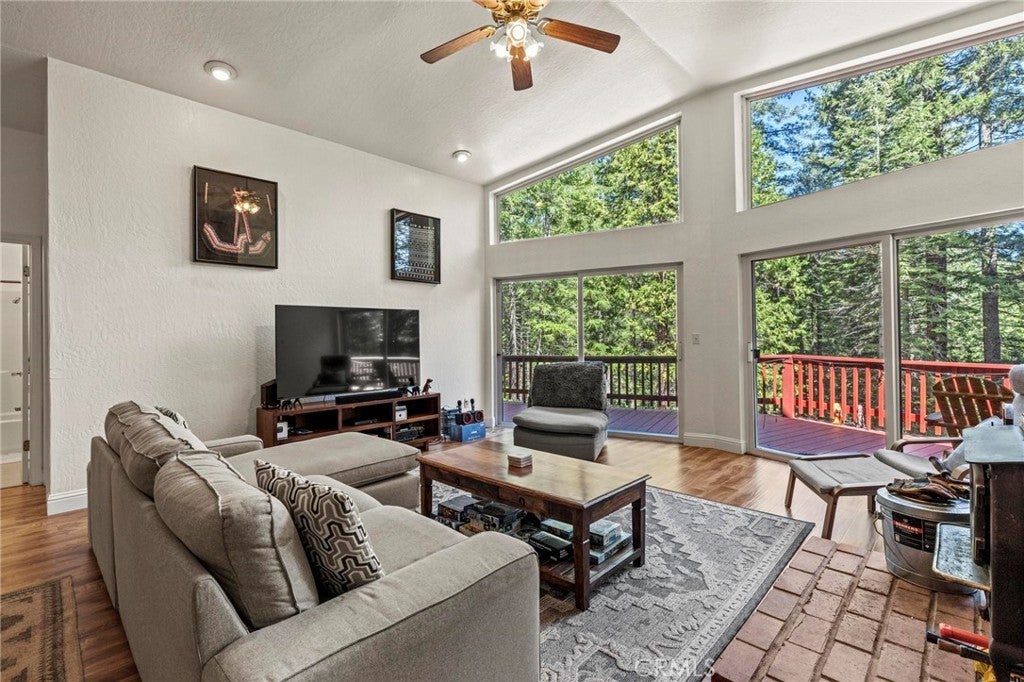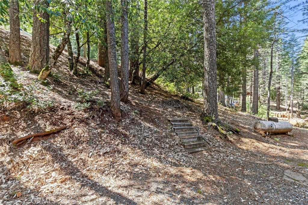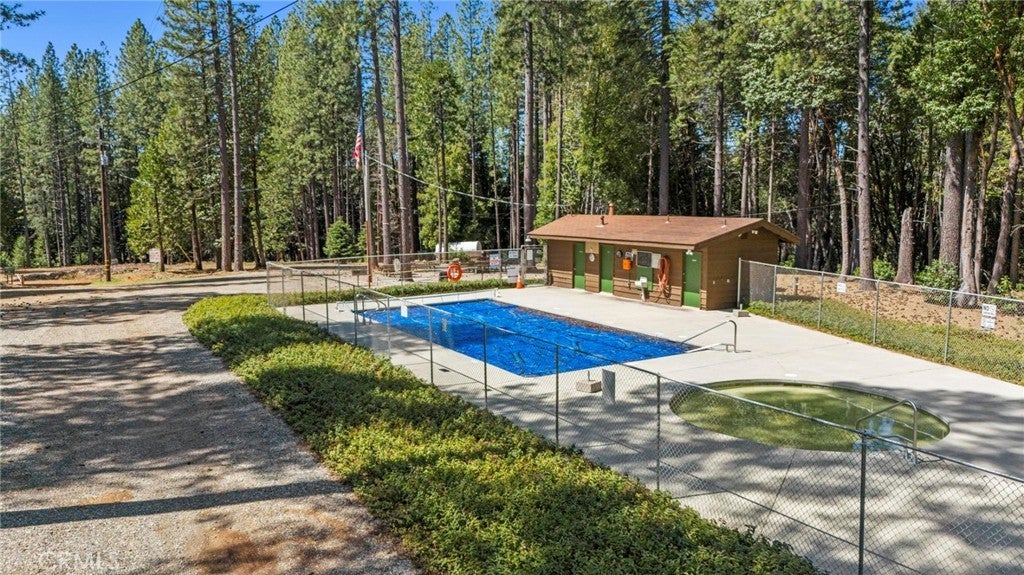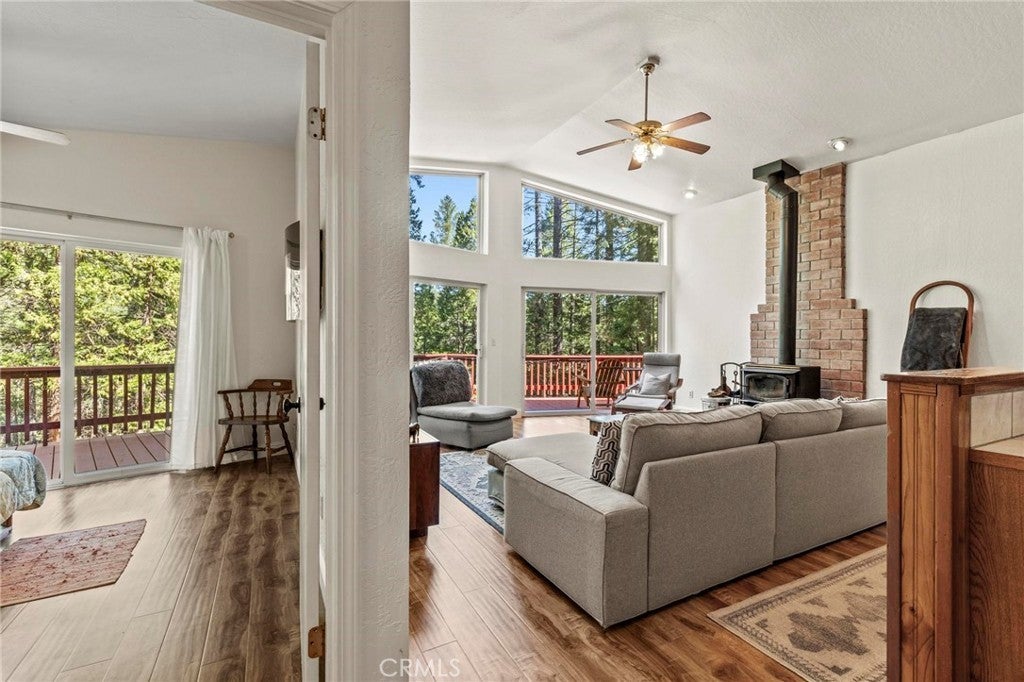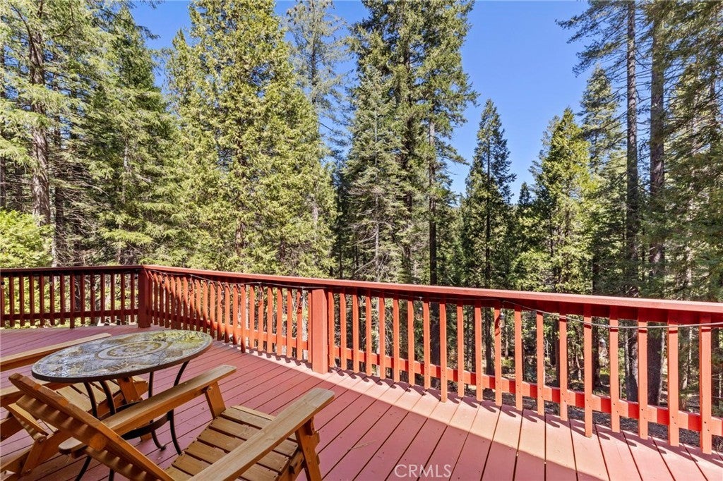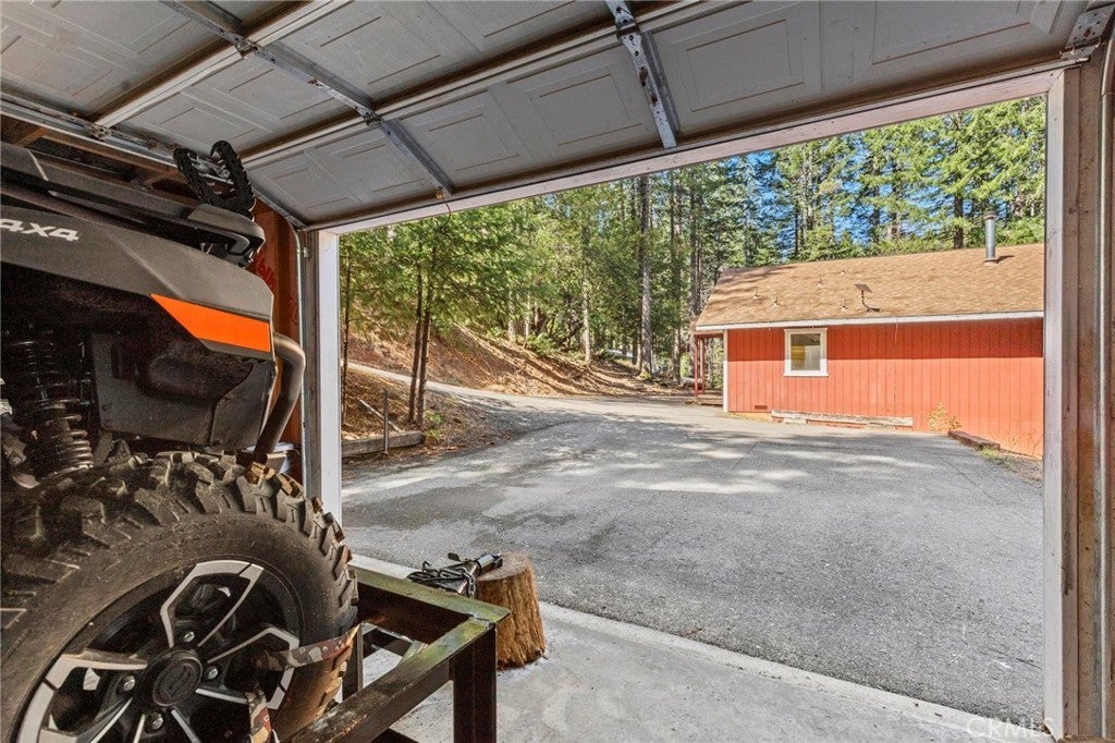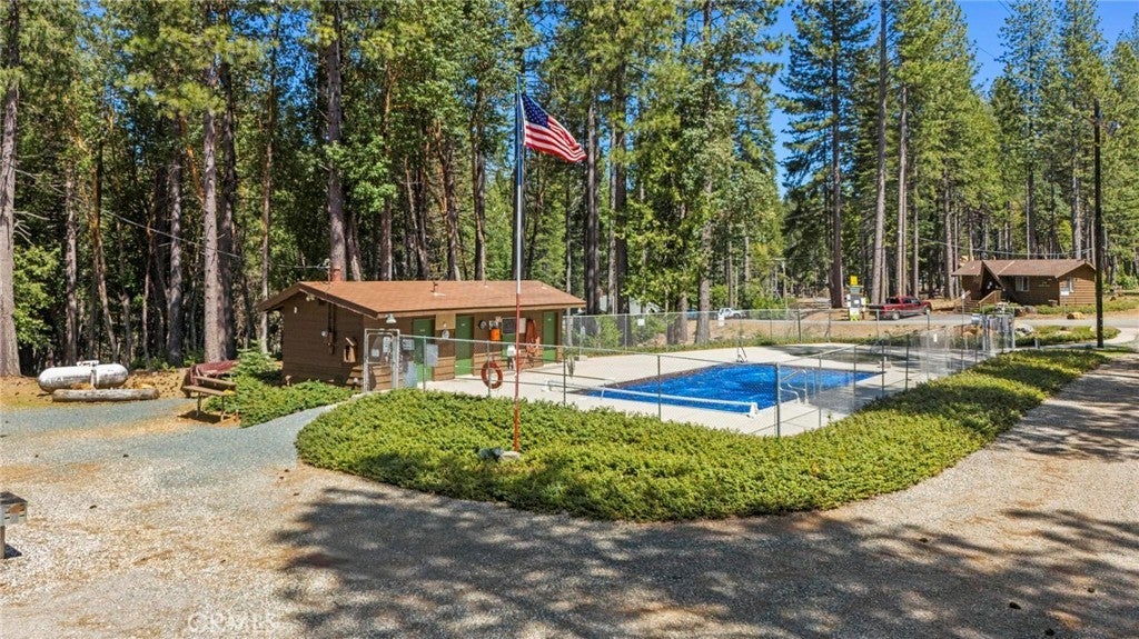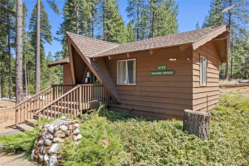 Tucked away in the peaceful, pine-studded community of Merry Mountain Village, this charming 3-bedroom, 2-bathroom cabin is the perfect mountain getaway for nature lovers and outdoor enthusiasts alike. With a thoughtful split floor plan, the spacious primary suite is set apart from the two additional bedrooms, offering privacy and comfort for all. Step into the cozy living room and warm up by the wood-burning fireplace during snowy winter days, or soak in the views through large picture windows and sliding glass doors that bring the outdoors in. Enjoy seamless access to the full-length back deck from the living room and two bedrooms—perfect for morning coffee, stargazing, or listening to the seasonal stream trickling through your own slice of forested paradise. The kitchen is ready for you with newer (2022) appliances included, and the laundry area is conveniently located in the basement. A detached 2-car garage offers plenty of room for vehicles, gear, and all your mountain toys. This home sits privately below the road, providing a peaceful setting surrounded by trees and nature. Plus, it includes a second parcel of vacant land—giving you 1.05 acres to utilize/explore. HOA amenities include water and access to a refreshing community pool in the warmer months, and you're just a short drive to Sly Creek Reservoir for swimming, boating, and fishing! Whether you’re looking for a vacation home, a full-time escape, or a smart investment, this mountain cabin checks all the boxes. Come experience the serenity and safety of owning in a Firewise-designated mountain community—your private retreat in the forest is waiting!