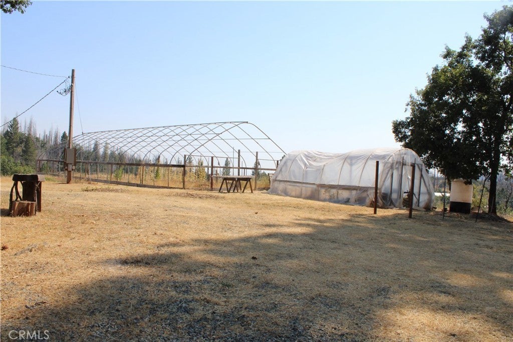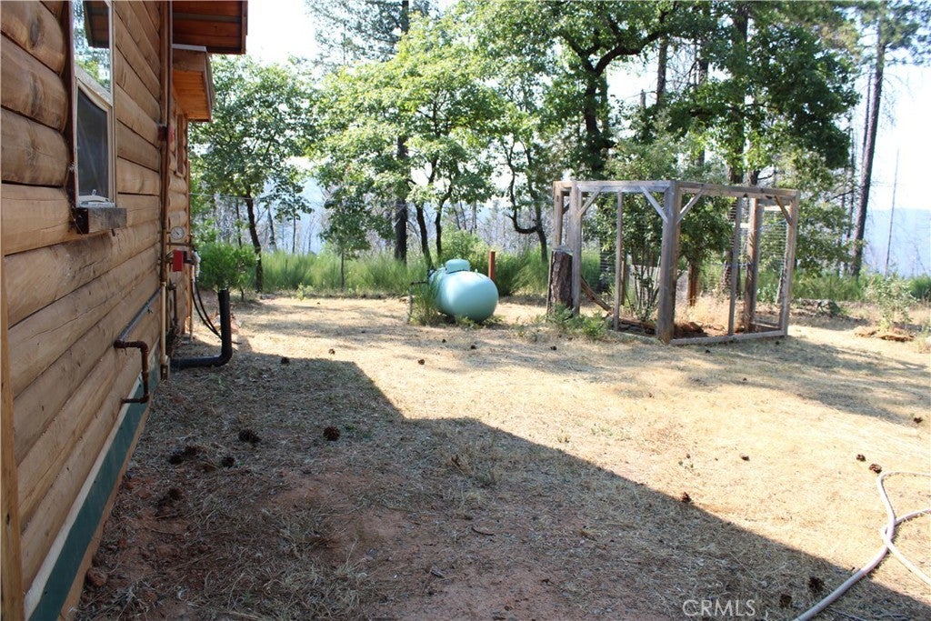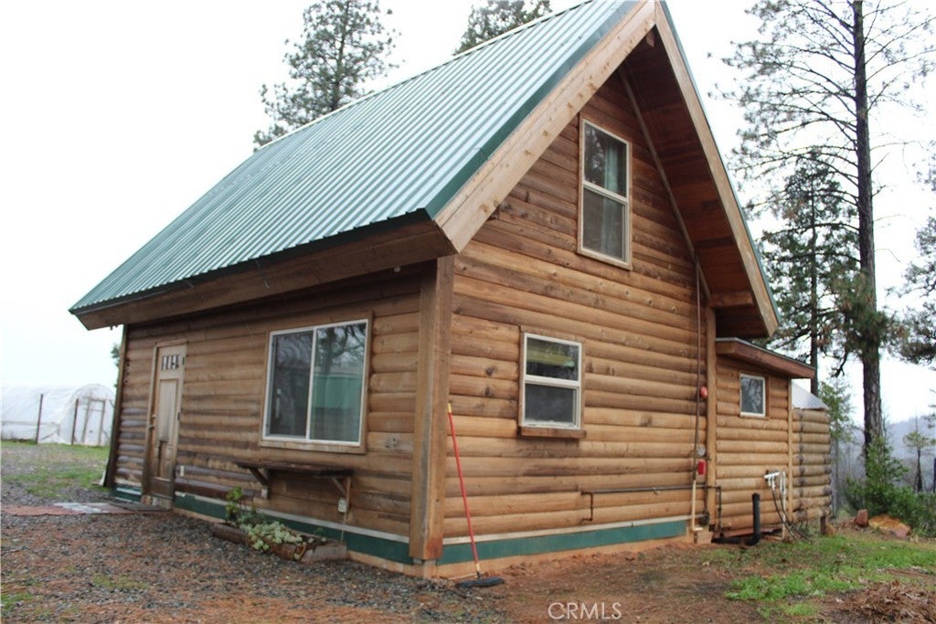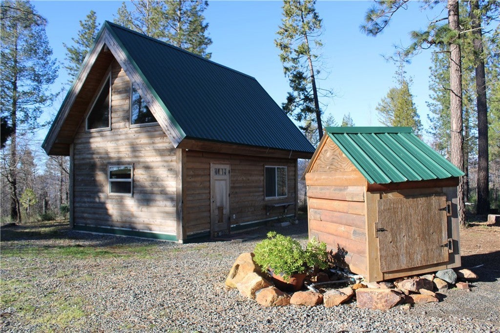 Butte County ~ Beautiful Berry Creek~ END OF THE ROAD PRIVACY!!! OWNER WILL FINANCE! Only a very small portion of the parcel affected by the North Complex Fire. This Unique Log home sets in a very serene setting among the tall Pines, Oaks and Madrones. This property is absolutely a GARDENER'S DREAM. Lots of Sunshine. Large 100' greenhouse with all raised beds. And a smaller greenhouse also. Many, Many garden beds to grow whatever your pleasure. Water, Power and Conventional Septic. Propane is ran all over these garden areas. Automatic watering systems ran here and there. Full 360 degree view. Coastal Mountains to the Buttes to Bald Rock. You can see it all from this nicely tucked away home. Knotty Pine interior. Just 384 sq. ft, Loft Bedroom, Nice Walk In, Tile shower, Claw and Ball Bathtub. Kitchen has all of the needed amenities. Great breeze coming in the kitchen windows. Nice 6 burner Stainless Steel Range, Stainless Double Door Refrigerator. Interior has Colored Concrete Flooring. A fire suppression system has been installed here. Uniquely Built home. On Demand Water Heater, Propane. Large Windows to let in plenty of light. All windows are dual paned. Stand at your stove, Cook Dinner and Enjoy the views here. There is an outside shower and a flush toilet outside as well. This property has a 40 ft. Container for storage/Garage with a man door for easy access. Plenty of building materials to go with it. The container is split into two rooms. A Full outside Kitchen area. Hand wash sink. Alot of useable property on this parcel, Park like setting which leads you to the orchard. 250 Gal. Propane tank, ( leased). 2- 2500 gal. Water Storage tanks. 5000 gallons of water on hand anytime. Beautiful fruit trees~ Plumb, Peach, Cherry, 2 green Apple and a pomegranate. And a well-established Grape Vine. Good well with a pressure system for filling the water tanks. With all of this~ It's all here for your little piece of tucked away privacy. Gravel driveway and easy easy access from Bald Rock Rd. Just 2/10 of a mile off of the pavement. Seller is very very motivated to sell. TAKE A LOOK!!!! Buyer to investigate all aspects of property to buyers satisfaction. Thank You!!!