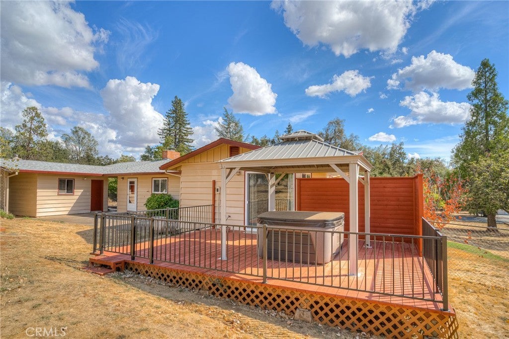Charming Home on Nearly an Acre with Upgraded Features in an Ideal Location..... Nestled on just under an acre, this well-maintained 3-bedroom, 1.75-bath home offers space, comfort, and versatility. A circular driveway welcomes you to the property, which includes a large carport with an attached shop/storage building, additional parking, and gated access to the expansive fenced backyard. Step inside to find a beautifully remodeled kitchen featuring a new cooktop, oven and a microwave. There is ample counter space, generous storage, and a breakfast bar—perfect for casual dining and entertaining. Both bathrooms have been recently updated with modern finishes, and the convenient laundry area includes a sink, washer, and dryer. The spacious living room boasts a large picture window that fills the space with natural light, and a cozy wood-burning fireplace for those cooler evenings. The primary bedroom includes two separate closets and direct access to the backyard, just steps from the gazebo and newer spa. Outside, enjoy a small shed for extra storage, and endless possibilities in the fenced backyard—garden, play, or entertain. Located just minutes from Lake Oroville, enjoy year-round fishing, boating, biking, and hiking. Plus, you're only a few miles from shopping, medical offices, and Oroville Hospital. Don’t miss your chance to own this lovely home and property in a prime location—schedule your private showing today.