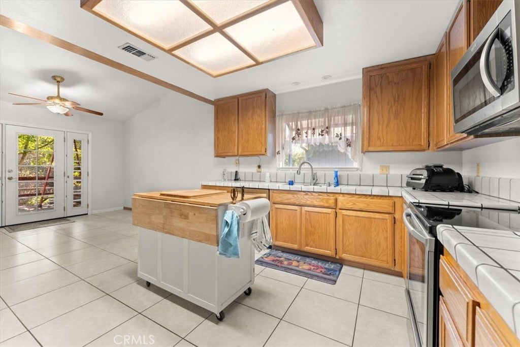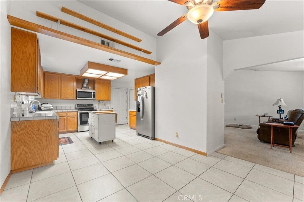 Ceiling Fan(s), Cathedral Ceiling(s), Separate/Formal Dining Room, Laminate Counters, Pantry, Tile Counters, All Bedrooms Down, Main Level Primary, Workshop