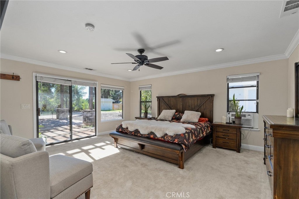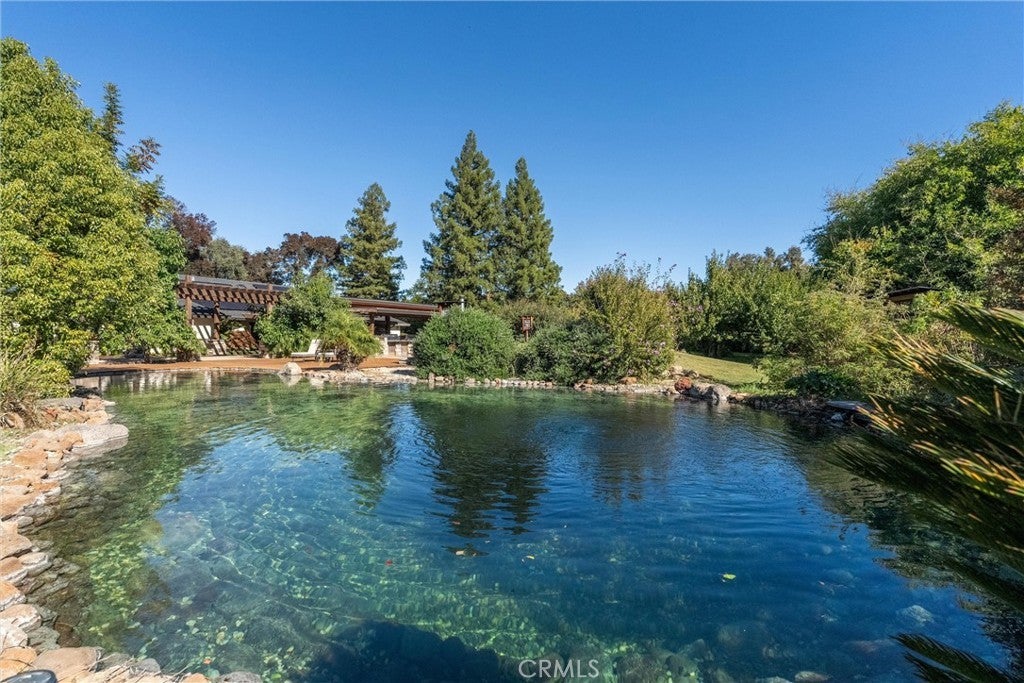 Every day feels like a getaway in this stunning custom home. A rare blend of luxury, comfort, and entertainment all in one. With 4 spacious bedrooms, 2.5 bathrooms, and over 3,100 sq. ft. of beautifully designed living space, this property is truly one of a kind. Step inside to a grand, open kitchen featuring upgraded countertops, newer stainless-steel appliances, and abundant custom cabinetry. The oversized island flows seamlessly into the living area, perfect for family gatherings or hosting friends. The living room impresses with its cozy pellet stove and a fully equipped custom bar, complete with granite countertops, custom lighting, a full-size refrigerator, a wine fridge, a sink, and six taps. An entertainer’s dream! Each bedroom offers generous space and comfort, while the primary suite feels like a five-star retreat. Enjoy a walk-in closet, dual vanities, a private wet bar with a wine fridge, an oversized walk-in shower with multiple showerheads (including a rainfall showerhead), and a two-person jetted tub, ideal for unwinding at the end of the day. Step outside and discover an outdoor oasis designed for year-round enjoyment. The tri-level patio boasts a complete outdoor kitchen, multiple seating areas, a large bar, ceiling fans, a mounted TV, a built-in sink, BBQs, a smoker, and ample under-counter storage. At the center is a resort-style swimming pond with a beach entry, natural granite slabs, and a stunning waterfall feature, surrounded by mature landscaping and fruit trees that create your own private paradise. Additional features include a 30' x 40' powered shop with lighting, built-in air lines, and plenty of space for projects or hobbies. The backyard also offers an amphitheater-style lawn with a full outdoor theater system, complete with a high-definition projector and surround sound, perfect for movie nights under the stars. For those who love sustainable living, the property includes raised garden beds, a large chicken coop, and an impressive collection of fruit trees—peach, apricot, cherry, plum, pluot, orange, grapefruit, lemon, lime, fig, and pomegranate. Located just outside Chico city limits on 1.5 private acres, this home includes its own well, leased propane tank, and a semi-owned solar system. Welcome home to your very own private resort!