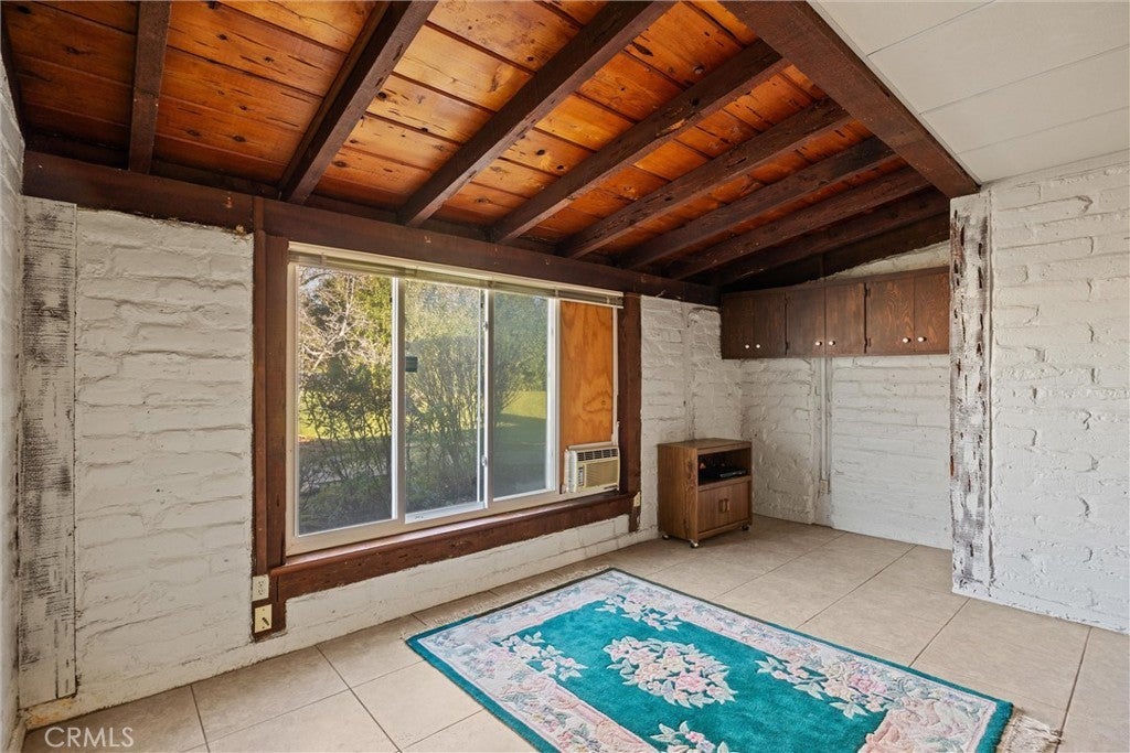 Mid-Century Modern adobe brick home built in 1951 with exposed beam wood ceilings and classic charm. 3 bedrooms, 1 bath, inside laundry with additional storage/pantry area, 1385 sq. ft. on a generously sized .34 acre lot. The front yard has mature landscaping and a welcoming covered front porch that's cool and relaxing any time of the day. The home features a large enclosed sunroom/game room that provides additional flexible space, abundant natural light and oversees the expansive backyard ready for your vision that might include a garden or outdoor living. This property has areas of deferred maintenance and is being offered "as is" and as a fixer. Endless potential awaits.