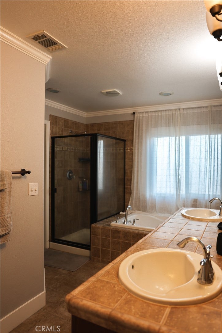 Breakfast Area, Ceiling Fan(s), Crown Molding, Eat-in Kitchen, Granite Counters, Stone Counters, Tile Counters, Bedroom on Main Level, Primary Suite, Walk-In Closet(s)
