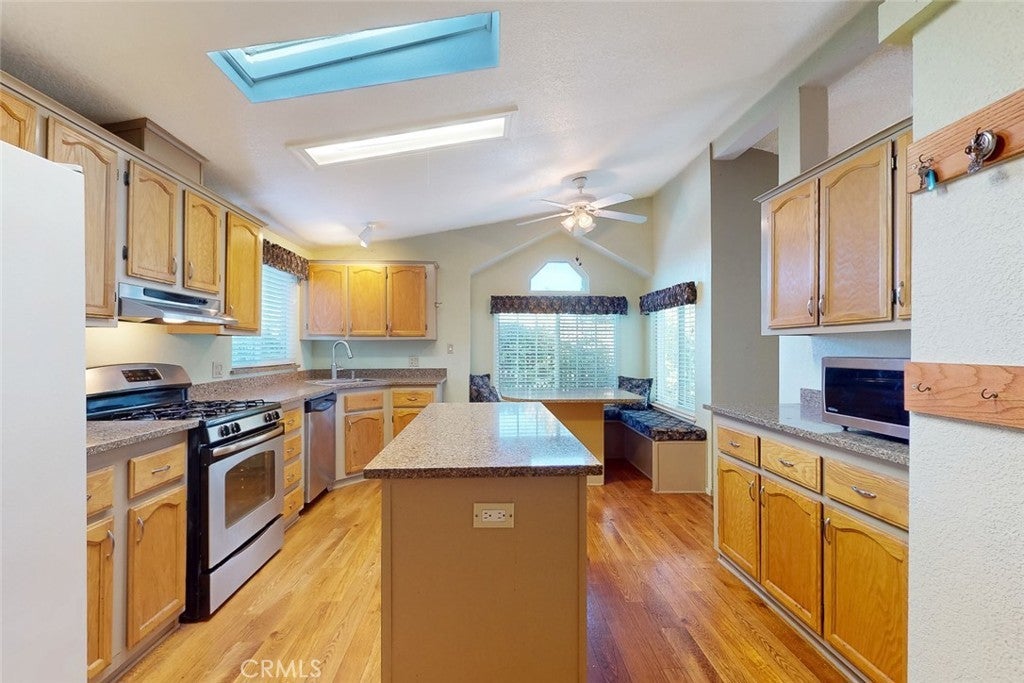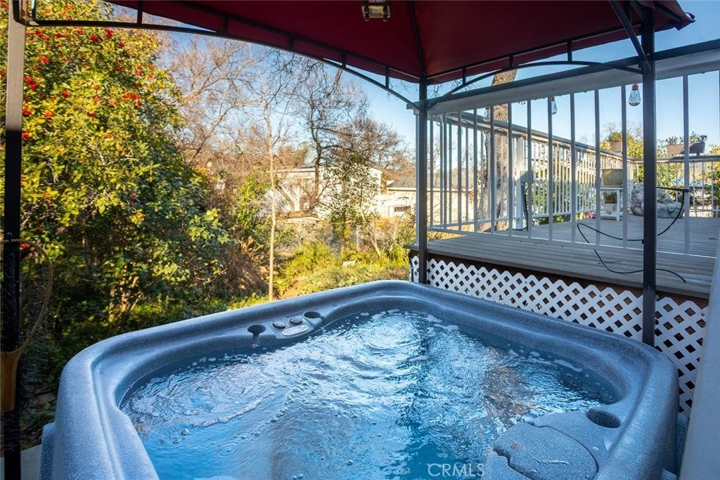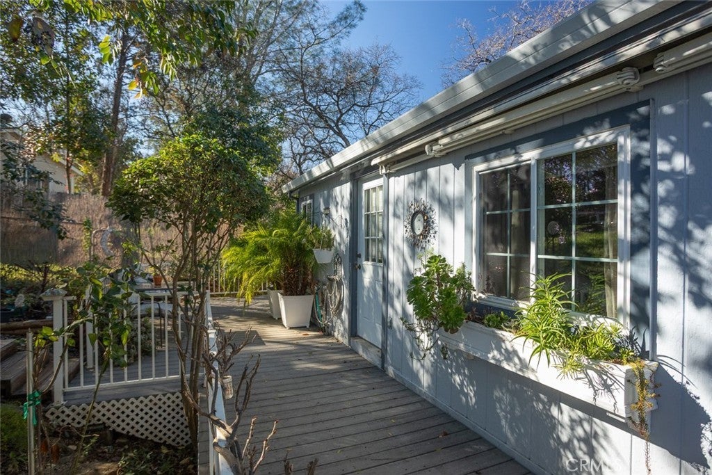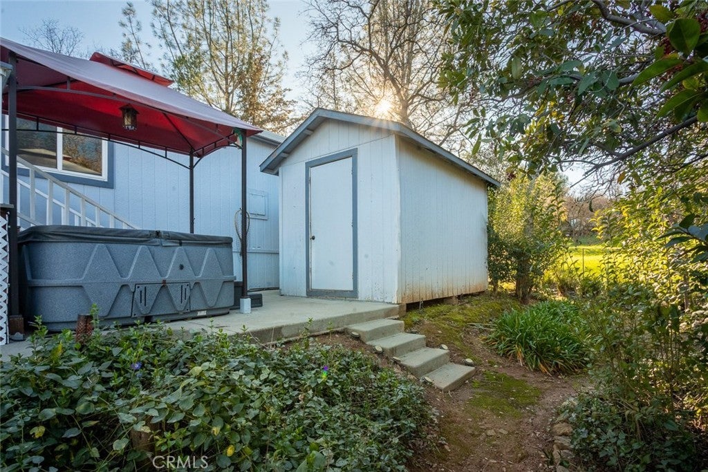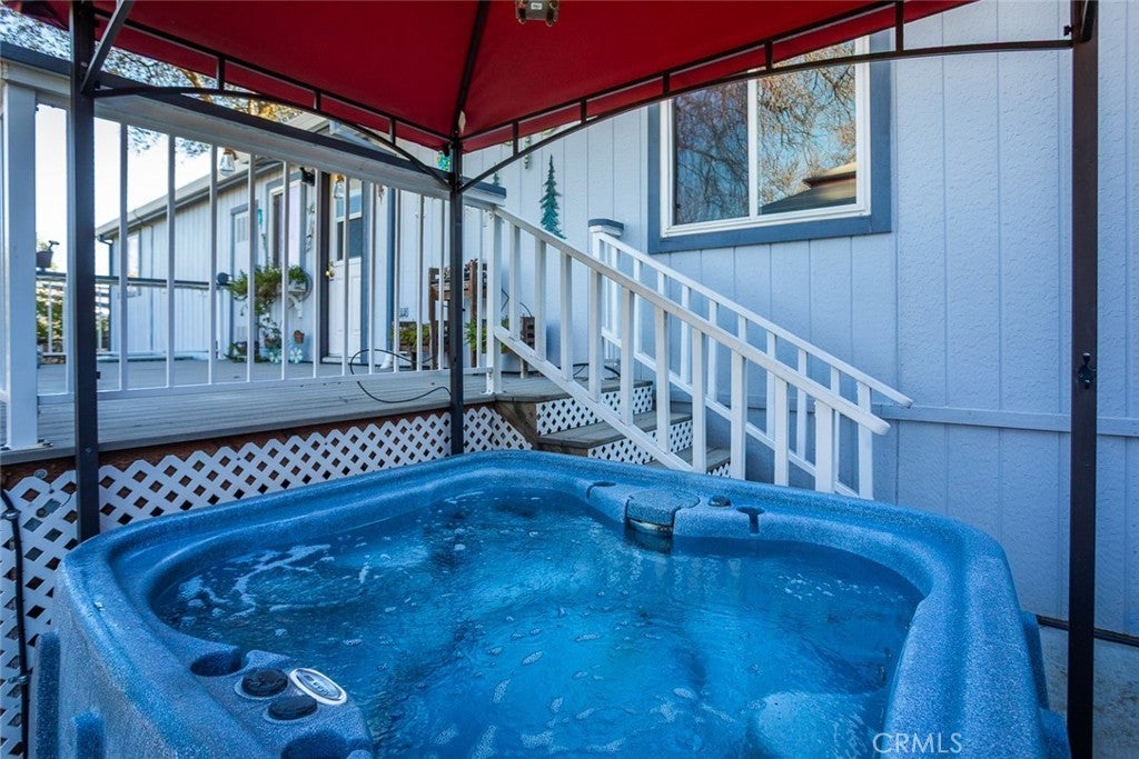 Welcome to this well maintained manufactured home, offering over 1600 sq. ft. of comfortable living space. This 2-bedroom home includes a versatile bonus room, perfect for that home office, guest room, gym or craft room. The spacious kitchen features quartz countertops, abundant cabinets, a pantry, and an island making it ideal for cooking and entertaining. Plenty of seating with an eat-in breakfast nook and a formal dining room. Natural light pours throughout the home, enhancing the open, airy feel, while the large living room with a cozy gas fireplace creates the perfect gathering spot. The primary suite is large with lots of natural light an a door to the yard, complete with an attached bathroom featuring dual sinks and a relaxing soaking tub. The true heart of this home is when you step outside and enjoy an exceptional outdoor space: The backyard feels like a private oasis with an adorable creek, charming bridge, and walking paths. A front and back deck, and a hot tub complete the space—perfect for relaxing or entertaining year-round. Fully fenced and gated yard with an electric gate, a large driveway, a carport. While there is no garage, it does have two storage sheds for all your gardening or tinkering needs. Newer HVAC system, newer plumbing under home, newer water heater. This one will go fast.