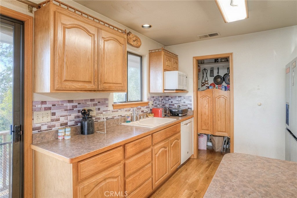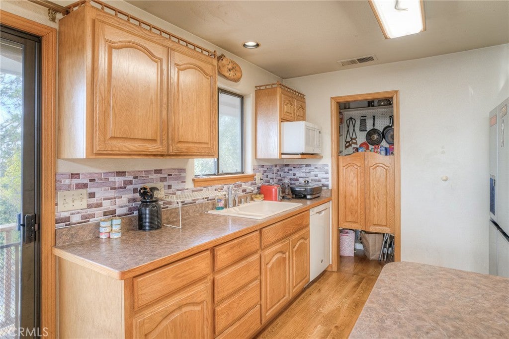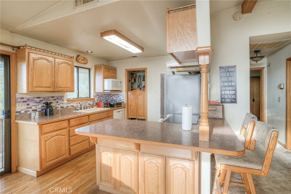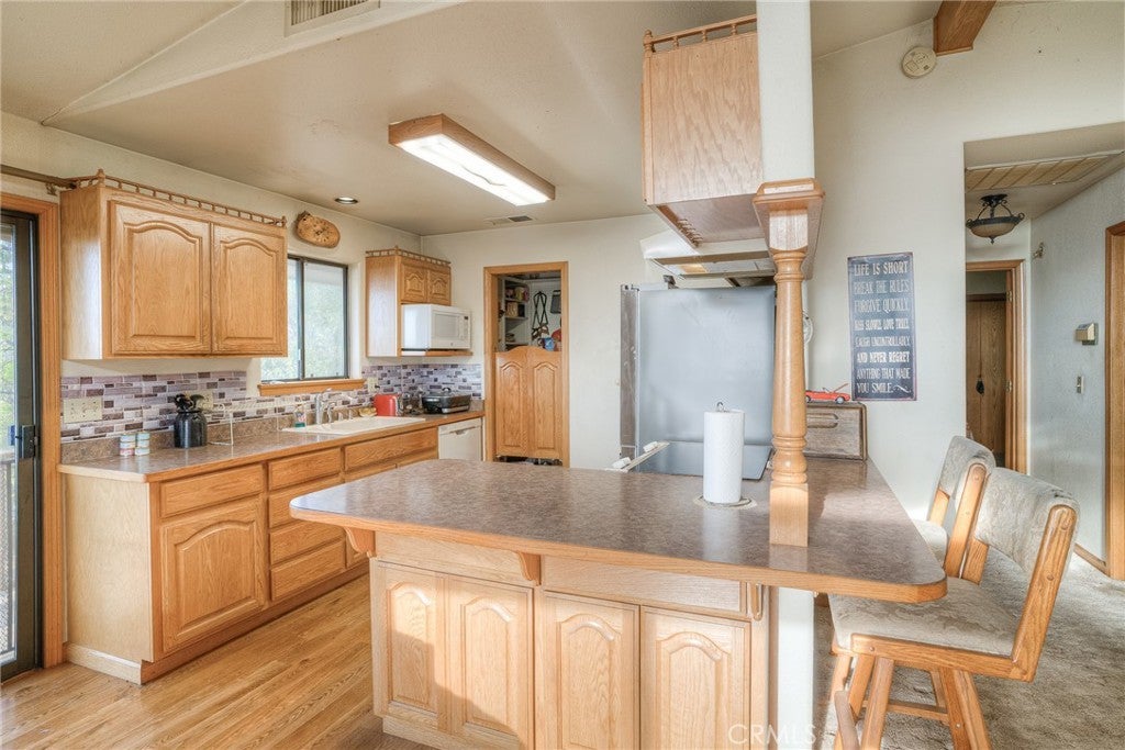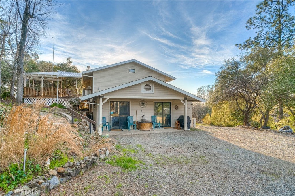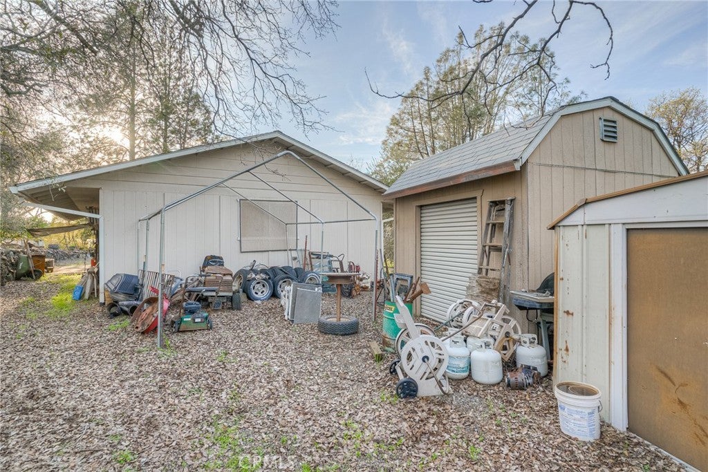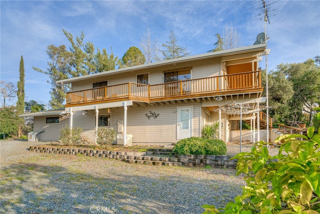 Beautiful 4 acre property with many Olive trees. In the East Foothills. Not far from the Lake. The two story home was built in 1981. But burnt and rebuilt in 1997. Entering from the 2nd level there is a large covered deck which wraps around the house to the back. Views of the valley from the Big O on Table Mountain around to the Marysville lights. Through the front door you enter the living room dining area and kitchen. There is vaulted ceiling two large windows and ceiling fan. Living room has Fire place. Kitchen has a breakfast bar and pantry. Primary bedroom is very large with two closets. Downstairs is a family room with a pellet stove. 2 bedrooms and a Utility room that could be a 4th bedroom. 2 slider glass doors. A lot of storage inside and out. Outside a RV carport with attached single car garage. With plenty of parking. Large shop. 5 sheds. The house sits back on the property with the front level land. There alot to see. Come take a look.