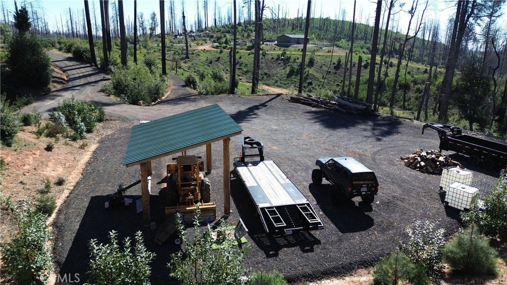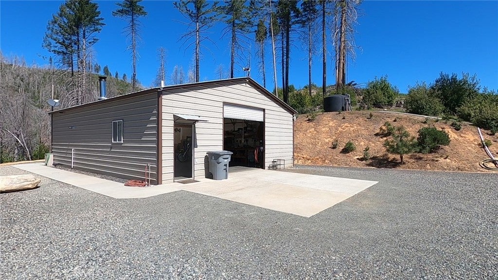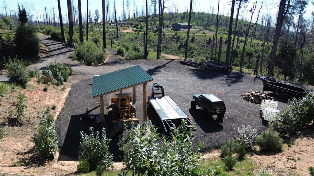 Here's a rare find in the Berry Creek foothills — 10 private acres with the kind of infrastructure that opens doors for the right buyer. Whether you're looking for a live-work setup, an income-producing property, or a base of operations for your own business, this one is worth a serious look. At the heart of the property sits a fully permitted shop with 100-amp electric, 220V, a 50-amp welder plug, 10x10 roll-up door, workbench, LED lighting, and skylight panels. Surrounding it is a large open staging area and a network of well-maintained graveled roads that wind throughout the acreage — the kind of setup that local contractors, heavy equipment operators, and trades workers are always looking for and rarely find. With ongoing forestry, fire recovery, and construction activity throughout Butte County, the demand for quality staging and equipment storage space in this corridor is real. Rent the yard, rent the shop, or use it all yourself. A lower pad equipped with RV power hook-ups adds even more flexibility — ideal for additional living space, or accommodating crew and guests. The 725 sq ft living quarters offer a comfortable 2 bedroom, 1 bath home base with a fully equipped kitchen, wood stove, recessed lighting, walk-in shower with porcelain-tile countertops, and full laundry hookups. A brick patio off the front door gives you a spot to decompress at the end of the day with hill views and total quiet. Gated entry, a natural spring, and a year-round creek round out a property that truly has to be seen to be appreciated. Adding to the appeal, Lake Oroville is just 10 minutes away, and expansive National Forest land sits just up the road — offering endless opportunities for boating, fishing, hiking, riding, and year-round outdoor recreation right at your fingertips. Whether you're looking for a private retreat with serious infrastructure, an income-producing property, or both — this one delivers. Cash or private financing only. Owner may carry with 40% down.