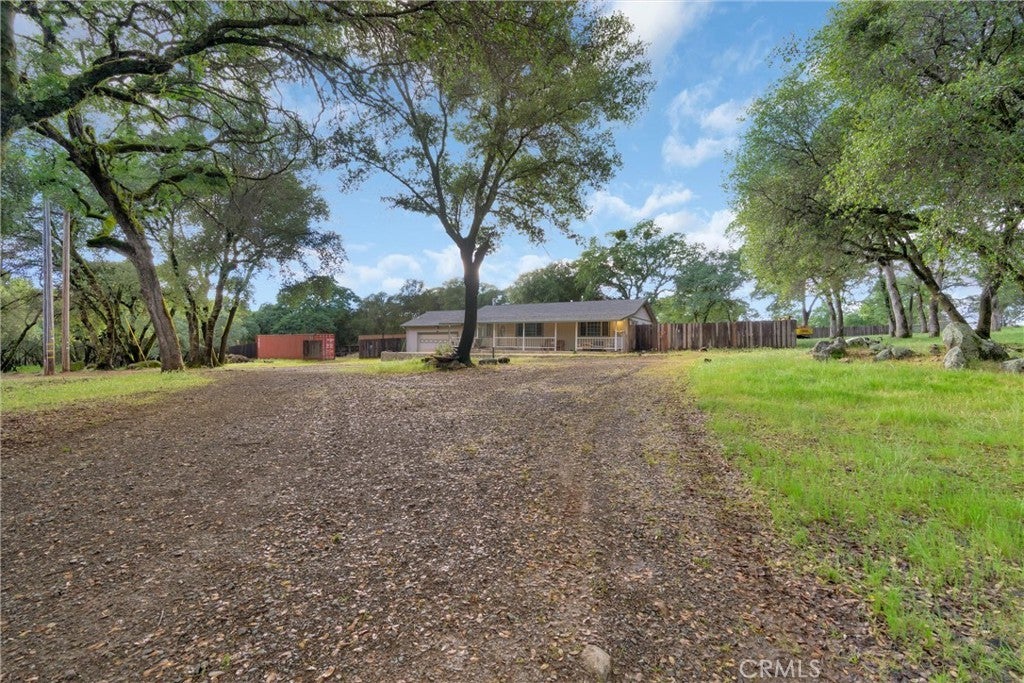 Tucked in the foothills of Bangor, this 3-bedroom, 2-bath home sits on 5 fully fenced acres with mature oak trees and a small seasonal pond. This property is tucked behind two private gates and has a large cross fence for added privacy in the back yard. Large, covered front and back patios invite you to relax outside and enjoy the peace and quiet of this beautifully maintained foothill property. Inside the house, an open living room with a wood burning stove, connects you to the kitchen and dining area. All three bedrooms are good sized, but the large, primary bathroom has a walk-in closet, an attached, updated, bathroom and double doors that allow access to the back patio. There is also a large, attached garage with a laundry area and plenty of shelving for storage. Schedule a tour to come see this great home and property for yourself!