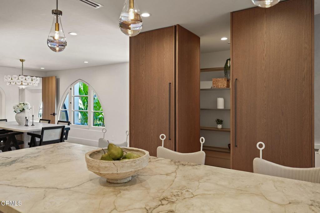 Beamed Ceilings, Breakfast Bar, Built-in Features, Balcony, Breakfast Area, Separate/Formal Dining Room, Eat-in Kitchen, High Ceilings, Pantry, Stone Counters, Recessed Lighting, Storage, Sunken Living Room, Dressing Area, Entrance Foyer, Utility Room, Walk-In Pantry, Walk-In Closet(s)