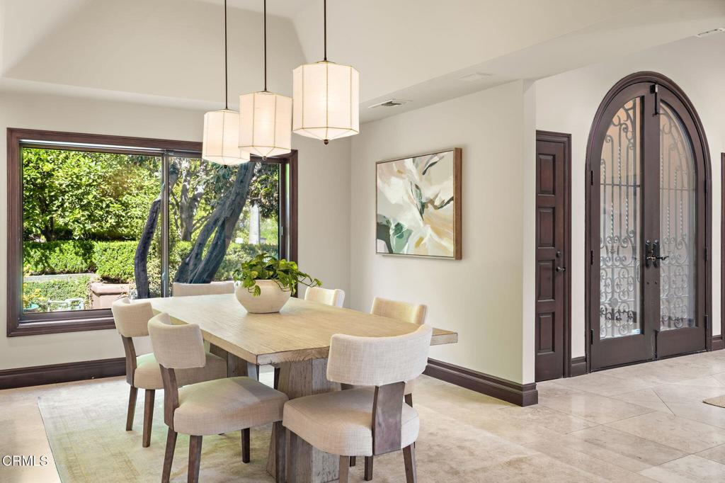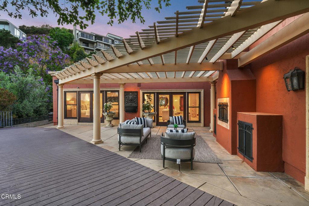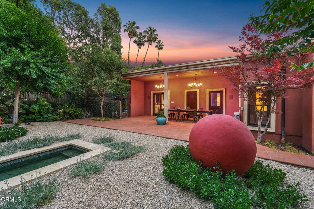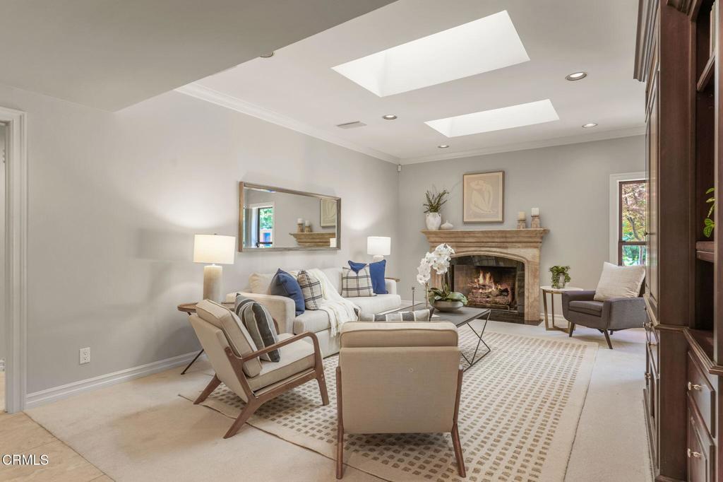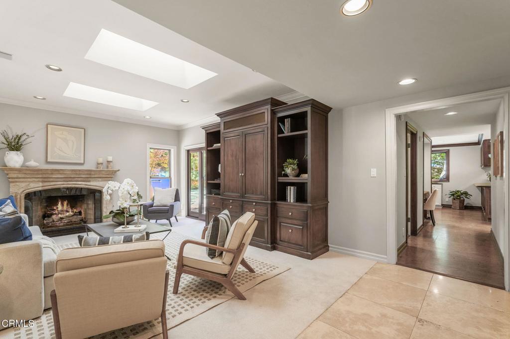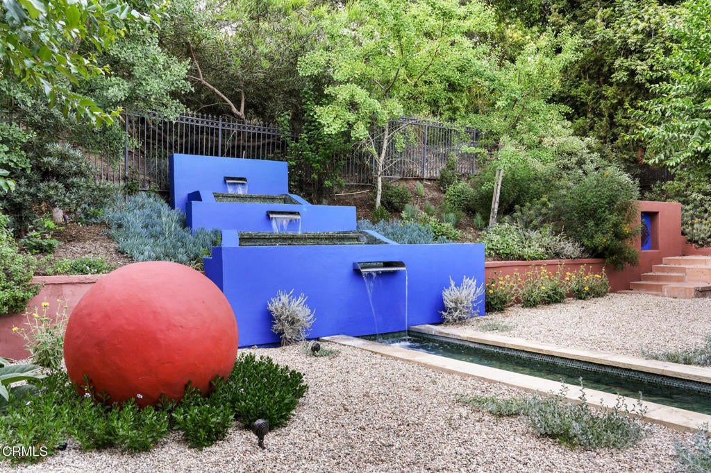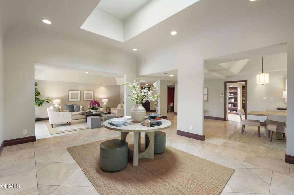 With its stunning architecture, coveted address in Upper Linda Vista, and beautifully-designed outdoor spaces, 1897 Braemar Rd is a secluded Pasadena treasure for those with discerning taste. Designed by esteemed Bel-Air architect Aleck Dugally, whose clients included Sylvester Stallone, Denzel Washington, and Sumner Redstone, this Contemporary Tuscan Villa stands apart with inspired details and a deeply peaceful setting. A grand foyer with a soaring ceiling offers an exquisite welcome. Sunlight pours in from the massive skylight overhead, illuminating the sumptuous travertine floors and offering a prelude to the elegance that awaits within. You'll instantly appreciate how Dugally's semi-open concept layout strikes the perfect balance between spaciousness and separation. The foyer adjoins both the dining room on the right and the sunken living room, which rests straight ahead. The latter offers the perfect setting for an intimate concerto or book reading. A chef-worthy kitchen features a cork floor, top-tier German appliances, and gorgeous wood cabinets. Wrapped in windows and boasting a radiant skylight, this dream kitchen overlooks the breakfast area-your sunlit spot for mindful mornings. Casual relaxation is always on offer in the inviting family room, which includes a large fireplace that creates the perfect ambiance during the winter months. Two bedrooms share a dual-vanity hallway bathroom, while the expansive primary suite is privately tucked on its own wing. This serene retreat is complete with a luxurious spa bath, walk-in closet, and French doors opening to the patio. Step out to your secluded outdoor haven shaded by a Walpole pergola and offering stunning views of the lush greenery in the canyon below. As beautiful as the home's interiors are, its outdoor spaces are equally impressive with expansive patios and decks wrapping all around. The main backyard space showcases modern art in a gorgeous natural setting, with striking abstract sculptures and a statement water feature set amidst lush plantlife. Additional outdoor amenities include a fireplace and numerous lounging areas. The attached two-car garage includes a workshop and an 800-bottle wine cellar to house your collection. A one-of-a-kind residence that imbues your days with beauty and peacefulness, 1897 Braemar is not to be missed.
