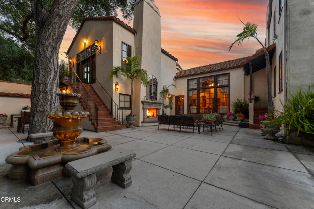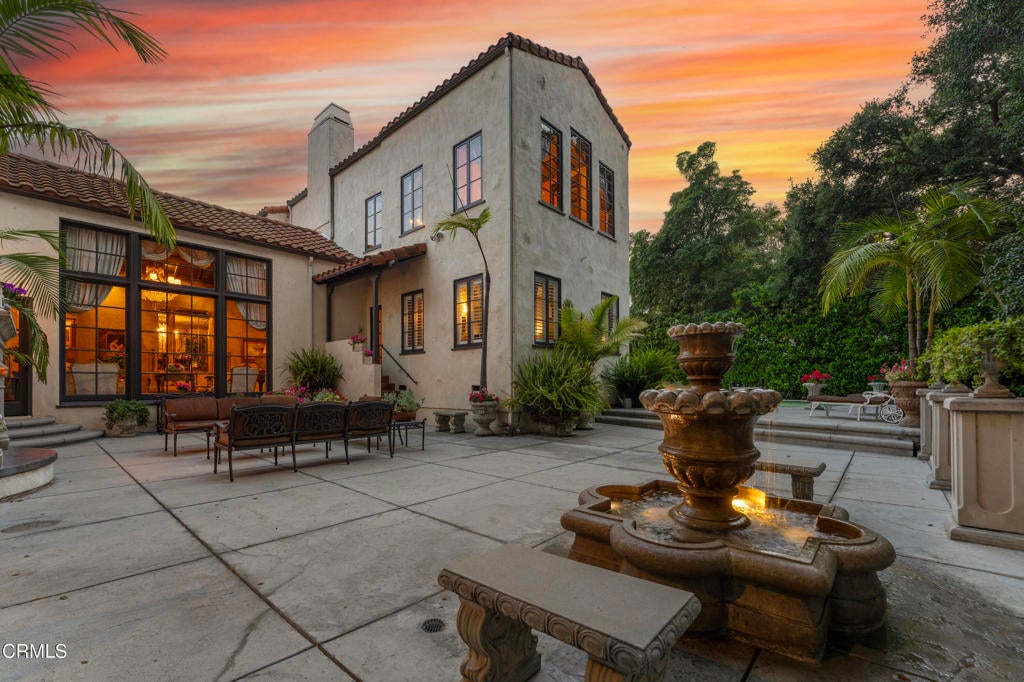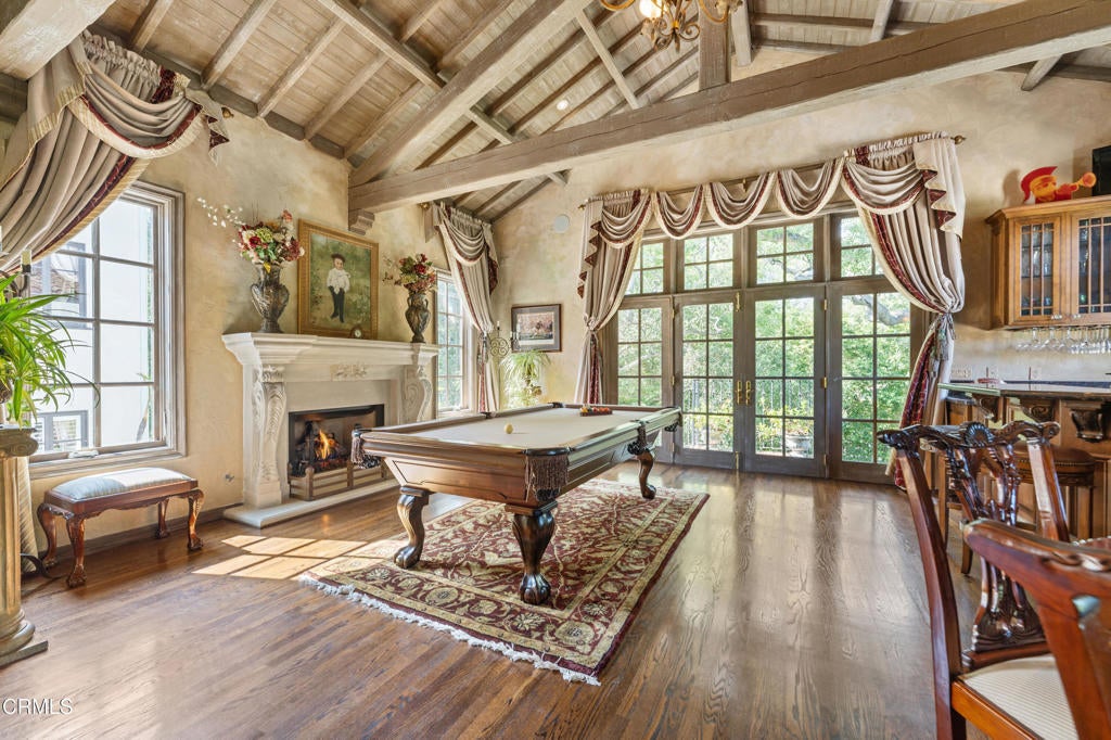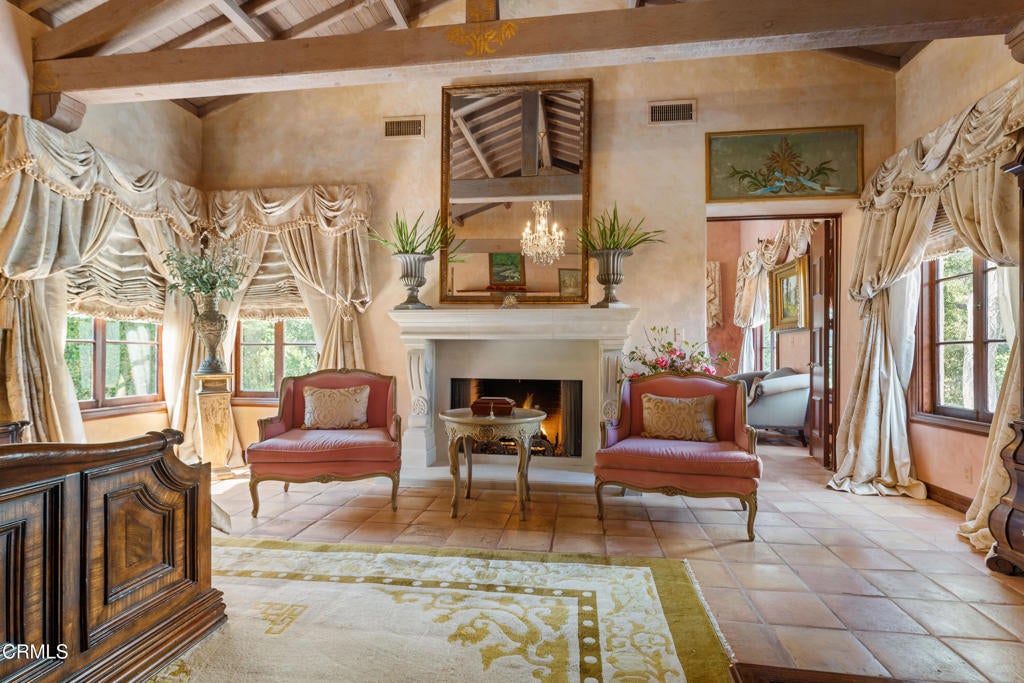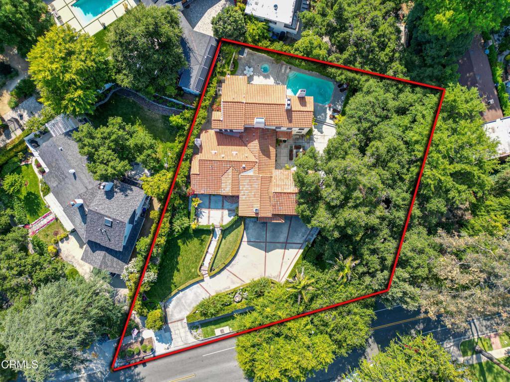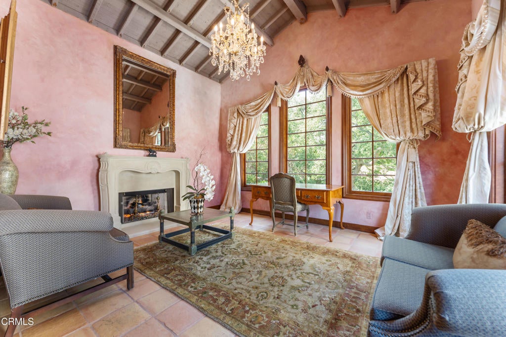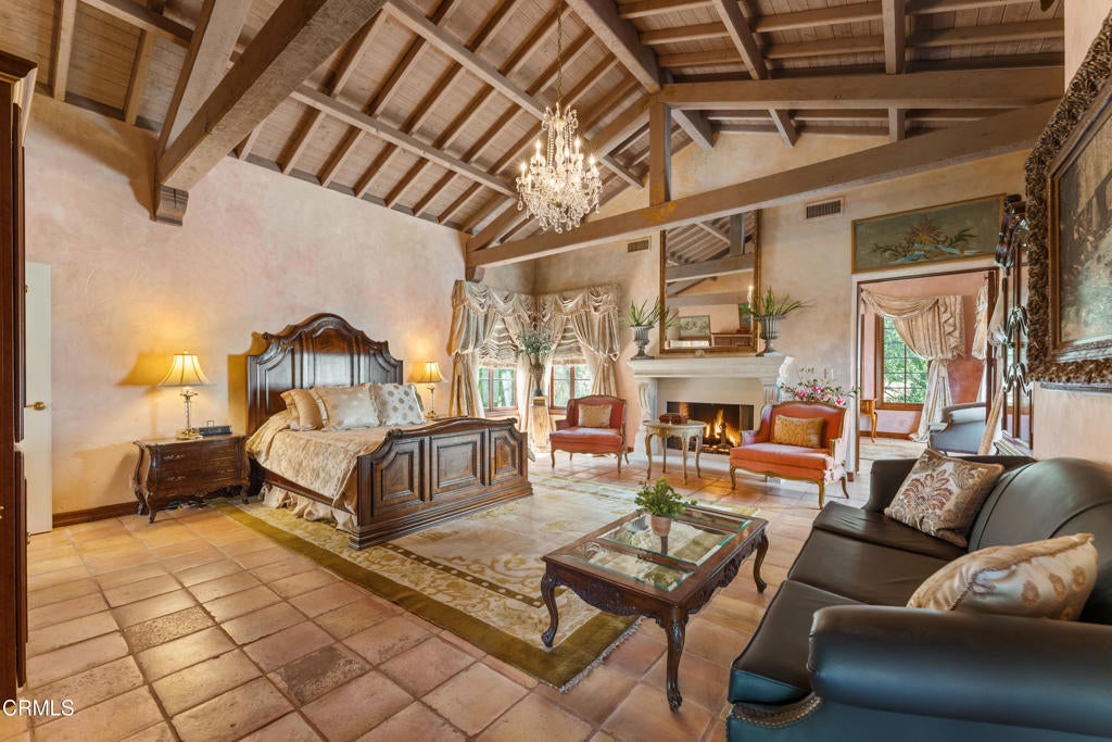Welcome to the enchanting Orrin White House--an extraordinary 1924 estate originally designed by celebrated architect Garrett Van Pelt, Jr., for acclaimed Plein-Air painter Orrin White and his family. One of the first homes in the area, this rare architectural gem was thoughtfully sited for its breathtaking views of Mt. Wilson and the San Gabriel Mountains, which inspired White's artistry. The frontage is unusually generous at 160 feet. Tucked behind tall hedges and a gated entrance on over half an acre of lush, private grounds, this home is a sanctuary of peace and refinement. The current owners, only the second caretakers of the property in its century-long history, have masterfully restored and updated the residence with a reverence for its original character. Enter the grand formal entry past the 9-foot custom alder front door where 12-foot ceilings, handcrafted plaster cornices, and a Swarovski bronze and crystal chandelier set a tone of quiet elegance. The formal living room is breathtaking--anchored by 18-foot-fitted-old-growth redwood beams, a 2-story window framing majestic oaks, a wood-burning fireplace, and original stamped-concrete floors, with a choir loft above. The gracious formal dining room accommodates 14 guests. It exudes romance with a fireplace, custom wrought iron pocket gates, and French doors that open to the gardens. The chef's kitchen, outfitted with vaulted, beamed ceilings, French doors to a front courtyard and side patio, and top-tier appliances including a Viking 6-burner stove and Sub-Zero refrigerator. A built-in bar with hammered copper sink and beverage fridge completes the space. Up a half-flight of stairs lies an entertaining level with a family room and an impressive game room featuring a vaulted ceiling, wet bar, and French doors opening to an exterior stairway. With 5 bedrooms and 5.5 bathrooms, this home offers generous space. The luxurious primary suite is a true retreat, with 16-foot ceilings, dual fireplaces, and a sitting room. Modern upgrades include updated electrical and plumbing systems, foundation bolting, 3-zone HVAC, a music system, and partial dual-pane windows. Outside, the grounds evoke a European resort experience. Relax beneath a canopy of heritage oak trees, take a dip in the sparkling pool or spa, enjoy the built-in BBQ, or gather around the large outdoor fireplace. There are 7 fireplaces throughout. A rare fusion of historic artistry and modern luxury, this is more than a home--it's a living legacy.
