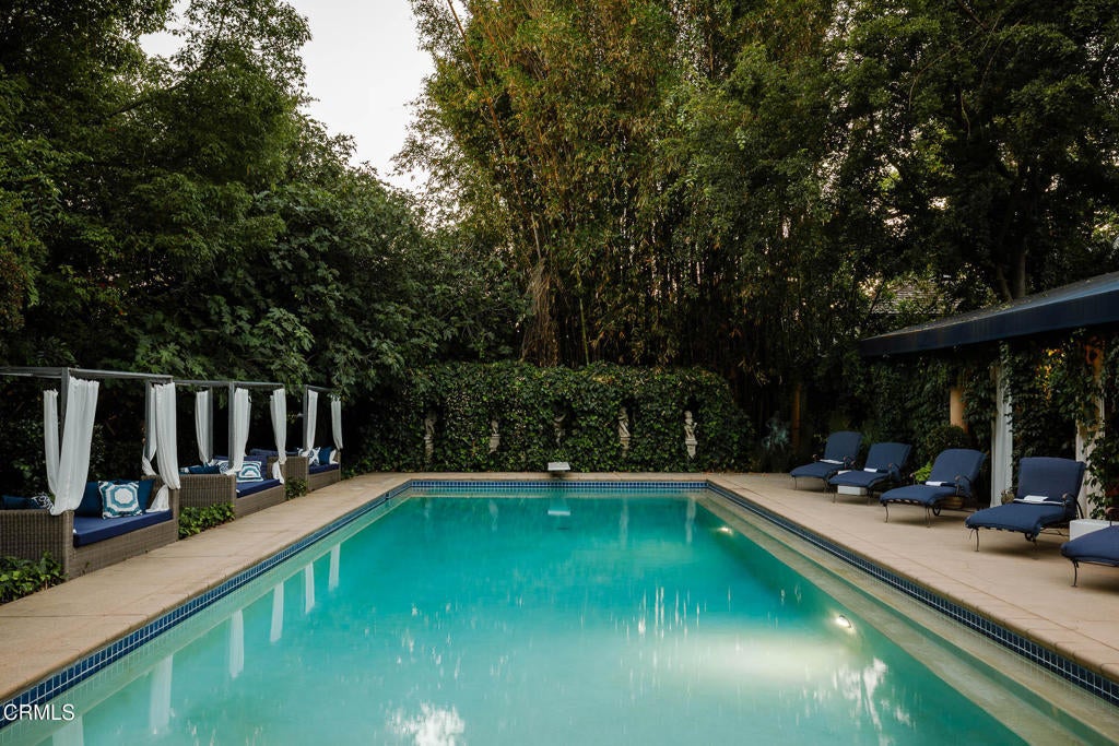 Secluded behind the original estate walls, this classically inspired Tuscan villa sited on a flat one acre parcel in the coveted South Arroyo neighborhood of Pasadena and South Pasadena. Designed by noted architect Reginald Johnson - featuring the principal residence, sequestered guest house, verdant grounds, grand pool and captivating gardens. A mix of the structured and elegant Italian Renaissance Revival, with a more approachable, relaxed living environment that embraces the necessities and desires of today. Owned by Pasadena luminaries for nearly a century, and now the home of an acclaimed fashion designer and his wife since 1998 - the 5-bedroom, 5-bathroom primary residence features voluminous space and height throughout with equally scaled original Palladian doors and windows which provide an abundance of light and air. Honed marble, rich plaster, period woods and premium paint finishes provide the material palette. The entry gallery with classical columns acts as an initial gathering space for the grand public viewing and entertaining areas: formal living room and adjoining library - both with fireplaces, powder room, and a formal dining room. All have direct access to outdoor patios, gardens and the expansive lawn beyond. Chef's kitchen and great room with casual seating and an adjacent butler's pantry. Catering prep, separate laundry room, two bedrooms and bathroom complete the lower level. The second level is divided into two distinct zones accessed from the central landing. Luxurious primary suite - with separate bedroom, dressing and sun rooms and walk-through closet and bath. Opposite is an additional bedroom suite with bath ensuite and adjoining sitting room, as well as an executive bedroom with bathroom and closet ensuite. Private one bedroom guest house with living room anchored by a fireplace, kitchen, bedroom and bath - all surrounded by its own hedged gardens. Swimmers pool, spacious pavilion, spa retreat, hidden rose garden and dining area with fireplace and grill. Lushly landscaped with sweeping lawns, mature specimen trees, secluded refuges and abundant water features. Motor court and carport for multiple vehicles. Viewing garden. An extremely private and exclusive offering.