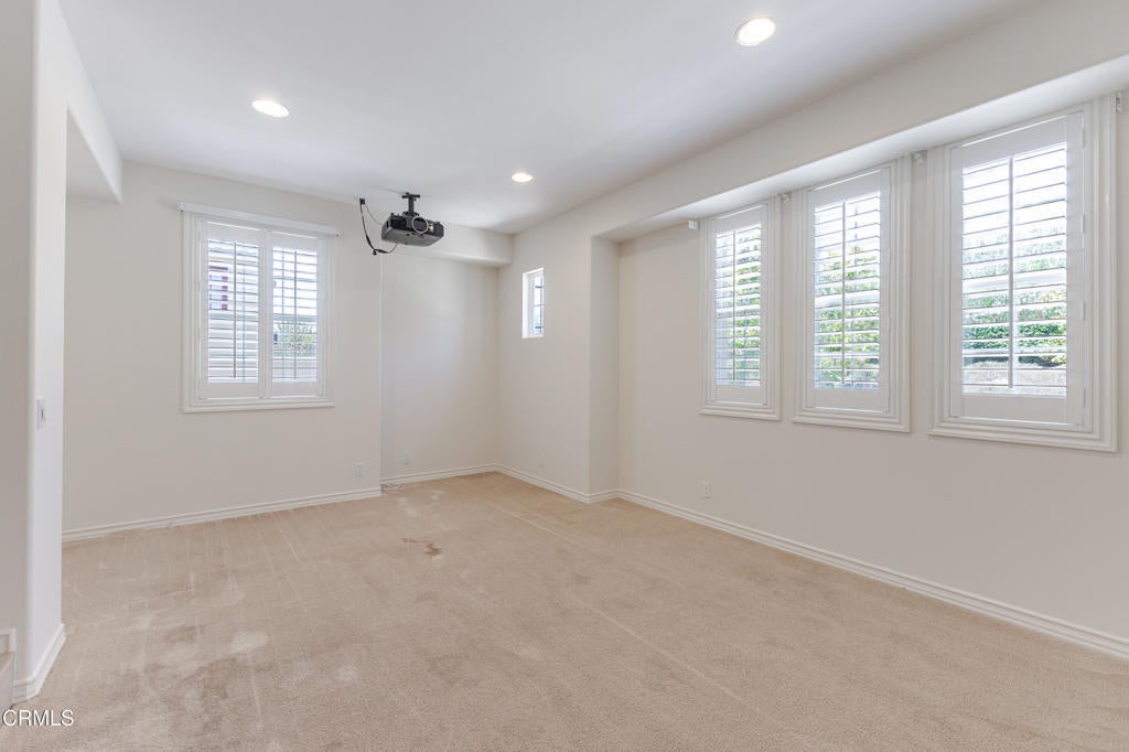 Set against the foothills of Altadena, this Tuscan inspired home has it all! Located in the gated community of La Vina, this property exudes old world charm starting at the front courtyard with its pebbled mosaic design and flows into the formal entry hall. The formal living room is anchored by a fireplace, has soaring ceilings, large windows and french doors that open to the courtyard. The spacious formal dining room is nearby and offers views overlooking the backyard. An open concept kitchen with a large island, walk-in pantry and breakfast area is adjacent to the family room. The family room shares a pass through fireplace with the breakfast area and opens up the backyard, ideal for entertaining. A flex room downstairs makes for an ideal theater room or office. The 4th bedroom is downstairs as well, with an ensuite bathroom. Completing the main floor is a powder room, laundry room and direct access from the garage into the house. Upstairs is a loft area that makes for a great den or playroom and has a built-in desk. Two bedrooms are attached to the loft area and share a Jack and Jill bathroom. The primary bedroom suite is the jewel upstairs featuring a generous bedroom, built-in dresser, screened patio, and views overlooking the backyard and beyond. The primary ensuite bathroom has two sinks, separate shower and tub, sitting room and oversized walk-in closet. Keeping with the Tuscan style, carved wooden doors, accent lighting and grapevines growing over the patio add a special touch. The backyard hosts two patio areas, one covered patio off the family room and an additional patio with outdoor fireplace, the perfect place to enjoy your morning coffee. A beautiful water fountain adds to the backyards ambiance and the views to Catalina on a clear day. The home has 28 solar panels that are owned and paid off and a water purification system, which includes a softener plus a reverse osmosis system for pure water in the kitchen. La Vina has a community pool and children' s park. Nearby are hiking trails and Loma Alta Park, with tennis courts, picnic areas and recently refurbished playgrounds.