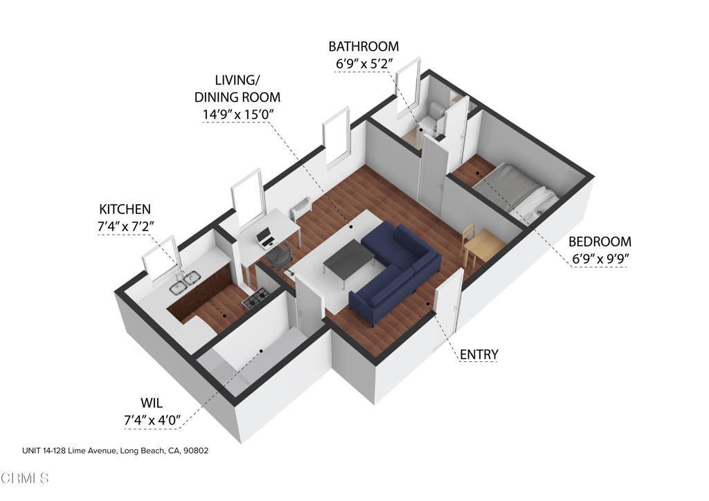 **Charming Beachside Condo with Restored Vintage Character - 128 Lime Ave #14**Just a short 0.3-mile stroll to the beach, this beautifully restored condo offers a rare opportunity to own a piece of Long Beach history. Perfect as a primary residence or a smart alternative to renting, Unit #14 blends timeless charm with thoughtful updates.This cozy 410 sq ft unit features a small private bedroom and a spacious walk-in closet. Much of the original mahogany trim has been carefully restored and treated with durable marine varnish, preserving its rich, warm character. The kitchen boasts granite countertops paired with the original cabinetry, offering vintage appeal with modern durability.The living room is highlighted by a large stucco fireplace with a gas heater, creating a cozy, inviting atmosphere. Period-correct light fixtures add a touch of historic elegance and are thoughtfully matched throughout both the unit and the building.The interior common areas have been repainted and restored, including the striking black balustrades and original light fixtures. On the second floor, you'll find two small lobbies and a curated collection of authentic Victorian furniture--including buffets, tables, and chairs--set atop a stunning original Kashan Persian carpet, adding to the building's historic ambiance.A shared laundry room is located on the third floor for added convenience. The HOA also provides 9 parking spaces located behind the building. The exterior doors of the building have been recently upgraded with key cards for easy access.Whether you're looking to invest or finally stop renting, this charming beachside gem offers classic character and unbeatable location at an excellent value. Please make sure to look at the 2D & 3D floor plans of the unit.