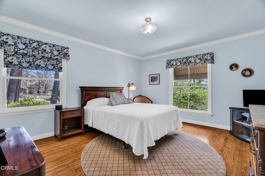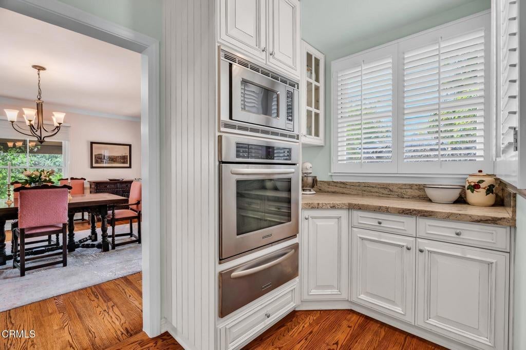 Great price adjustment. Nestled in the foothills of Altadena near scenic hiking and nature trails, this updated traditional home blends timeless charm with a modern open layout. Originally designed by Robert E. Williams--an early partner in the notable firm Train & Williams--and first built by W. E. G. Saunders, the home offers both architectural significance and everyday comfort. At its heart is a dramatic great room with vaulted ceilings, a fireplace, French doors to the backyard, and large windows that fill the space with natural light. The chef's kitchen features a center island, breakfast bar, stainless steel appliances, and granite counters. Additional highlights include a formal living room with wall-to-wall bookcases and fireplace, an oversized dining room, and a spacious primary suite with walk-in closet, spa tub, and travertine finishes. Two more generously sized bedrooms and 1.5 additional baths offer flexibility for guests or work-from-home. Hardwood floors, crown molding, recessed lighting, and thoughtful updates run throughout. A finished 550 sq ft two-car garage includes an EV charger. Surrounded by mature trees with views of the mountains, this home is a peaceful retreat in a coveted foothill location.