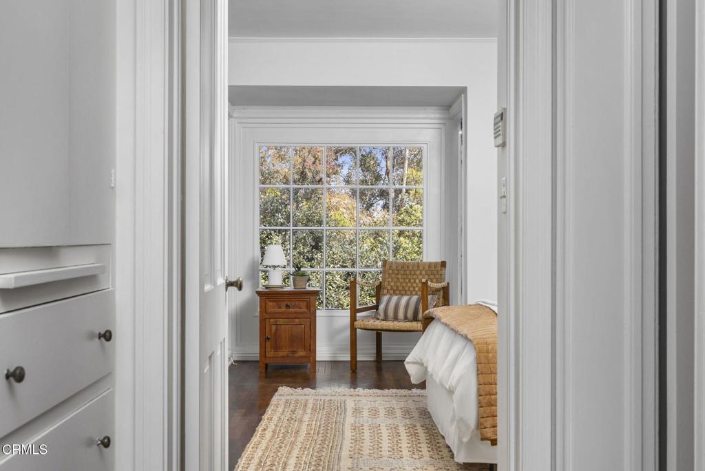 Tucked away at the end of a verdant, tree-lined street, this 1938 Traditional-style home retains many of its original architectural details, including crown moldings, gleaming hardwood floors, and built-in bookcases.The elegant living room features floor-to-ceiling windows that open to a cozy sunroom and offer views of a charming brick patio beyond. A lovely dining alcove sits just off the galley-style kitchen, which boasts rich mahogany countertops and a vintage stove, blending character with functionality.Two generously sized bedrooms flank an updated hall bathroom adorned with custom tile work. Light fills the home through numerous windows, including a stunning bay window with floor-to-ceiling panes that invites the outdoors in.Set on an expansive 20,860 sq ft lot, the property offers a rare opportunity for potential expansion or landscape design, with several areas yet to be developed. Surrounded by larger estate homes, this gem is ideally located near the Rose Bowl, Brookside Golf Course, the Pasadena Aquatic Center, and just minutes from the shops and restaurants of Old Pasadena.