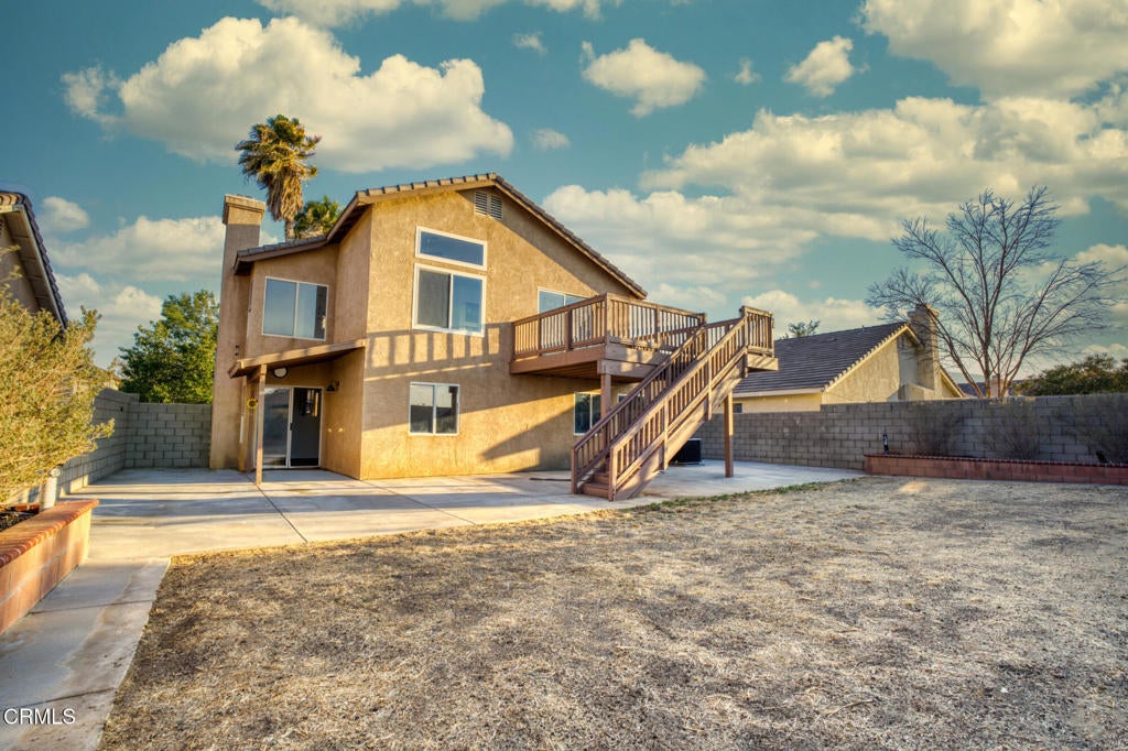 Welcome to your next dream home! This beautifully updated 4-bed, 3-bath residence spans 1,690 SF and is nestled in one of Palmdale's most sought-after neighborhoods. Step inside to an inviting entertainment space featuring a spacious living room with a cozy wood-burning fireplace and expansive windows that flood the room with natural light. The dedicated dining area flows seamlessly into a generously sized kitchen boasting abundant storage, frosted glass cabinetry, and stainless steel appliances. Through the sliding doors, you'll find an oversized rear deck - perfect for dining al fresco or taking in the twinkling lights of the valley below. Also on the main level is the primary suite, complete with a large walk-in closet and an updated ensuite bath with dual sinks. Downstairs, a comfortable family room serves as the heart of the space, offering direct access to the backyard. Three additional bedrooms provide flexibility for guests or a home office, while a full hall bath and laundry area add convenience. The fully fenced backyard includes a large concrete patio and built-in planter boxes, an ideal canvas for creating your dream outdoor entertaining space and home garden. Additional updates include modern lighting, a new water heater, new furnace, and refreshed flooring throughout. With its prime location, thoughtful upgrades, & inviting layout, this is one you won't want to miss! Probate sale. Administrator of the Estate has limited authority. Needs court confirmation.