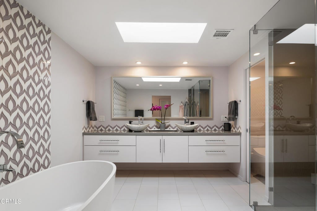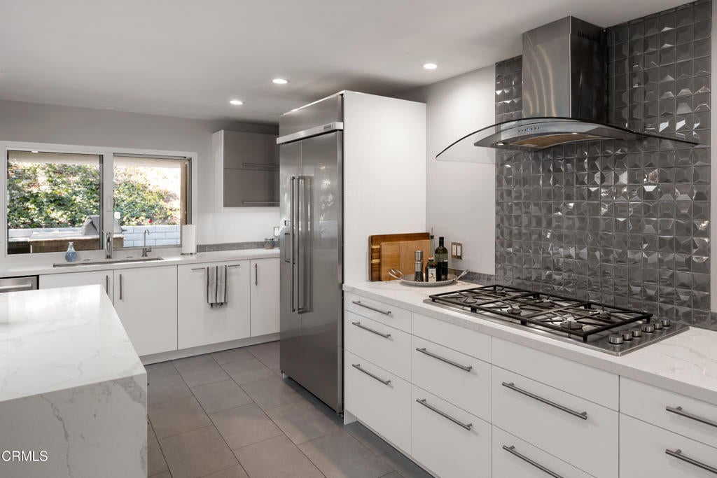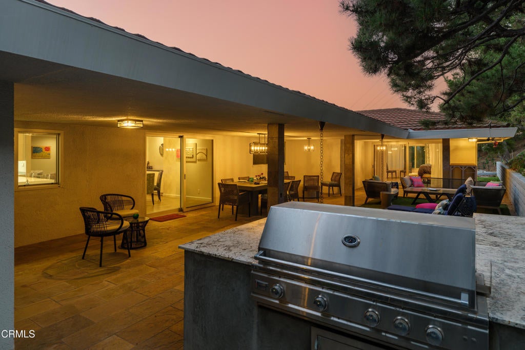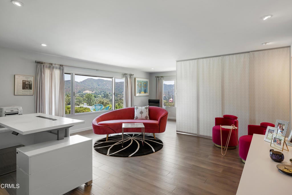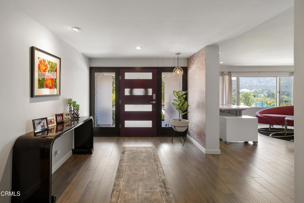 Welcome to this stunning, custom built, single level 1969 modern sited on a raised knoll in one of Glendale's most coveted neighborhoods just above the Oakmont Country Club and Golf Course. This home has been impeccably remodeled throughout and offers an open floor plan with an idyllic layout for both the relaxed California lifestyle as well as elegant entertaining. You enter via a stately foyer that connects the expansive living room, wrapped in windows, with thespacious entertainment room featuring a gorgeous fireplace and hearth done in tall porcelain tileframed by built-ins. All this leads into the open kitchen and dining area that beckons you outsidethrough tall glass doors to the covered patio space with an outdoor kitchen and tranquil rear yard. It is truly picture-perfect. Other highlights include a fully renovated kitchen with a large center island, quartz countertops, high-end appliances, a breakfast area, gleaming cabinetry and incredible fixtures. No detail has been overlooked and it shows! The three sizable bedrooms are beautifully appointed, including the light-filled primary suite with a walk-in closet as well as a fabulously updated bath. This home transports you and instills a feeling of escaping to your own luxurious private spa or retreat. The property offers a wide lot with exquisite curb appeal that showcases drought tolerant plantings, a verdant backdrop and peaceful treetop vistas. Don't miss this opportunity to buy a turn-key residence, in a sought-after area, with all the best amenities. This is a true showstopper and not to be missed!