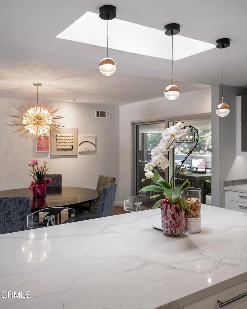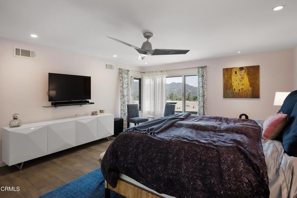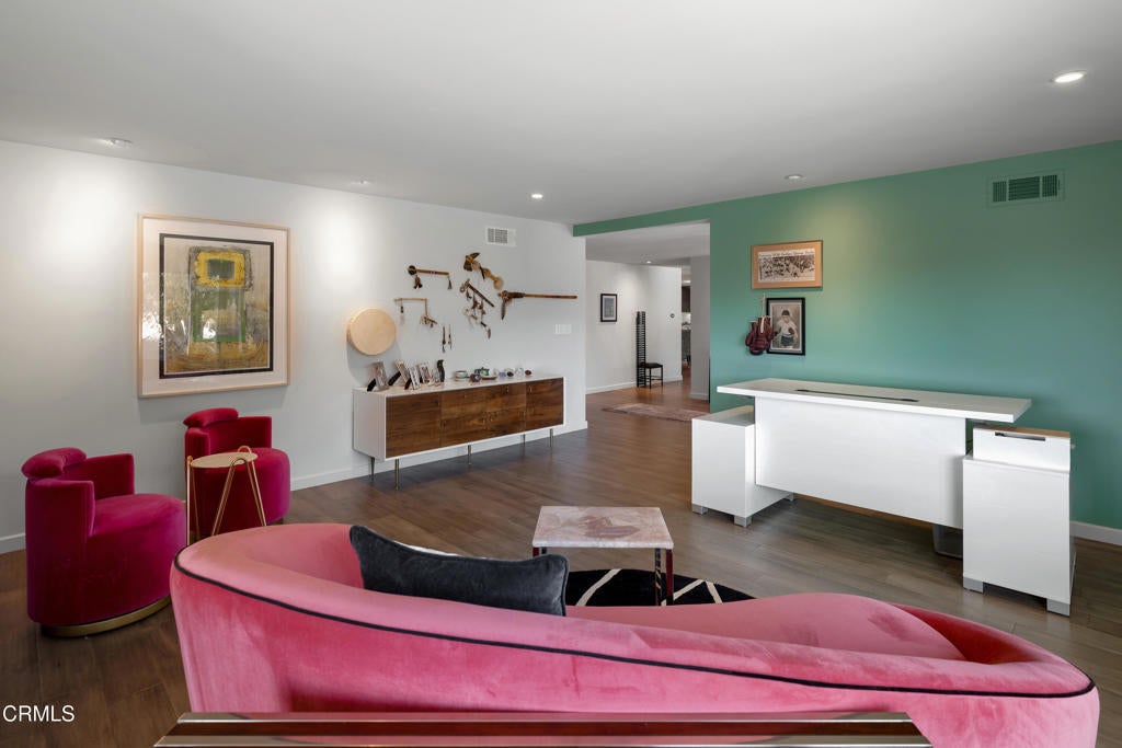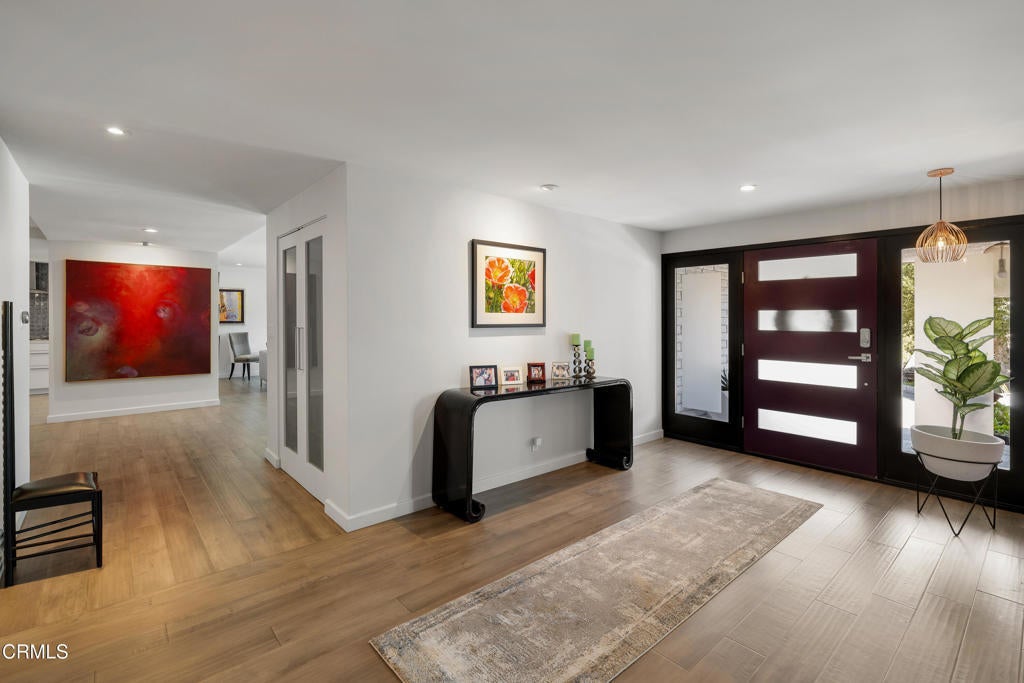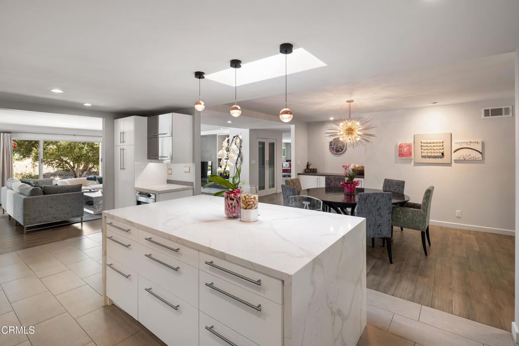 Welcome to this stunning, custom built, single level 1969 modern sited on a raised knoll in one of Glendale's most coveted neighborhoods just above the Oakmont Country Club and Golf Course. This home has been impeccably remodeled throughout and offers an open floor plan with an idyllic layout for both the relaxed California lifestyle as well as elegant entertaining. You enter via a stately foyer that connects the expansive living room, wrapped in windows, with thespacious entertainment room featuring a gorgeous fireplace and hearth done in tall porcelain tileframed by built-ins. All this leads into the open kitchen and dining area that beckons you outsidethrough tall glass doors to the covered patio space with an outdoor kitchen and tranquil rear yard. It is truly picture-perfect. Other highlights include a fully renovated kitchen with a large center island, quartz countertops, high-end appliances, a breakfast area, gleaming cabinetry and incredible fixtures. No detail has been overlooked and it shows! The three sizable bedrooms are beautifully appointed, including the light-filled primary suite with a walk-in closet as well as a fabulously updated bath. This home transports you and instills a feeling of escaping to your own luxurious private spa or retreat. The property offers a wide lot with exquisite curb appeal that showcases drought tolerant plantings, a verdant backdrop and peaceful treetop vistas. Don't miss this opportunity to buy a turn-key residence, in a sought-after area, with all the best amenities. This is a true showstopper and not to be missed!