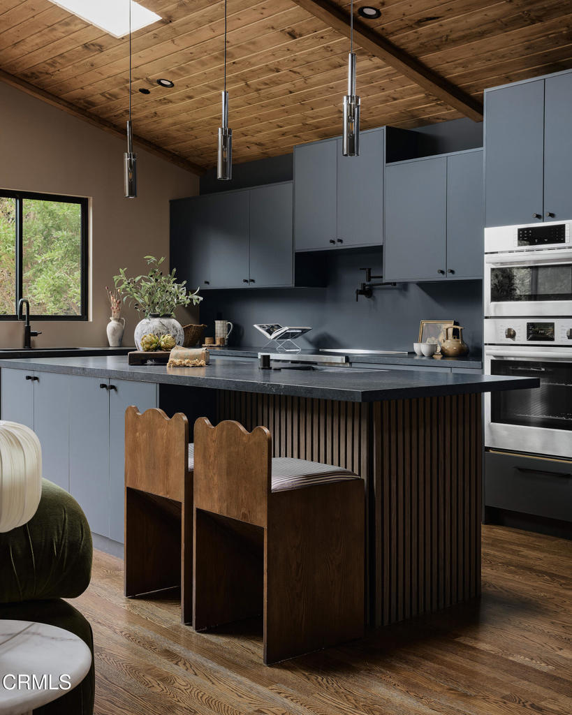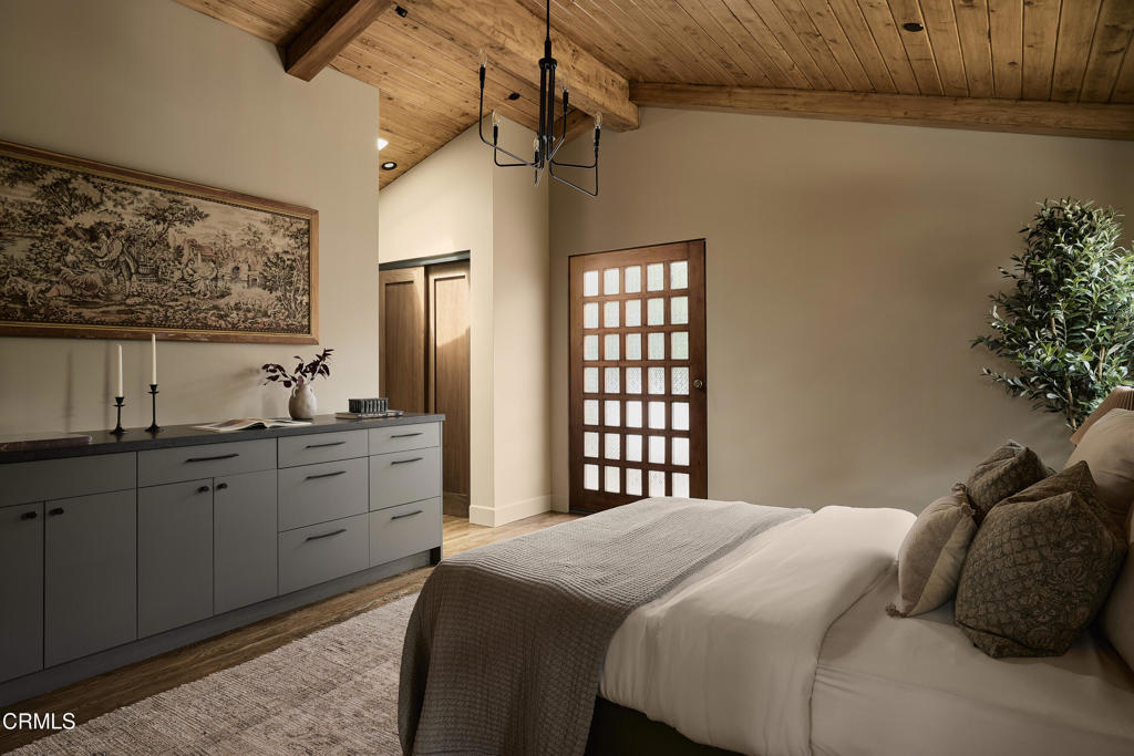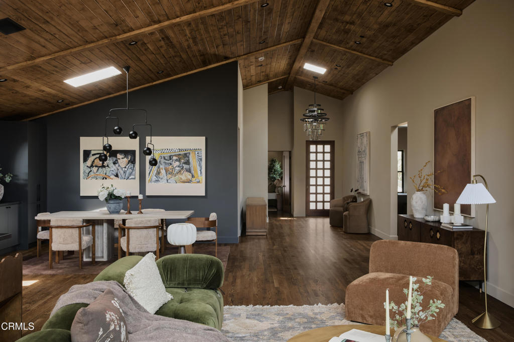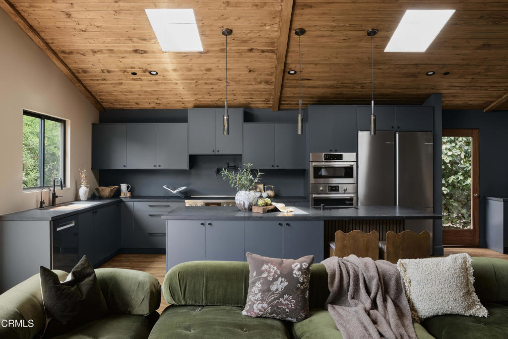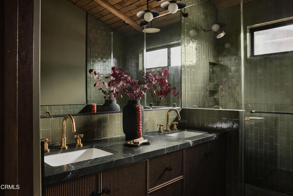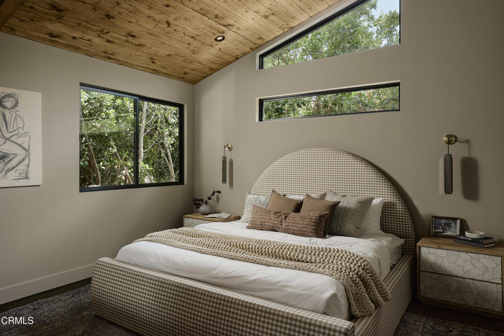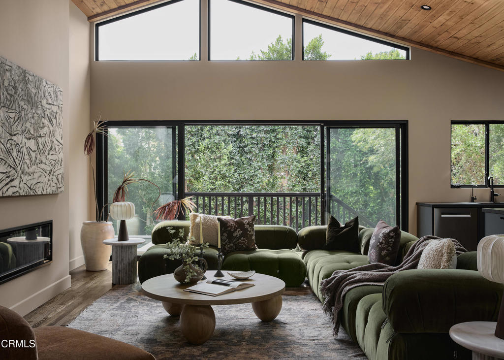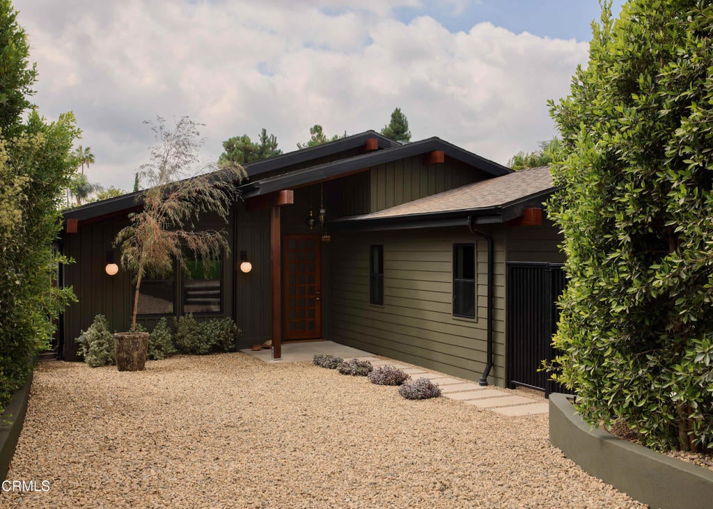 In the heart of Valley Village sits this designer home, crafted and reimagined by Plain Object, formerly known as Enko Design Group. Every inch of the property reflects thoughtful design and elevated living, blending natural textures with a modern California sensibility.The open-concept living space is framed by soaring wood-clad ceilings and walls of glass that bring in lush greenery. The custom kitchen pairs clean-lined cabinetry with stone counters and integrated appliances, creating a seamless flow into the dining and lounge areas. Anchoring the space is an electric fireplace, adding warmth and balance to the expansive great room.The main residence features three bedrooms and three-and-a-half baths, each layered with rich materiality--hand-set tile, brass fixtures, and a striking mix of wood and stone. The primary suite feels like a retreat, with a spa-level bathroom finished in deep green tile, dual vanities, and a rainfall shower.An attached junior ADU adds an additional bedroom and full bath, coming in just under 400 square feet. This flexible space offers countless possibilities--use it as a second primary suite, a private studio, guest quarters, or an income-generating rental.The home is outfitted with updated plumbing, electrical, and foundation, plus a new roof and water heater. Two-inch white oak floors run throughout, lending both character and durability. Outdoors, a gravel-lined entry gives way to curated landscaping and a private backyard deck. The property includes two parking spaces, an above-ground pool/spa, and a separate laundry room.Located moments from the Sportsman's Lodge, Val Surf, Oy Bar, and Coffee Fix, 12406 La Maida is surrounded by a true sense of community--neighbors that look out for one another, in one of the rare neighborhoods in LA where that still exists.This is more than a home; it's a statement piece of design waiting for its next chapter.