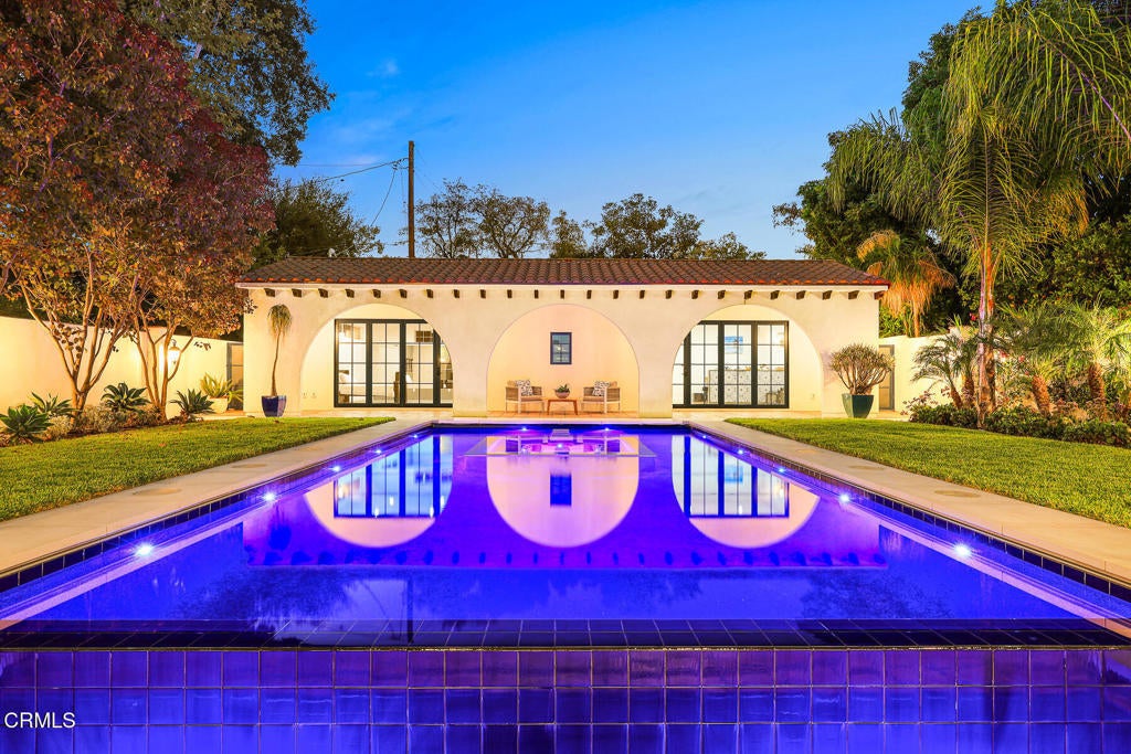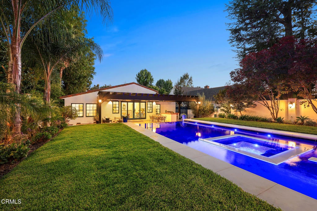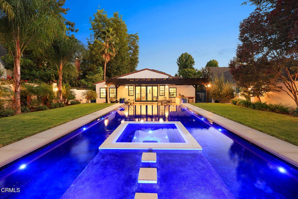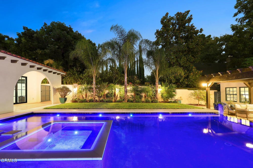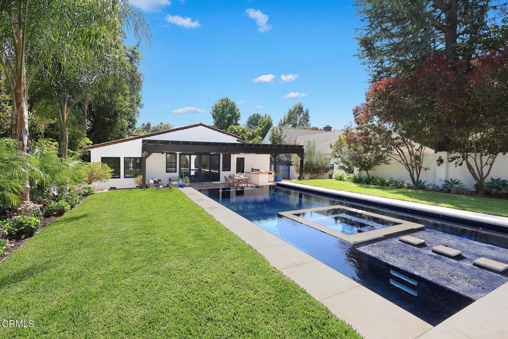 Stunning Renovated Spanish-Style Retreat with Luxe Features & Detached ADU. Welcome to this beautifully remodeled Spanish-style residence that perfectly blends timeless architectural charm with modern luxury. Situated in a serene and sought-after neighborhood, this captivating 4-bedroom, 2-bathroom home boasts refined details and exceptional craftsmanship throughout. Step through the formal arched entryway into a grand interior highlighted by soaring ceilings, rich hardwood floors, and elegant arched passageways that guide you through the thoughtfully designed living spaces. The inviting living room features a cozy fireplace, custom built-in bookshelf and dual arched windows, perfect for intimate gatherings or quiet evenings at home. The gourmet kitchen is a chef's dream, showcasing stainless steel built-in appliances, a generous center island with a second sink, two dishwashers, an abundance of counter space and open to the family room ideal for effortless entertaining and everyday living. Retreat to the spacious bedrooms for rest and relaxation, while the spa-inspired bathrooms offer a touch of luxury with upscale finishes. Step outside to your private oasis--a pergola-covered Spanish tile patio leads to a breathtaking pool and spa adorned with elegant water features. Whether lounging by the water or dining al fresco, the outdoor space is designed for year-round enjoyment. Adding even more value and versatility, the detached ADU spanning over 1,000 square feet, offers a covered patio and is ideal as a guest suite, home office or gym. This exceptional home effortlessly combines classic Spanish elegance with modern convenience--truly a rare gem not to be missed.